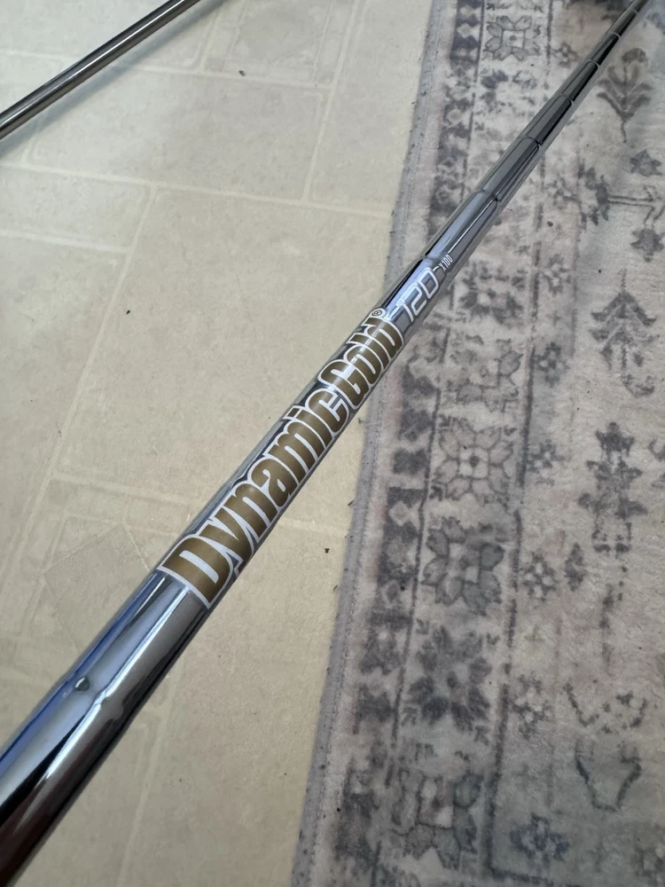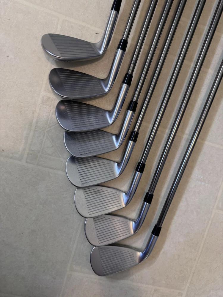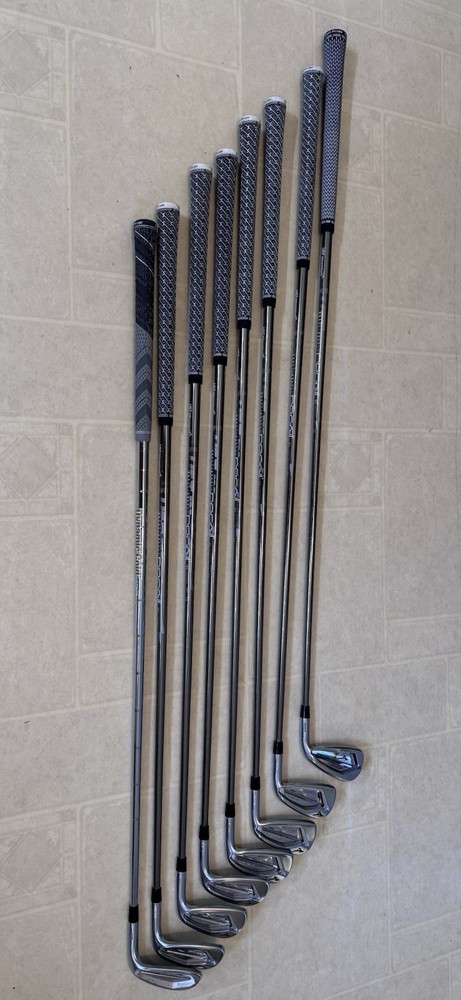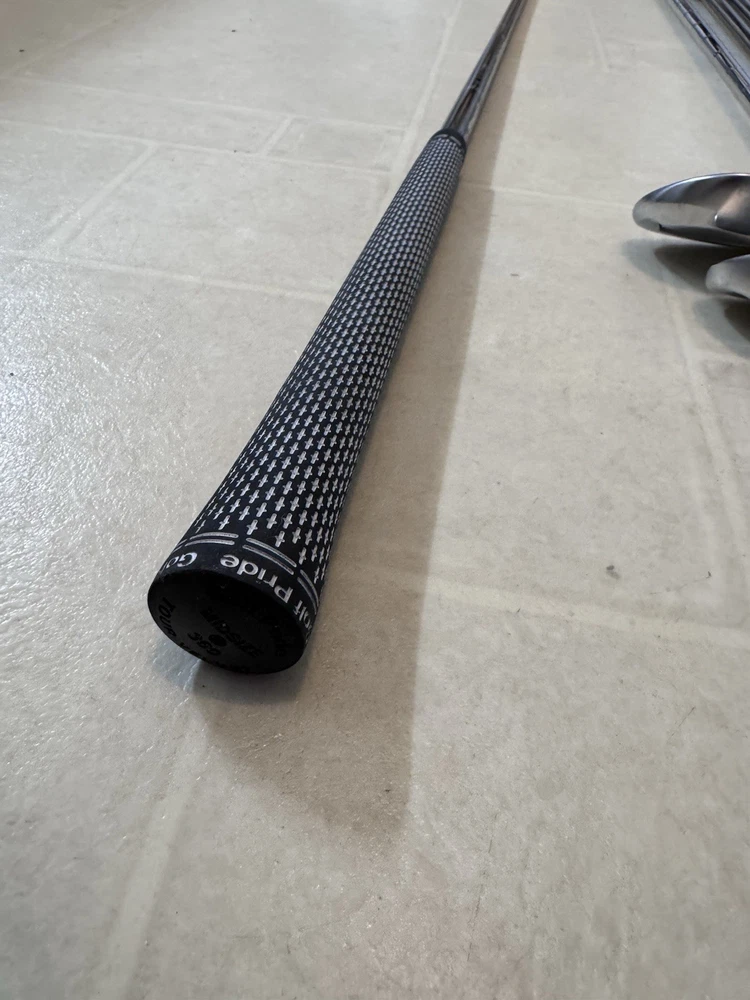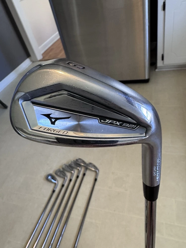 Mizuno JPX Hot Metal Pro Iron set 4-GW with Mamiya Recoil F4 Stiff Shafts. The 4 iron and gap wedge are JPX 921 as they were added separately. Gap wedge is Dynamic Gold 120 X-stiff with golf pride standard grip. All other clubs have golf pride Z cord grips.
