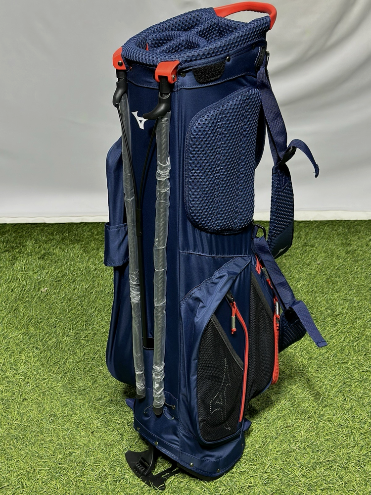 We are a reputable golf company that has been in business in St. Louis, Missouri since 1975. We have been doing this for 40 years because we do things right the first time. WE HAVE THE FASTEST SHIPPING ON EBAY! Don't believe us? Check out our Feedback. If you have questions, please feel free to ask. As always, thank you for looking. Mizuno K1-L0 Lightweight Stand Bag COLOR: Navy / Red STYLE: Stand Bag DIVIDERS: 5-Way Divider CONDITION: NEW w/ Tags (10/10) RAIN HOOD: Included! Mizuno's almost weightless stand bag is a shock to pick up - empty or full. The K1-LO features a lightweight construction and carbon fiber stand, stripping almost half its expected load. High-density foam shoulder straps and intelligently placed pockets make it a joy for golfers who prefer to walk the course Features: 4-Way top cuff with side grab handles 3 Full-length dividers Lightweight composite legs Small accessories pocket 2 Medium sized accessory zipper pockets Towel loop Vertical zipper ball pocket Matching rain hood