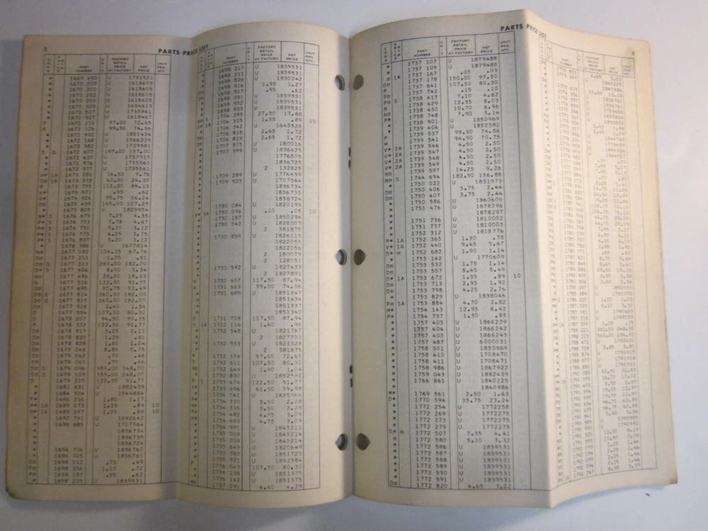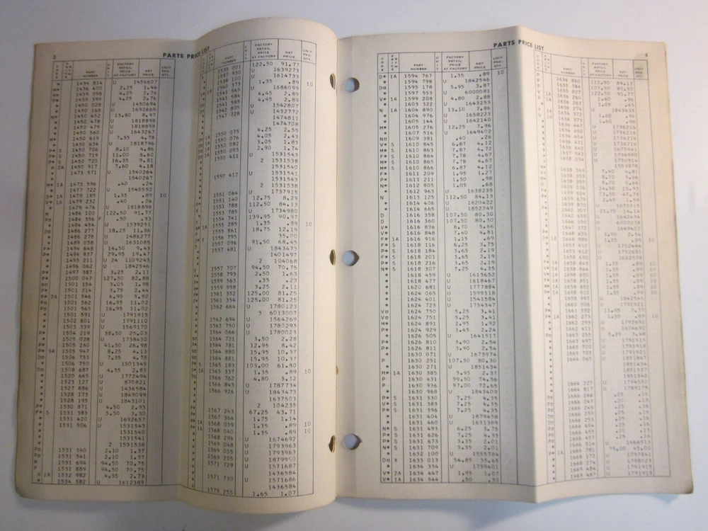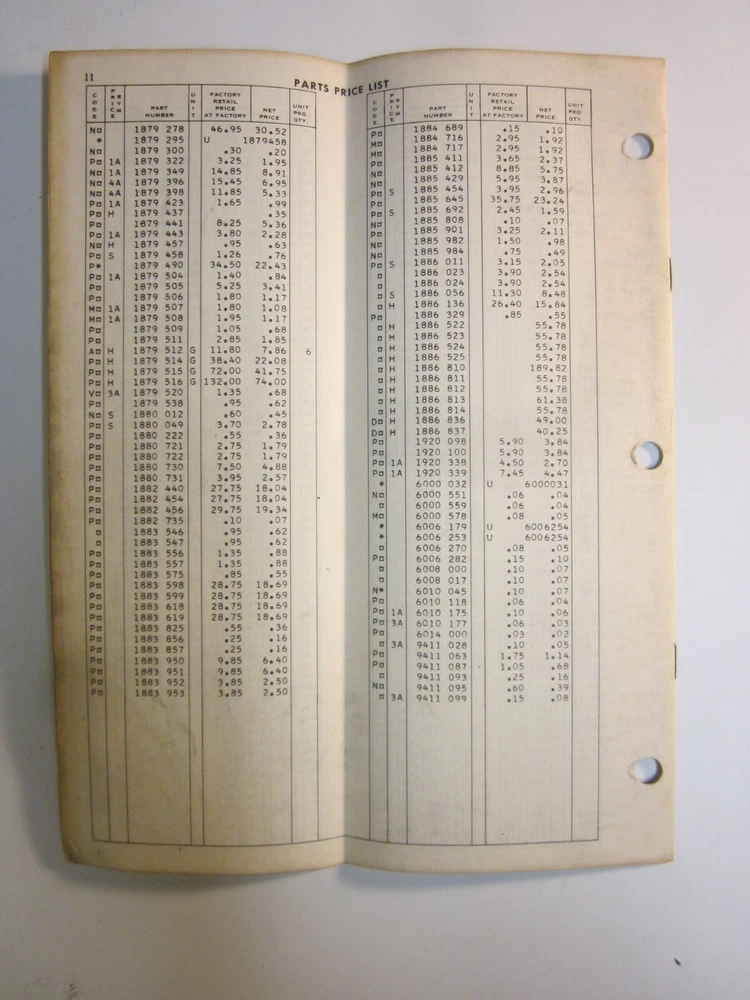 Parts Price List Supplement. Factory Retail Prices at Factory and Net Prices. Effective April 15, 1958. Supplement to Publication D-16602. MoPar parts, a division of Chrysler Motors Corp., Detroit. This booklet contains only part numbers - no diagrams, no text. For example, part No. 1618 307 is priced at $7.25 retail and $4.35 dealer wholesale. There is no explanation of what that part is. Thank you.