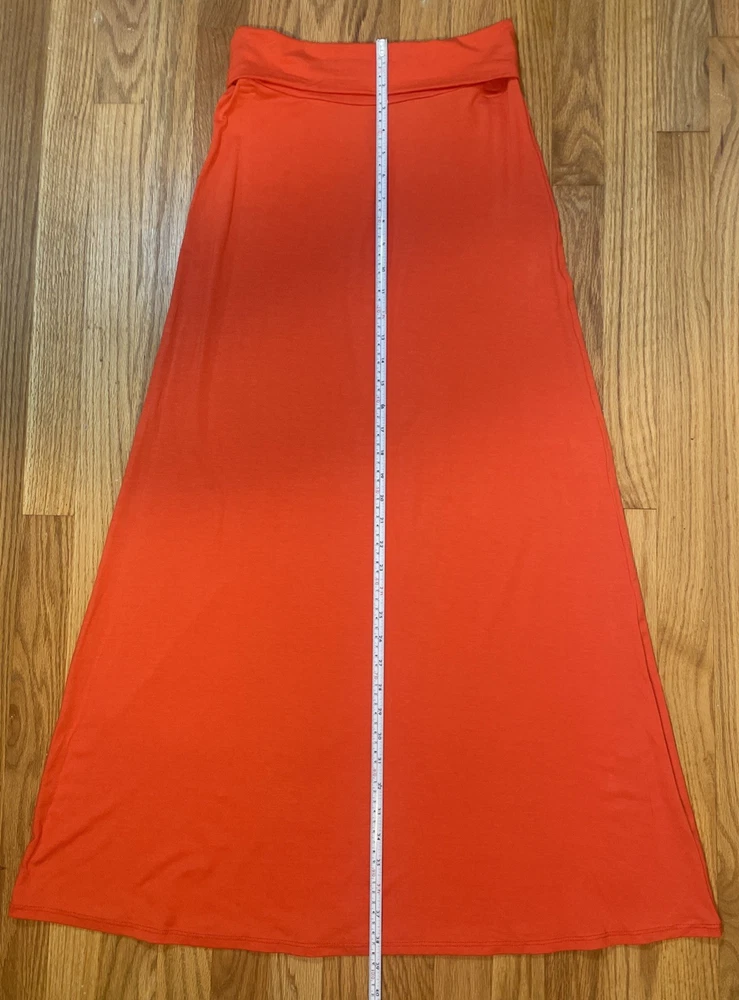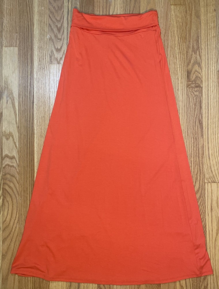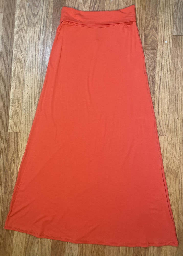 Add a pop of color to your wardrobe with this beautiful orange maxi skirt from the Moa Collection. Lightweight and comfortable, this skirt is perfect for almost any occasion, whether you're traveling, going casual, or even for business. This skirt is long and can be worn high rise or low rise depending on your preference. This has never been worn.