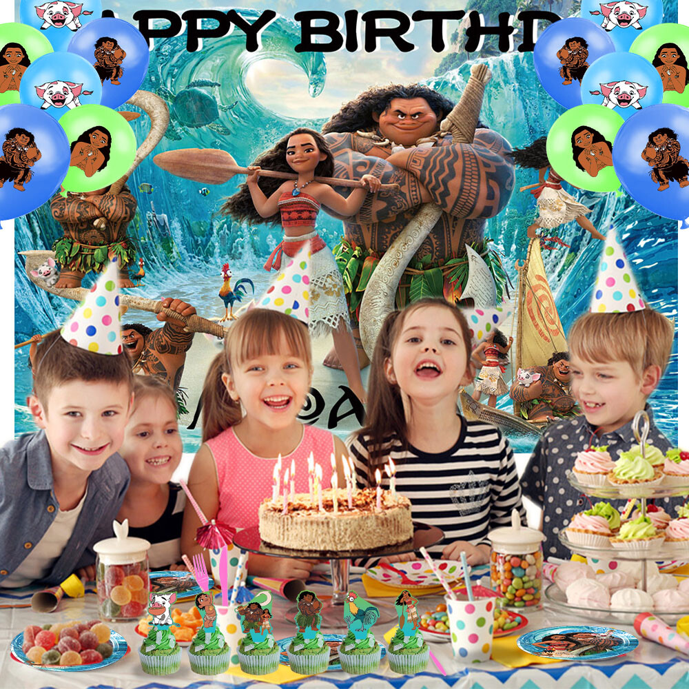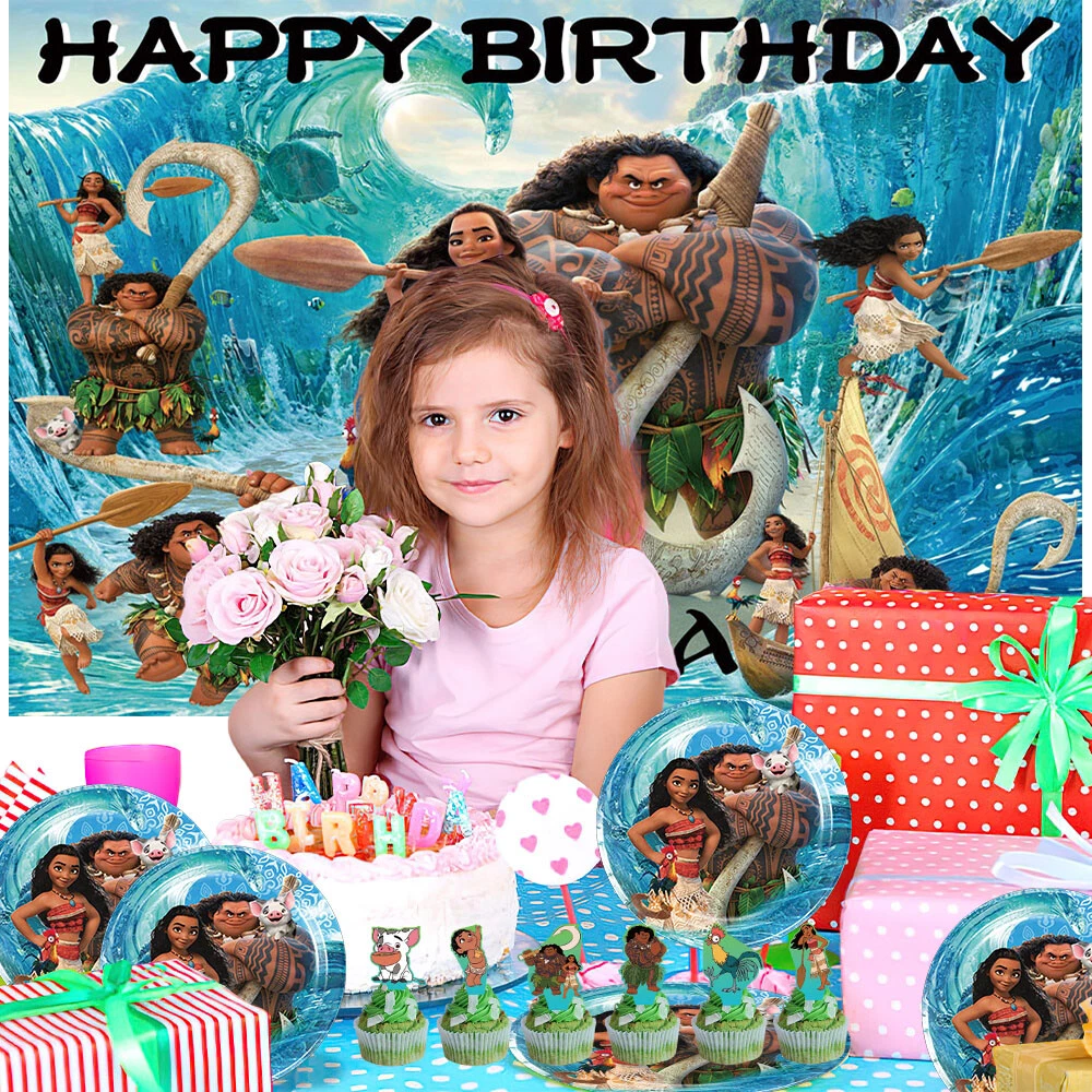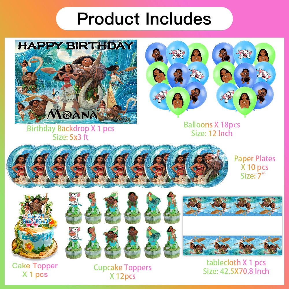About this item 【Themed Sets of Matching Units】: ☰ Take this good favor for themed party to impress your kids and their friends. ☰ Enrich your kids’childhood dream well,giving them a fantastic surprise. 【Party Decor Is So Easy】: ☰ It contains all of your Moana theme birthday party tableware needs and is completely disposable. ☰ You can save more time to enjoy this party with your guests. 【Real Savings For You】 ☰ The shiny large backdrop decor will attract you eyes and make everyone laugh.The banner cloth is printed in high definition, making it the perfect party background wall. It is made of thick cloth, not paper. ☰ You will save over 70% compared to buying 2 Moana party supplies separately. 【Super Value Moana Package】: ✪ 1PCS X Large Happy Birthday Banner 5x 3ft(150x100cm) ✪ 10PCS X 7 Inch Thick Paper Plates. ✪ 18PCS Balloons. ✪ 1PCS X Cake Topper. ✪ 12PCS X Cupcake Toppers. ✪ 1PCS X Tablecloth. 【After Sale Service】: ☰ We try our best to bring the best use experience to our customers. ☰ If you are not satisfied with the purchase of this set or have any questions about the product,please contact us at any time.We will definitely solve the problem for you in the first time. ☰ We can also custom backdrop other size or pictures you want. Any questions please contact us.