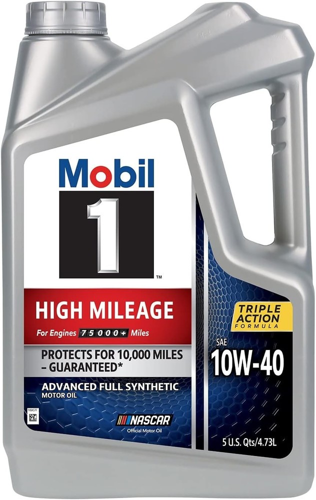 Mobil 1 High Mileage full-synthetic motor oil 10W-40 is designed for engines with over 75,000 miles to go up to 10,000 miles between oil changes.* Utilizes Mobil 1’s signature Triple Action Formula to deliver outstanding engine performance, protection, and cleanliness Meets ILSAC GF-6 standards to help provide low-speed pre-ignition (LSPI) and timing chain wear protection while keeping your engine clean and helping to improve your fuel economy Provides excellent internal engine heat protection (up to 500 degrees F) and low temperature protection (to -30 degrees F) Mobil 1 is specially formulated to help remove sludge and lower engine temperatures