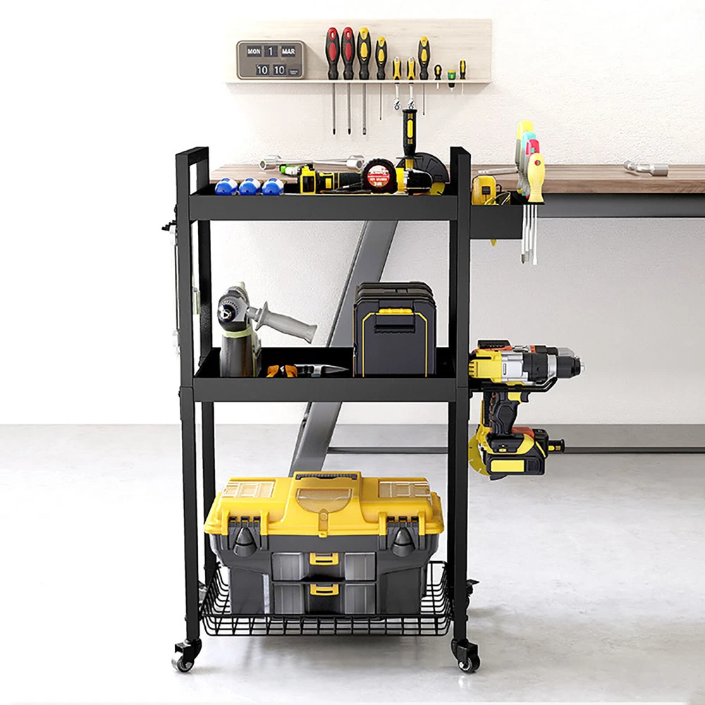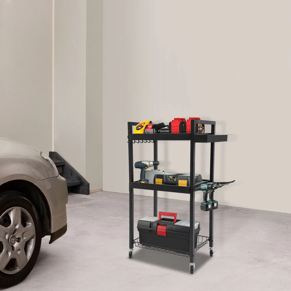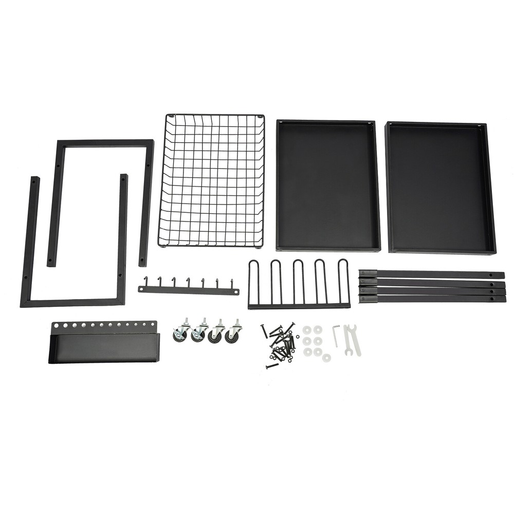 Power Tool Organizer Tool Organizer with Wheels Power Tool Storage Cart Description This power tool storage cart with three levels of storage is ideal for keeping your tools organized and in order. It is made of sturdy and durable materials with a clever and reasonable design that can effectively categorize and store various power tools, which not only saves space but also facilitates quick access. Whether it's for home DIY or professional repairs, it will be a great choice to improve your work efficiency and keep your space tidy. Key Features Sturdy and Durable: The premium iron with the baking paint process gives the product high hardness and good rust resistance and can protect the product from corrosion, fade, and deformation, ensuring a long service life. Strong Structure: The thick panels, sturdy tubes, and strong screw connections ensure a high load-bearing capacity(220.46-440.92 lbs) that allows the product to hold your tools with ease. Versatile Storage: This product is equipped with a screwdriver storage area, a hook area and a rig storage area, which can hold a total of 16 screwdrivers, 7 wrenches and 4 rigs, providing you with a variety of storage options. Large Capacity: The product comes with three compartments that allow you to organize your tools, cleaners, tool boxes, and other miscellaneous items separately. In addition, hooks on the edges of the product are designed to hang your power tools for easy access, greatly improving your work efficiency. Easy to Move and Stop: The 4 casters allow you to easily move it and the loaded tools from one place to another with ease. In addition, two of these casters are equipped with brakes that allow you to stop it firmly at places you wish. Clean with Ease: With a smooth surface and a simple structure, you can easily wipe it clean with a damp cloth. Good Appearance: Smooth lines, a simple shape, and an elegant black color allow this product to easily blend into all types of decor, making it a great addition to your space. Ideal Gift: With a large capacity, strong structure, and convenient movement design, it can be an ideal gift for your friends, families, and colleagues. Buy with Confidence: We stand behind all our guests and look forward to assisting you with your purchase. It is our pleasure to answer your confusion and questions. The end of the story between us is not "we sell and you buy". Details Opening Design: The open construction of this product allows for good ventilation to avoid dust, mold , and moisture buildup. Raised Edges: They can protect the tools stored on them from falling out when you move the product. Application The product is suitable for garages, workshops, warehouses, homes, stores, tool stores, sheds, etc. for storing drills, screwdrivers, screw boxes, saws, power supplies, tape measures, wrenches, vises, hammers, drills, charging cradles, toolboxes, goggles, noise-reducing earmuffs, and more. Specifications Color: Black Material: Iron Process: Baking Paint Mount Type: Free Standing Assembly Required: Yes Load Bearing Capacity: 100-200kg/220.46-440.92lbs Product Size: 46*31*86.5cm/18.1*12.2*34in Package Size: 42.7*32.5*11cm/16.81*12.8*4.33in Gross Weight: 6.3kg/13.89lbs Net Weight: 5.89kg/12.99lbs Package Included 1* Power Tool Storage Cart Other Needed Accessories Notes Please check the size carefully before ordering. This product does not include the various tools shown in the pictures. Please allow the slight color difference caused by the shooting light and 1-3cm error due to manual measurement, and make sure you do not mind before you order. Payment Delivery details Terms of sales About us Contact us Payment We accept ebay payment 。 Fees such as import duties, taxes are not included in the item price or shipping costs. These charges are the buyer's responsibility. Delivery details Shipping: 2-9 working days to: USA Terms of sales We maintain high standards of excellence and strive for hundred percent customer satisfaction. Feedback is very important to us. We hope that you contact us immediately before you give neutral or negative feedback, so that we can address your concerns. It is impossible to address issues if we do not know about them! About us Your satis faction is our ultimate goal. We work hard to earn your trust and future business. Our certified technicians have tested each item before shipping. The unit comes with 1 year limited warranty on all manufacturing defects. a) If you receive a defective item, you may return it or ask for a discount. Please contact us within 14 days after you receive the package. b) What you returned must be intact and in its original packaging as re? u. Customer is responsible for shipping costs of the returned item. c) We will cover the cost of shipping back t with the shipping rate indicated in the registration page. We will send you a new unit or refund the full payment you paid. Thank you. Contact us Business Hour Business Hour: Monday To Friday: 8:30 AM to 5:00 PM (Beijing China time) Due to time zones, our reply to your questions may not be immediately. But within above working time, we will reply your email within 24 hours. If it's non-workdays, please kindly be patient and wait till Monday. Please contact us with ebay message. Please feel free to contact us if you have any questions. Monday To Friday: 8:30 AM to 5:00 PM (Beijing China time) Due to time zones, our reply to your questions may not be immediately. But within above working time, we will reply your email within 24 hours. If it's non-workdays, please kindly be patient and wait till Monday. Please contact us with ebay message. Please feel free to contact us if you have any questions.