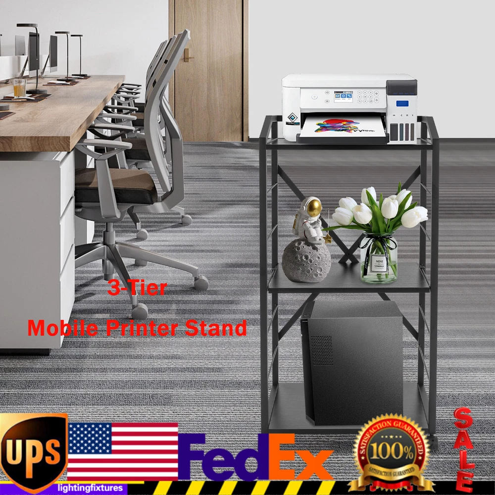 Specifications Color: Black Style: Modern Shape: Rectangular Assembly Required: Yes Material: Carbon Steel, MDF Board Mount Type: High-temperature Bake Paint Product Overall Size: 50*35*96cm/19.7*13.8*37.8inch Product Width(without Wheels): 31cm/12.2inch Layer Board Load Bearing: About 5kg/11lbs Packaging Size: 93*10*34cm/36.61*3.94*13.39inch Gross Weight: 8.3kg/18.3lbs Package Included 1*Mobile Printer Stand 1*English Diagram Other Needed Accessories Mobile Printer Stand Modern Storage Holder 3-Tier Printer Shelf Rack with Wheels Description Expand your office storage space with this 3-tier mobile printer stand and keep your office well-organized. Its simple lines, modern style, and profound color add elegance and magnificence to your room. Made of MDF and carbon steel, it has a solid structure, a wide tabletop, 4 universal casters, and a strong load-bearing capacity, making it a smart choice for you! Specifications Color: Black Style: Modern Shape: Rectangular Assembly Required: Yes Material: Carbon Steel, MDF Board Mount Type: High-temperature Bake Paint Product Overall Size: 50*35*96cm/19.7*13.8*37.8inch Product Width(without Wheels): 31cm/12.2inch Layer Board Load Bearing: About 5kg/11lbs Packaging Size: 93*10*34cm/36.61*3.94*13.39inch Gross Weight: 8.3kg/18.3lbs Package Included 1*Mobile Printer Stand 1*English Diagram Other Needed Accessories Key Features Build to Last: It is made of MDF board and carbon steel, and adopted the high-temperature bake paint process, which makes it resistant to wear and rust, keeping it glossy and practical for long-term use. Space-saving: It takes up a small area but provides you with a large storage space with three tiers, which makes full use of the vertical space in your office or home. Move with Ease: The bottom is fitted with four universal wheels for easy mobility and floor-sweeping. With four brakes, you can easily stop it and keep it stable in daily use. Stylish Appearance: The smooth surface and wooden-like texture board make the shelves elegant and beautiful, creating a cozy atmosphere for various home decor. High Load-bearing Capacity: The sturdy carbon steel frame, and crossed beams constructed the solid structure and make it capable of holding up to 11 lbs per layer, allowing you to place your items with confidence. Easy To Clean: Thanks to its smooth surface, you just need to wipe the dust off with a soft cloth to make it clean like a new one. Simple Installation: With pre-drilled holes, an English diagram, and needed accessories, you can finish the installation with less time and effort. Customer Service: We aim to provide quality products and services. If you have any problems, please feel free to contact us. We will reply and solve the problem for you as soon as possible. Details Adjustable Middle Layer Board: You can easily move the layer board in the middle to change the tier spacing according to the height of the stored items, and its hooks ensure convenient assembly and stable placement. Elevated Bottom: It prevents the bottom from coming into direct contact with wet or dirty floors while allowing for convenient cleaning. Application It can be used as a kitchen organizer, plant shelf, printer stand, or storage shelf, and is suitable for the living room, kitchen, bedroom, balcony, study, office, and other places. Notes Please check the size carefully before ordering. Please allow the slight color difference caused by the shooting light and 1-3cm error due to manual measurement, and make sure you do not mind before you order. Payment Delivery details Terms of sales About us Contact us Payment We accept ebay payment 。 Fees such as import duties, taxes are not included in the item price or shipping costs. These charges are the buyer's responsibility. Delivery details Shipping: 2-9 working days to: USA Terms of sales We maintain high standards of excellence and strive for hundred percent customer satisfaction. Feedback is very important to us. We hope that you contact us immediately before you give neutral or negative feedback, so that we can address your concerns. It is impossible to address issues if we do not know about them! About us Your satis faction is our ultimate goal. We work hard to earn your trust and future business. Our certified technicians have tested each item before shipping. The unit comes with 1 year limited warranty on all manufacturing defects. a) If you receive a defective item, you may return it or ask for a discount. Please contact us within 14 days after you receive the package. b) What you returned must be intact and in its original packaging as re? u. Customer is responsible for shipping costs of the returned item. c) We will cover the cost of shipping back t with the shipping rate indicated in the registration page. We will send you a new unit or refund the full payment you paid. Thank you. Contact us Business Hour Business Hour: Monday To Friday: 8:30 AM to 5:00 PM (Beijing China time) Due to time zones, our reply to your questions may not be immediately. But within above working time, we will reply your email within 24 hours. If it's non-workdays, please kindly be patient and wait till Monday. Please contact us with ebay message. Please feel free to contact us if you have any questions. Monday To Friday: 8:30 AM to 5:00 PM (Beijing China time) Due to time zones, our reply to your questions may not be immediately. But within above working time, we will reply your email within 24 hours. If it's non-workdays, please kindly be patient and wait till Monday. Please contact us with ebay message. Please feel free to contact us if you have any questions. On Feb 24, 2025 at 18:16:09 PST, seller added the following information:
