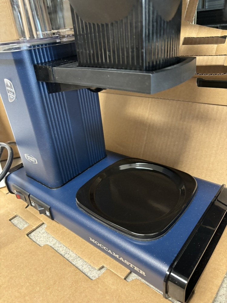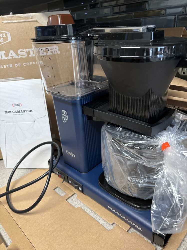 Brand Technivorm Moccamaster Capacity 40 Fluid Ounces Color Midnight Blue Product Dimensions 6.5"D x 12.75"W x 14"H Special Feature Auto Shut-Off Coffee Maker Type Drip Coffee Machine Perfect Coffee Every Time: This pump-free coffee maker heats water to the correct temperature for coffee extraction Brew-Volume Selector switch for brewing half or full carafes Easy to Use: The Moccamaster brews a full 40 oz pot of coffee in 4-6 minutes using one switch Open box item - All parts still in original packaging and in original box