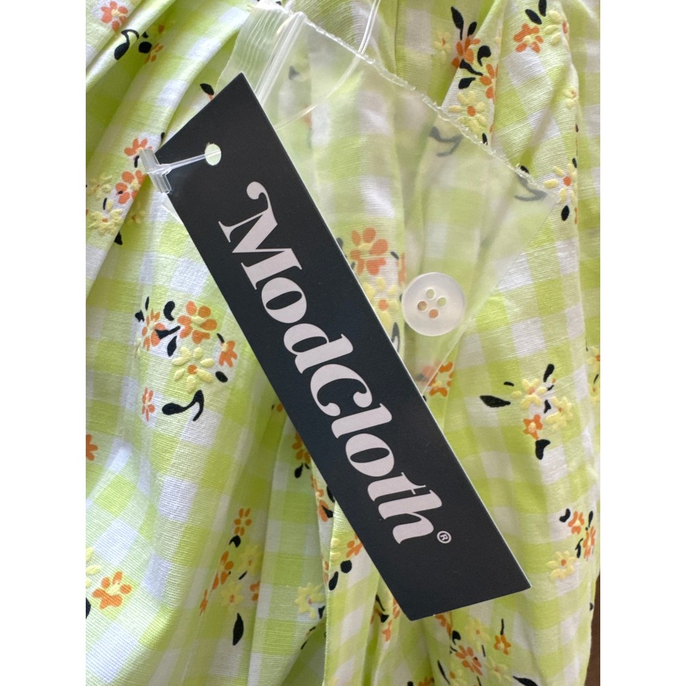 ModCloth Green Gingham A - Line Floral Skirt Imagine the Possibilities Pleated Women's Size 2 New with tags! Finished with a hidden side zipper for a seamless fit, it’s perfect for pairing with a tucked-in blouse and ballet flats or dressing down with a tee and sneakers. Side pockets. Fully lined Knee length Pleated detail Checkered Floral pattern Back zipper with button closure. Shell: 97% Cotton, 3% Spandex. Lining: 100% Cotton. Machine wash. Waist: 13" Length: 25" New with Tag Beach, Vacation, Tropics, Resort, Feminine, Modern, Classy, Classic, Timeless, Officewear, Careerwear, cottage, gingham, stylish, Party, Date Night, Artistic Charm, Elegance, Whimsical, Skirt, Checkered, Floral