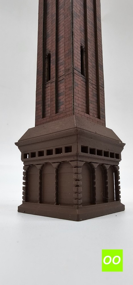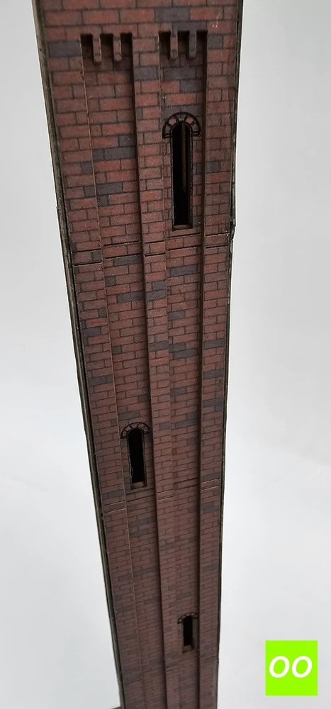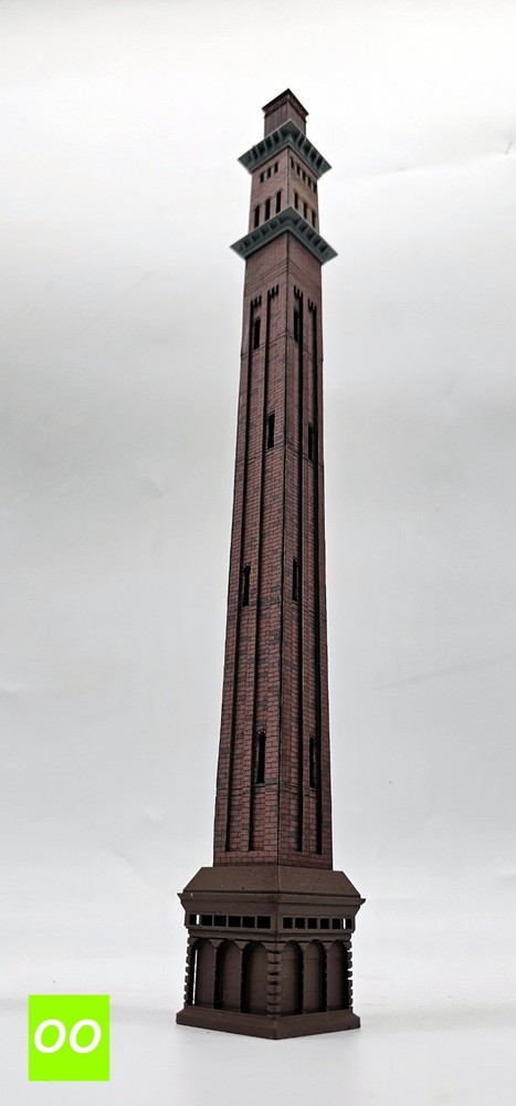 Modelux India Mill Chimney, Darw en - kit FOR THE TRUE SCALE FULL HEIGHT 870MM VERSION< PLEASE SEE OTHER LISTINGS This is produced at approx 50% scale of the massive India Mill Chimney - the actual chimney is approx 100m tall - this model is 420mm making it more appropriate for most layouts - the same model is also available at the same size for N but made with 1:150 scale brick print - this model has the correct brick print for 1:75. The base, intermediary collar and chimney top elements are all ready made out of plastic and are fully coloured as shown. The elevation elements are brick laminate at 1.3mm thick and Modelux Invisiseam, making the elevation edges virtually invisible. This chimney is sold here without the associated mill building - and the warehouse shown in one of the photos is for context only and is not included. The chimney looks great with any warehouse or mill building, especially a Modelux one... Simple to construct as the fine detail elements are all ready made... Height 420 mm Footprint 50mm x 50mm Flat pack. PVA required for assembly