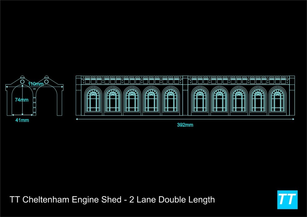 Modelux TT GAUGE 'Cheltenham' 2 Lane Double Length Engine Shed Kit