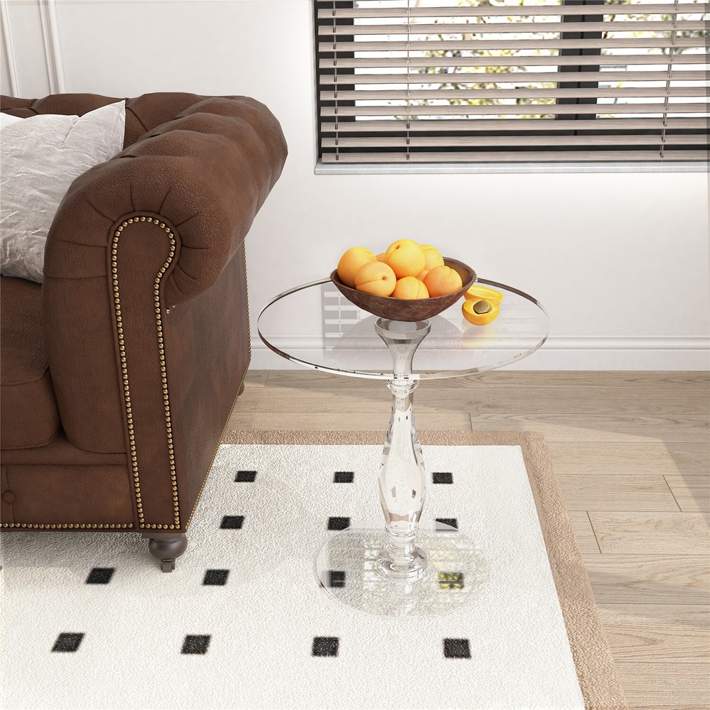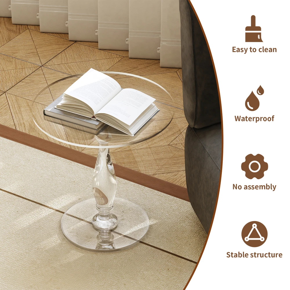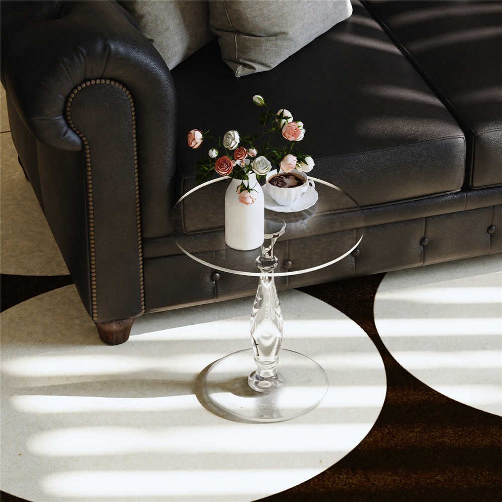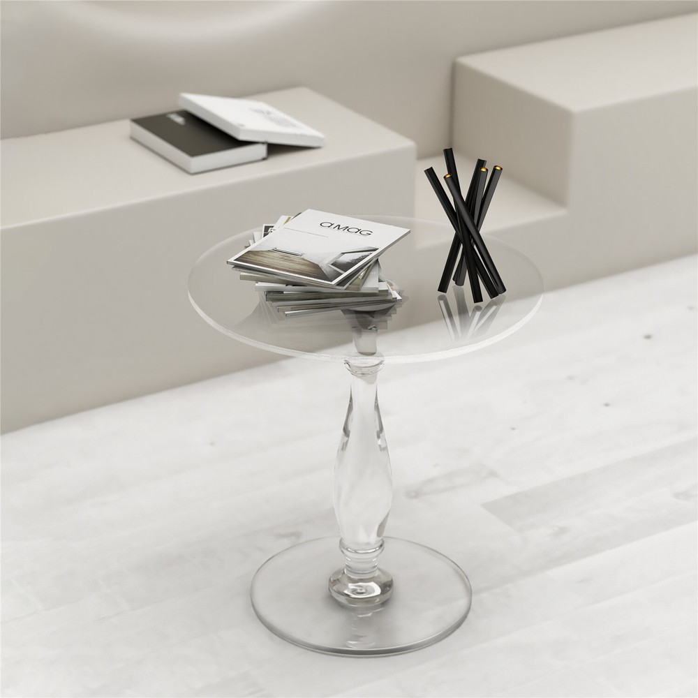 Modern Acrylic Side Table - 18 Inch Round Transparent Coffee Table with Classic Roman Design - Scratch & Fingerprint Resistant Surface - Durable Shatterproof End Table for Contemporary Home Decor - Office Nightstand & Drink Stand Modern Acrylic Side Table Dia 18" Transparent Coffee Table, Scratch Resistant US SELLER, FAST ARRIVAL! Features: 【Crystal Clear Acrylic Construction】 Ultra-transparent 45cm round tabletop with glass-like clarity but unbreakable durability Premium shatterproof acrylic material withstands daily use Eco-friendly & non-toxic - safe for families with kids and pets 【Elegant Roman Column Design】 Features classic Roman pillar base for timeless sophistication Blends modern minimalism with vintage charm Perfect as living room end table, bedside nightstand or office accent piece 【Multi-Functional & Space-Saving】 Versatile 18" diameter fits snugly in small spaces Ideal as coffee table, drink stand or display surface Lightweight yet sturdy - easy to move between rooms 【Low-Maintenance Surface】 Fingerprint-resistant acrylic stays cleaner longer Simply wipe clean with damp cloth - no special cleaners needed UV-resistant material won't yellow over time 【Complete Package Includes】 All hardware for quick tool-free assembly Protective felt pads included to prevent floor scratches Ready to use immediately - perfect gift for housewarmings Specifications: Type: End Table Style: Modern Shape: Round Model: Side Table Room: Living Room, Bedroom, Guest Room, Office, Lounger Room Material: 100% Acrylic Color: Transparent Net Weight: 4.8kg/ 10.58 lbs Weight Capacity: total 20kg/ 44 lbs Product Dimension: L * H total 45x47.5cm/ 17.72x18.70 inch Base Diameter: 30cm/ 11.81 inch Package Included: 1 x Clear Acrylic End Table Payment Terms of Sales Shipping Details Contact us About us Payment 1.We accept payment by credit card, paypal, Payoneer. 2.Upon on payment, please confirm your shipping address. Terms of Sales 1. We ship out all of our products brand new. 2. All products have passed quality inspection before shipment. Shipping Details 1.We are located in NJ, CA ,all the items will be shipped via USPS, UPS Ground, Fedex Ground with tracking number provided. 2. We cannot ship to Alaska, Hawaii & Puerto Rico Addresses. Contact us 1. If you are satisfied with the transaction pls remember to leave us a positive feedback 5-star will be much appreciated. 2. Normally your email would get replied within 24 hours (Business Hours) and your issue will be followed up carefully till we 've reached an agreement. 3. Please contact us first if you have any question or suggestion before opening a case or dispute, leaving any neutral or negative feedback. About us We are professional supplier of Home, garden and household products, such as plant stand, bahroom mirrors, TV Mount, Pet Bed, Pet Supplies, Coat racks, Home Furniture etc. Hope you can buy your favorite products in our store. We are manufacturer of bathroom mirrors for decades, our mirrors well received from over 130 countries. The first class factory and skilled technique, pls feel free to contact us if you want drop ship or large procurement. Brand ARTLOGE Style Modern Type End Table Material Acrylic Item Length 45 cm Item Width 45 cm Item Height 47.5 cm Tabletop Material Acrylic Handle Material Acrylic Shape Round Item Weight 4.8kg Room Home Office/Study, Living Room, Bedroom, Porch Finish Clear Indoor/Outdoor Indoor & Outdoor Assembly Required No Additional Parts Required No Model N/A Department Adults Product Line N/A Color Clear Features Pedestal Number of Drawers 0 MPN GD599ELS349