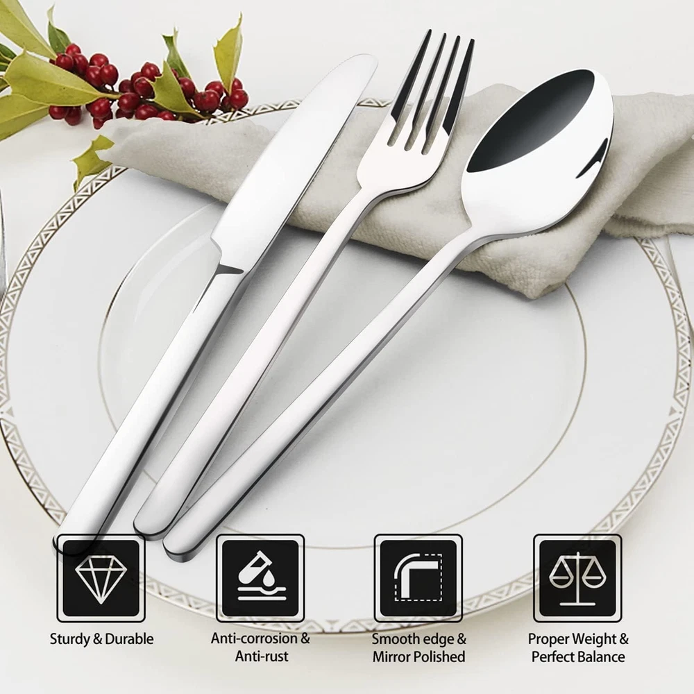 Modern 18/10 Stainless Steel Cutlery Set, 60 Pieces for Memorable Dinner Parties ‹ › ‹ › ‹ › ‹ › ‹ › ‹ › ‹ › ‹ › ‹ › Modern 18/10 Stainless Steel Cutlery Set 60 Pieces for Memorable Dinner Parties Overview: Includes 12 dinner knives (8.9''), 12 dinner forks (8''), 12 dinner spoons (8''), 12 salad forks (6.7''), and 12 teaspoons (6.7'') - service for 12. Crafted from high-quality 18/10 stainless steel for durability and elegant appeal. Perfectly balanced, sturdy, and corrosion-resistant - designed for lasting quality. Features: Comfortable grip with thickened handles that resist bending. Fine mirror finish with smooth, refined edges; classic simplicity enhances every dining experience. Easy to clean with a mirror polished surface - eliminates the need for single-use plastics. Perfect For: Thanksgiving Day, Mother's Day, Housewarming, Weddings, Restaurants, Hotels, or Daily Use. Elevates everyday meals into a fine dining experience. Why Choose Our Cutlery Set? Transform your dining occasions with our Modern 18/10 Stainless Steel Cutlery Set, designed to impress your guests while delivering unmatched durability and elegance. Crafted from premium stainless steel, this 60-piece set offers a perfect service for up to 12, allowing you to host memorable dinner parties effortlessly. The fine polishing delivers a striking mirror finish, ensuring that every piece is a testament to your eye for quality. Invest in a dining experience that reflects sophistication and style – order your set today and elevate every meal into a special occasion! Shipping Free & Fast Shipping - We offer free shipping to most of the USA with a normal delivery time of 3-7 days. However, due to the current situation, additional delivery time (up to 3 weeks) may be required for some items. Alternative Carriers - We may use alternative carriers (e.g. USPS, FedEx, UPS, etc.) to ensure your package arrives safely and on time. Due to the use of multiple carriers, we are unable to provide a tracking number automatically. Handling Time - Orders are processed and shipped within 1-2 business days of receiving cleared payment. Shipping Restrictions - Shipping to Alaska, Hawaii, Puerto Rico, Guam, and other US territories may incur shipping charges or delivery restrictions. Please contact us before ordering, or your order can be refunded/cancelled. State Restrictions - There may be restrictions based on your state of purchase. For example, certain items may not be shipped to California due to state regulations. Contact for Tracking Updates - If you require tracking updates or have any concerns about the delivery of your order, please feel free to contact us, and we will be happy to assist you. Return Please see our eBay Return Policy. Thank you. Payment We accept all major credit cards, PayPal, and Apple Pay for your convenience. Your payment information is secure and encrypted to ensure a safe and seamless transaction. Please complete your payment within 3 days of purchase to avoid any delays in shipping. Feedback Your feedback is extremely important to us. We strive to provide the best products and customer service possible. If you are satisfied with your purchase, please take a moment to leave us a positive review. If you have any concerns or issues with your order, please contact us before leaving negative feedback. We are committed to resolving any problems and ensuring your satisfaction. Contact Us If you have any questions or concerns, please feel free to reach out to our customer support team. You can contact us through the eBay messaging system. We are available Monday to Friday, 9:00 am to 5:00 pm EST, and we will do our best to respond to your inquiry within 24 hours. Thank you for supporting our small family business! UPC: Not Set Unit Quantity: 60 Material: Stainless Steel Set Includes: Serving Set,Dinner Knife,Dinner Fork,Dinner Spoon,Salad Fork,Teaspoon Department: Adults Character: Not Set Features: Dishwasher Safe,Rust Resistant Type: Set Brand: Unbranded Handle Material: Stainless Steel Country/Region of Manufacture: Not Set Color: Silver Finish: Polished Style: Modern Handle Pattern: Not Set MPN: Not Set Occasion: Thanksgiving Wood Tone: Not Set Character Family: Not Set Item Length: Not Set Item Weight: 7.02 lb Model: Not Set Manufacturer Warranty: Not Set Unit Type: lb Care Instructions: Dishwasher Safe