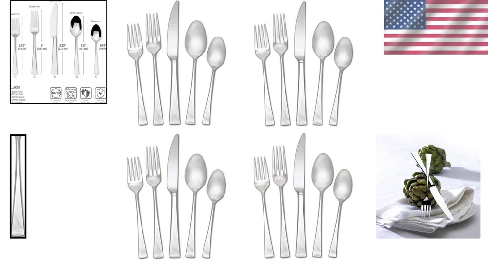 Is Dishwasher Safe: Yes Type: Set Handle Material: Stainless Steel Brand: Unbranded Material: Stainless Steel Department: Adults Finish: Polished Service For: 4 Number Of Pieces: 20 Item Weight: 3 lb Care Instructions: Dishwasher Safe Set Includes: Fork, Dinner Fork, Salad Fork, Dinner Knife, Dinner Spoon, Teaspoon Global Trade Identification Number: 00885991071723 Finish Type: Polished Product Care Instructions: Dishwasher Safe Recommended Uses For Product: Dining_table Special Feature: Dishwasher Safe Style: Contemporary Features: Dishwasher Safe Color: Silver Is Stain Resistant: Yes Product Dimensions: 9.1 X 3.5 X 11.6 Inches Personalize: No Number of Items in Set: 20 UPC: Does Not Apply Occasion: Everyday Use gtin13: Does Not Apply