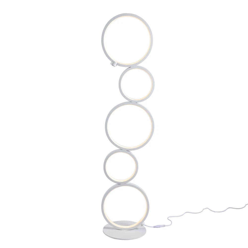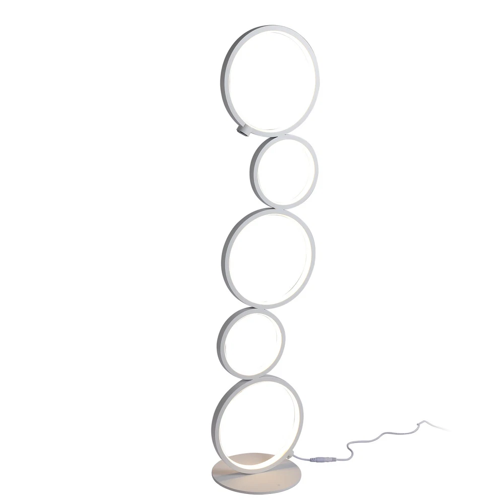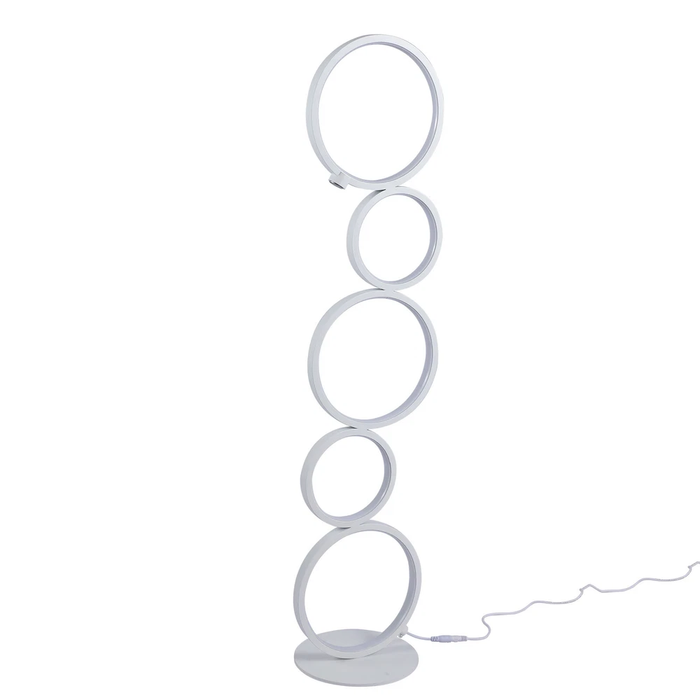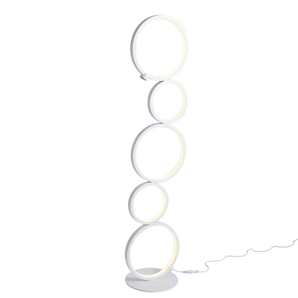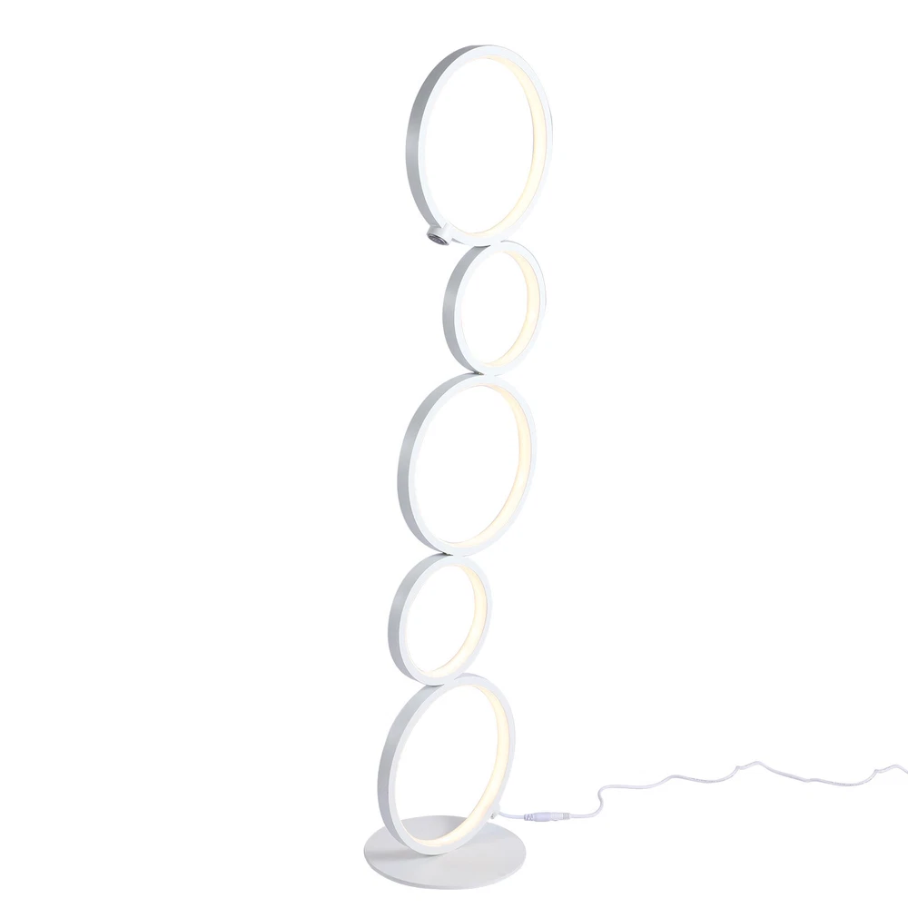 Illiminant: LED Permanently Integrated Pattern: N/A Number of Settings: N/A Energy Star: A Wattage: 24W Department: Adults Dimmable: Yes Style: Modern Color: N/A EC Range: A - G Features: N/A Brand: Unbranded Cord Color: N/A Lighting Technology: N/A Room: N/A Lumens: 2400 lm UPC: Does not apply Voltage: 110V Material: Aluminum, Iron, and Silicone Character Family: N/A Theme: N/A MPN: N/A Type: Floor Lamp Sensor Type: N/A Character: N/A gtin13: Does not apply Number of Rings: 5 Cable Size: 59 Inches Long Product Dimensions: 35.5 Inches Tall Lifespan: 30,000 Hrs Control Style: N/A Power Source: N/A Color Temperature: 3000K Finish: N/A Shade Shape: N/A