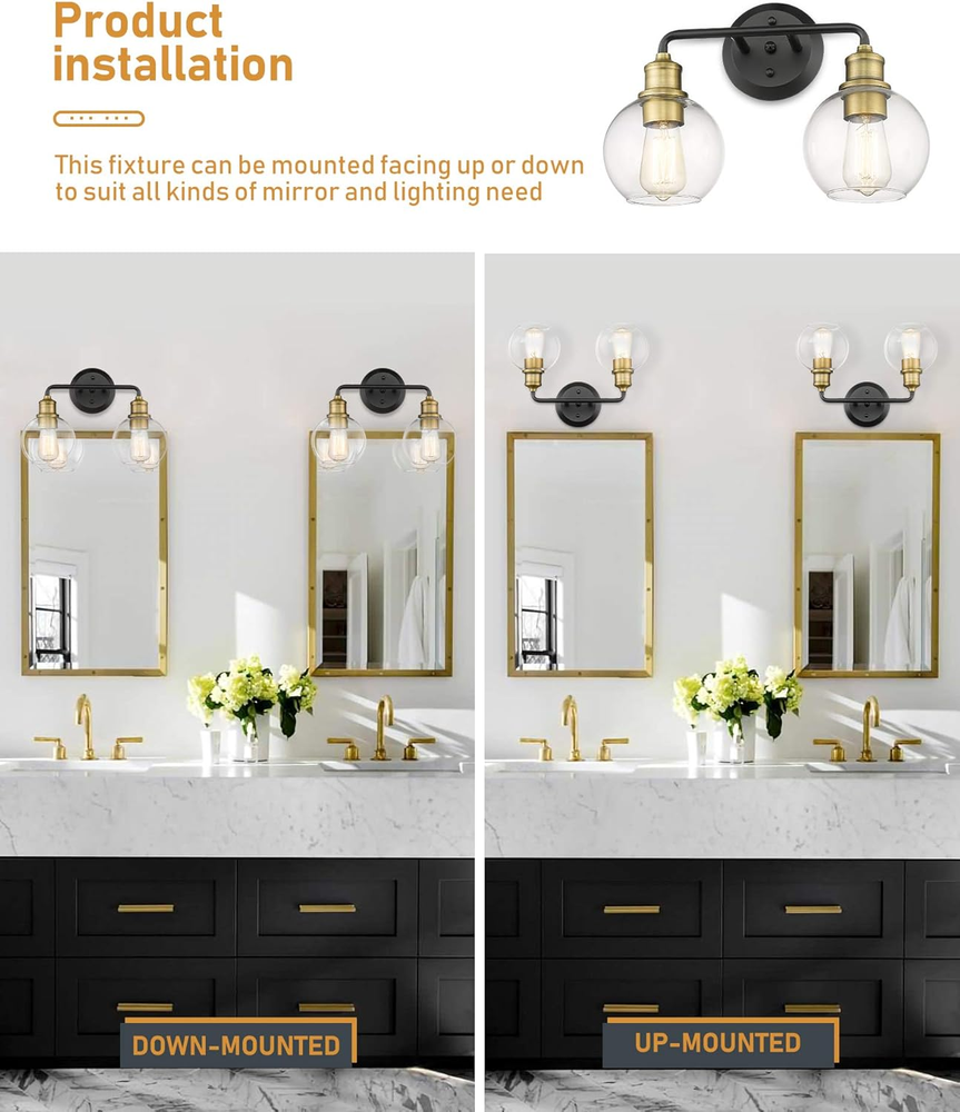 Store New Arrivals Add to Favorite View Feedback Contact 2-Light Bathroom Vanity Lights, Bathroom Light Fixtures over Mirror with Clear Glass Shade, Matte Black & Antique Brass Finish Farmhouse Wall Lights, KW-7221-2 Description Item model number KW-7221-2 Light Source Type LED, Incandescent, Compact Fluorescent Light (CFL) Style Contemporary Number of Items 1 Power Source AC Fixture Type Non Removable Number of Light Sources 2 Control Method Remote Warranty Type Limited Theme Vintage Contemporary Batteries Included? No Lighting Method Adjustable Maximum Compatible Wattage 60 Watts Specification Met UL Controller Type Push Button Unit Count 1 Count Room Type Bathroom, Wash Room, Powder Room Assembly Required Yes Product Dimensions 16"L x 7"W x 11"H Material Glass, Metal Installation Type Flush Mount Model Name KW-7221-2 Finish Type Matte Black & Antique Brass Specific Uses For Product Home Bulb Features Dimmable Indoor/Outdoor Usage Indoor Country of Origin China Batteries Required? No Item Weight 2.43 pounds Light fixture form Vanity Special Features This lamp can be mounted facing up or down to suit all kind of mirror and lighting need. Special Feature This lamp can be mounted facing up or down to suit all kind of mirror and lighting need. Bulb Base E26 Shade Color Clear Mounting Type Wall Mount Color Black Wattage 60 watts Voltage 120 Volts Plug Format A- US style Recommended Uses For Product Indoor, Bathroom, Vanity Shade Material Glass Finish types Matte Black & Antique Brass Size 2 Light ANTIQUE DESIGN: This bathroom vanity lighting features a vintage appearance highlighted by matte black & antique brass finish with clear glass lampshade, perfect suit for industrial, farmhouse, rustic, traditional, vintage styles home decor. PERFECT ADDITIONS: This lighting fixture is ideal for bathroom vanity, dressing table, mirror cabinets, vanity table, powder room, kitchen sink, and bedroom, living room, dining room, foyer, hallway, staircase, coffee room, restaurant, etc DIMENSIONS MEASURE: 15.5”(L) x 6.5”(W) x 11”(H). This vanity light fixture can be mounted facing upward or downward to meet all kinds of mirror and lighting needs BULB REQUIREMENTS: Compatible with E26 medium base LED, Incandescent, CFL light bulbs. 2 x ST64 LED Edison light bulb recommended (Max 60W, bulbs and dimmer are NOT included). EASY TO INSTALL: Including all required accessories and illustrated instruction. The black and gold bathroom lights can be installed quickly Product Description ABOUT US We offer the best prices around on high quality products. Our E-store includes media such as books, movies, music and games while offering electronics, toys, sporting apparel, clothing, tools, general home, garden items and more. SHIPPING We are always working hard to ensure your package arrives as soon as possible. Please understand that some factors like weather, high postal traffic, and the performance of shipping companies are outside of our control. We offer free shipping to the lower 48 states and ship within 2 business days of payment, usually sooner. We do not accept P.O. Boxes. Please provide a physical address. For shipping outside of the continental USA, we only use eBay's Global Shipping Program.The item is shipped to KY and then sent to the rest of the world. International customers are responsible for all duties and taxes. Continue to check out in order to calculate costs for shipping the item to your country. Messages regarding eBay's Global Shipping Program MUST be directed at eBay EXCLUSIVELY. RETURNS We offer a 30-Day Return Policy on items which you are not completely satisfied with. You have the option for a full-refund or an exchange of the item. No returns are available on items shipped outside of the USA. PAYMENT We accept PayPal. CONTACT US This page content is yet to come Please ad us to your favorite seller and visit again later Thank You CUSTOMER SATISFACTION We try our very best to make sure every customer is completely satisfied. If there's a problem, message us! We're happy to help. WE ACCEPT Copyright © 2021 AutoDS. | All Rights Reserved