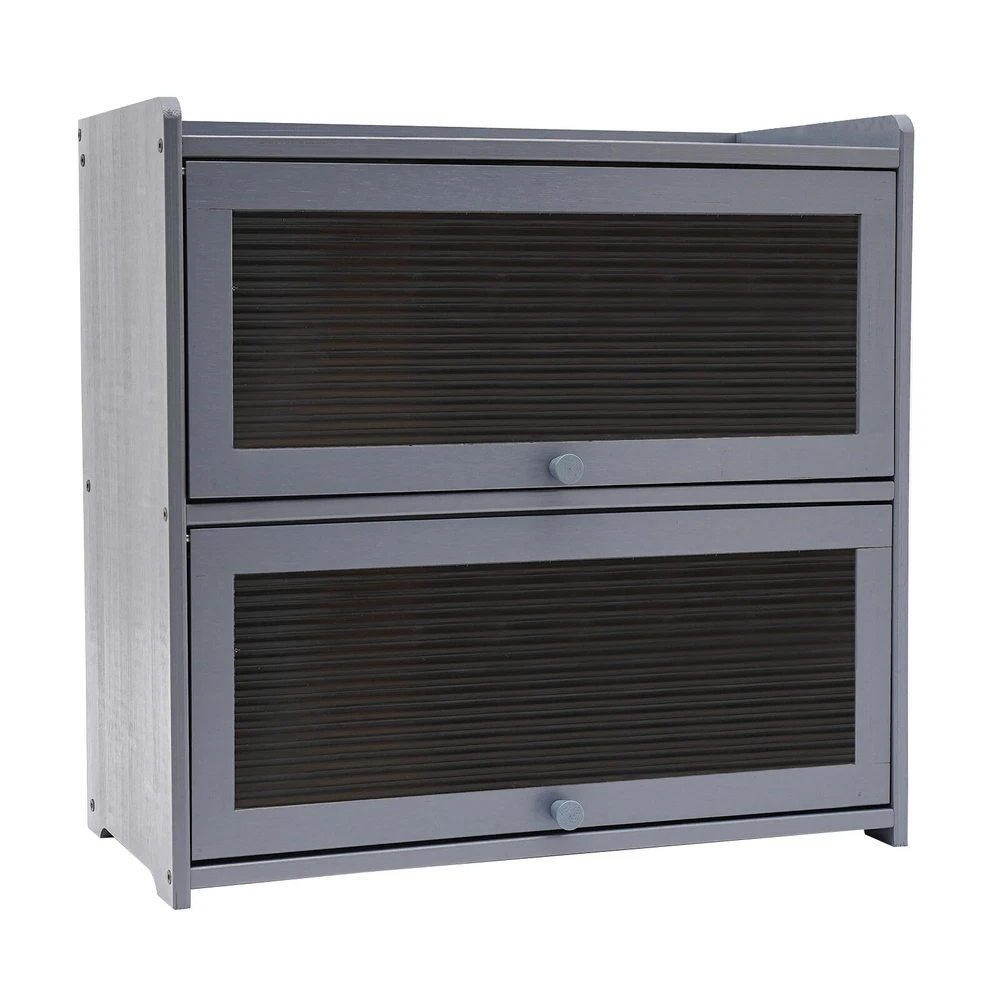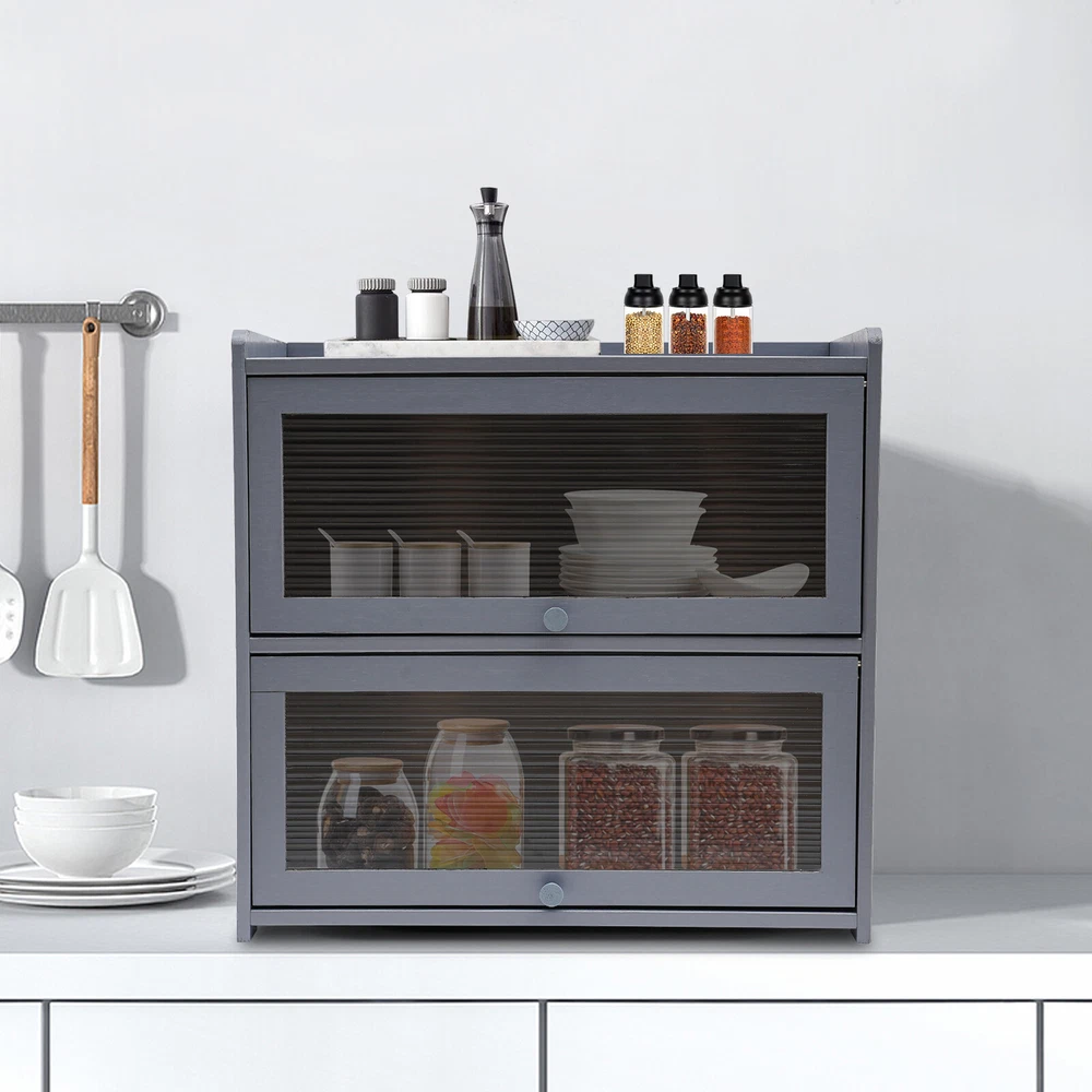 This stylish 2-tier storage cabinet is a game-changer for organizing small spaces! The sleek gray bamboo and acrylic design fits perfectly in kitchens, bedrooms, or studies. I love how sturdy it is—each shelf holds up to 15kg, perfect for my books, cosmetics, and kitchen essentials. Assembly was quick, and the modern rectangular shape looks great on countertops. Super versatile and surprisingly spacious for its compact size!
