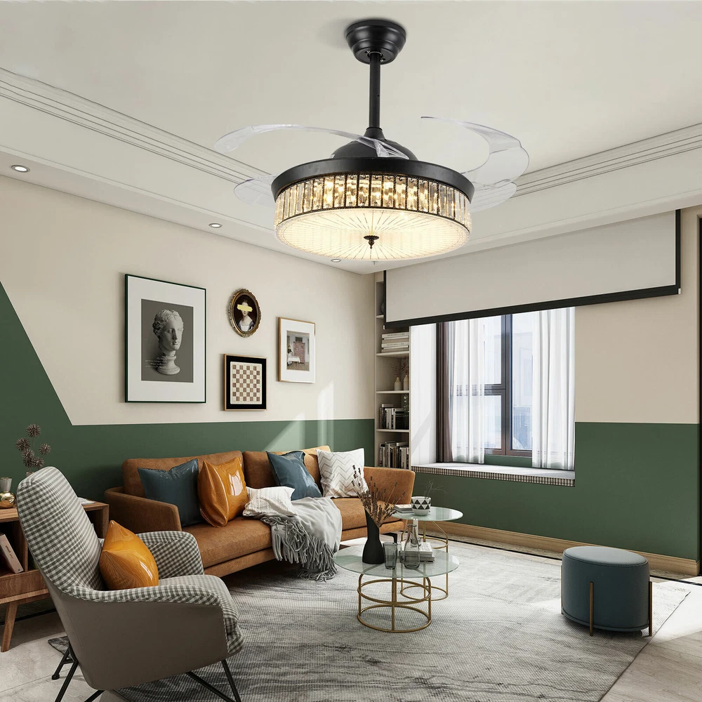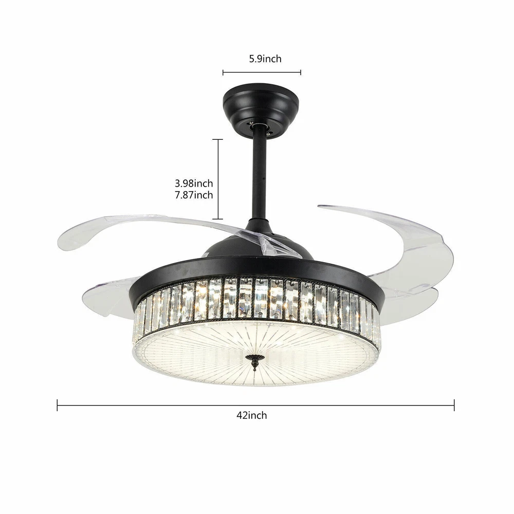 42'' Modern Retractable Ceiling Fan Light LED Dimmable Chandelier Lamp w/ Remote 42" Crystal Invisible Ceiling Fan Light 4 Blades Chandelier Fixtures 3-Speed +RC Description: ❤ Modern invisible fan chandelier: Fan and chandelier combined into one with remote control, automatic telescopic fan blade, LED lamp beads ❤ Ceiling fan with remote: . Dimmable LED lights have 3 color changes (White-Warm-Yellow), Fan has 3 speed settings (Low-Mid-High). All these functions can be easily controlled by remote ❤ Modern Fan Light Chandelier: 42 inches when the fan is extended, Includes two lower bars, one for3.978inches and the other for 7.87 inches, you can choose one to install ❤ Bedroom Ceiling Fans Material: metal body + acrylic lamp cover + ABS retractable blades + pure copper motor(providing powerful air flow, quiet and durable. With vents, it can reduce the internal temperature of the main unit and extend the life of the motor.) Features: Ceiling Fan with LED Light: Replaceable LED light will last a longtime and save you the most on your energy bills. Ceiling Fan with Remote Control: Control the light and fan speed separately for ease and convenience. Color temperature: CCT Dimmable (3 light cycles) Light source type: LED(Light Kit Included) Control: Remote Control Included Dimensions: 42Inch, 4 Retractable Blades Light Wattage: 36W Motor Wattage: 56W Speed: 3 Voltage: 110V Installation Instructions: Ceiling Chandelier Suitable for Flat Roof Concrete Ceiling House, for Gypsum Board and Wood Ceiling, You Need to Buy a Remodeling Bracket; Identify and Connect Electrical Wires; Ceiling height is greater than 110", Lift 110 Pounds. What you get: Retractable ceiling fan x 1 Screws sets x 1 Down rods x 2 (10M & 20CM) Remote control x 1 Instruction Manual x 1 Payment Delivery details Terms of sales About us Contact us Payment We accept ebay payment 。 Fees such as import duties, taxes are not included in the item price or shipping costs. These charges are the buyer's responsibility. Delivery details Shipping: 2-9 working days to: USA Terms of sales We maintain high standards of excellence and strive for hundred percent customer satisfaction. Feedback is very important to us. We hope that you contact us immediately before you give neutral or negative feedback, so that we can address your concerns. It is impossible to address issues if we do not know about them! About us Your satis faction is our ultimate goal. We work hard to earn your trust and future business. Our certified technicians have tested each item before shipping. The unit comes with 1 year limited warranty on all manufacturing defects. a) If you receive a defective item, you may return it or ask for a discount. Please contact us within 14 days after you receive the package. b) What you returned must be intact and in its original packaging as re? u. Customer is responsible for shipping costs of the returned item. c) We will cover the cost of shipping back t with the shipping rate indicated in the registration page. We will send you a new unit or refund the full payment you paid. Thank you. Contact us Business Hour Business Hour: Monday To Friday: 8:30 AM to 5:00 PM (Beijing China time) Due to time zones, our reply to your questions may not be immediately. But within above working time, we will reply your email within 24 hours. If it's non-workdays, please kindly be patient and wait till Monday. Please contact us with ebay message. Please feel free to contact us if you have any questions. Monday To Friday: 8:30 AM to 5:00 PM (Beijing China time) Due to time zones, our reply to your questions may not be immediately. But within above working time, we will reply your email within 24 hours. If it's non-workdays, please kindly be patient and wait till Monday. Please contact us with ebay message. Please feel free to contact us if you have any questions. Type Ceiling Fan Control Style Remote Control Material Crystal Blade Color Clear Cord Color Does not apply Installation Area Indoor Lighting Technology LED Number of Settings 1 Room Dining Room, Home Office/Study, Living Room, Porch, Bedroom Number of Speeds 3 Power Source Corded LED String/Strip Type WS2811 Style Modern Color Black Number of Blades 4 Fan Width 42" Manufacturer Does not apply Sensor Type Light Energy Star 1 Star EC Range A+++ - G Mounting Ceiling Mounted Personalized Yes Country/Region of Manufacture Unknown Manufacturer Warranty 3 Years Design N/A Brand SENDERPICK MPN Does not apply On Jan 6, 2025 at 21:49:55 PST, seller added the following information: