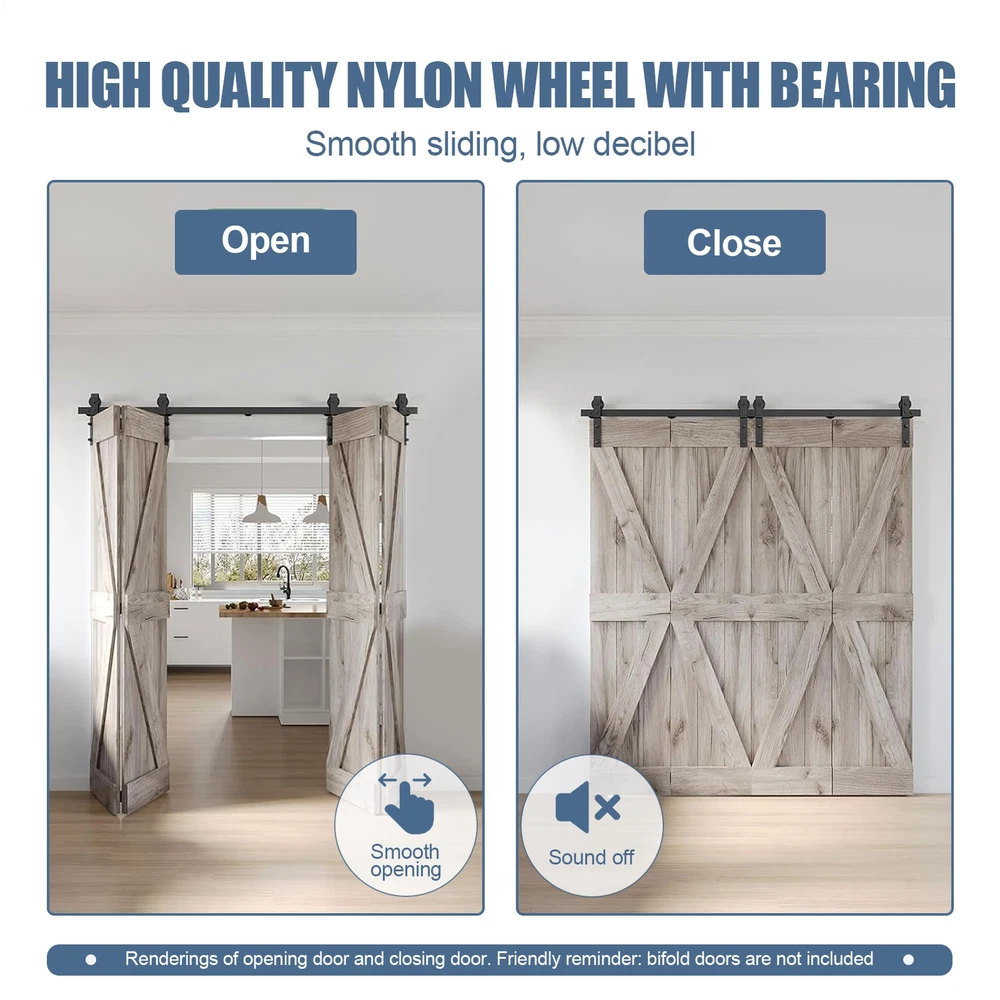 Store category Sign Up Now ! You may also like Product Description Bullet Points: Maximize Your Space: Add a touch of elegance to any room with this Rail Sliding Barn Door that seamlessly fits into different life situations. Its space-saving design concept is perfect for a wide range of applications, such as living areas, dining rooms, and study rooms. Barn Door Hardware Kits: Equipped with 6x hinge, 1x sealing strip, and 2x roller holder, our Rail Sliding Barn Door kit ensures you have all the necessary components—2x floor rails, 4x roller, and 5x FT track—providing a sufficient quantity to meet your installation needs. Good Dependability: Made of high-quality carbon steel, this sliding barn door rail boasts solid durability and impressive wear-resistant, providing a reliable and enduring solution for your home design needs. Effortless Installation: Comes with a detailed bi-fold sliding barn door kit and intuitive picture-text instructions, ensuring a quick and easy setup process. Reliable Performance: With the capacity to carry heavy loads, this Rail Sliding Barn Door boasts a sturdy bearing and nylon wheel combo, making it a practical choice for supporting and sliding even the heaviest of doors on its 6mm thick track. Made of high-quality carbon steel, this rail is both sturdy and stylish. With sufficient quantity, you can easily outfit multiple doors. Plus, our easy-to-follow instructions and pictures make installation a breeze. Specifications: Colour: Black Material: carbon steel Product Size: Track size: about 76 inches (193CM) Track splicing method: 5 pieces Scope of application: Door panel thickness 0.5-50MM Packing List: 5x FT track 4x roller 4x roller swivel stand 2x roller holder 6x pipe clamps 6x hinge 2x ground guide fixings 2x sealing strip 1x screw pack 1x instruction manual Payment Delivery details Terms of sales About us Feedback & DSRs Payment Before you palce an order, please kindly make sure that you have a paypal account. We accept PAYPAL payment only. Payment should be completed within 2 days after auction closed, or unpaid dispute will be filed for an closing auction. An unpaid case will be filled after 4 days. Delivery details We ship to your eBay address. Each package will be shipped to US by UPS Regular Parcel with tracking number. Please check your shipping address carefully before checkout, it can't be changed if order completed. All items will be shipped within 1-2 business day upon receipt of payment.Orders placed on weekend will be shipped within 3 days. If you do not receive your item in 7-10 business days.please contact us immediately for further assistance. We will be responsible for any damages or losses incurred in the shipping process. About us We maintain high standards of excellence FIVE STAR and strive for 100% customer satisfaction! Positive Feedback is very important to us. We hope that you contact us immediately Before you give us neutral or negative feedback, so that we can satisfactorily address your concerns. We promise to offer the lowest price and high quality produce. Our working time: From Monday to Friday(9:30 am to 18:00pm), we don't working on holidays ,hope you can understand and know that , thank you. Please always talk to us via ebay Message. We appreciate your business and look forward to growing our e-Bay sales with satisfied customers. Feedback Contact us If you have any questions, please feel free to contact with us by ebay Message during our business hours ( 9:30a.m. to 5:30 p.m.), or email us through eBay, we will try our best to help you to resolve it. For any presale or after-sale questions,please do feel free to email us! Due to the time difference, each email will be replied within 1 working day,and weekend will be delayed a bit. Feedback