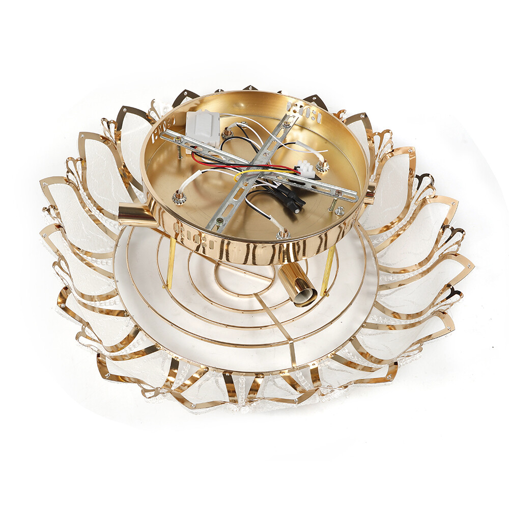 Specifications: Pure copper motor(15 years warranty)+polishing Model: with remote control (Three gears brightness ) • Type:Flush Mount • Material: Crystals+ABS+Metal • Style:Modern • Color:Gold • Suggested Room:Fit Dining Room, Bedroom, Living Room • Suggested Room Size:18-23㎡ •Diameter: 60cm/23.5" • Mount type:Flush In order to avoid shipping damage, the glass sheet is not installed, you need to install it yourself • Bulb Base:E12 (Bulb NOT Included) • Voltage: 110V • Frequency: 50-60 (Hz) • Power:MAX 40W 💖welcome to aaertu~💖 Notice: You Need to Buy E12 Bulbs by Yourself; In Order to Avoid Shipping Damage, the Glass Sheet Is Not Installed, You Need to Install It Yourself. Description Modern Lotus Crystal 7-Head Pendant Light Flush Mount 23.5" Chandelier Remote Control Specifications Model: with Remote Control (Three Gears Brightness ) Pure Copper Motor(15 Years Warranty)+Polishing Type: Flush Mount Material: Crystals+ABS+Metal Style:Modern Color:Gold Suggested Room: Fit Dining Room, Bedroom, Living Room Suggested Room Size:18-23㎡ Mount Type:Flush Bulb Base:E12 (Bulb Not Included) Voltage: 110V Frequency: 50-60 (Hz) Power:Max 40W Number of Lights: 7 Lights What's Included? 1x Chandelier With Remote Control Features&Highlights High Good Material Made of Crystals+ABS+Metal Remote Control Prepared With Remote Control to Adjust Brightness Elegant Design With Elegant 7 Gold Lotus Leaves Design and Crystal Drops Three Gears Brightness 3 Adjustable Brightness Support With Remote Control Easy Installations Flush Mount installations,instrucions Sheet Provided Wide Applications Fit Dining Room, Bedroom, Living Room *Pure Copper Motor(15 Years Warranty)+Polishing *Power:Max 40W *Number of Lights: 7 Lights *Material: Crystals+ABS+Metal *Remote Control Support INSTALLATIONS Payment Delivery details Terms of sales About us Contact us Payment We accept ebay payment 。 Fees such as import duties, taxes are not included in the item price or shipping costs. These charges are the buyer's responsibility. Delivery details Shipping: 2-9 working days to: USA Terms of sales We maintain high standards of excellence and strive for hundred percent customer satisfaction. Feedback is very important to us. We hope that you contact us immediately before you give neutral or negative feedback, so that we can address your concerns. It is impossible to address issues if we do not know about them! About us Your satis faction is our ultimate goal. We work hard to earn your trust and future business. Our certified technicians have tested each item before shipping. The unit comes with 1 year limited warranty on all manufacturing defects. a) If you receive a defective item, you may return it or ask for a discount. Please contact us within 14 days after you receive the package. b) What you returned must be intact and in its original packaging as re? u. Customer is responsible for shipping costs of the returned item. c) We will cover the cost of shipping back t with the shipping rate indicated in the registration page. We will send you a new unit or refund the full payment you paid. Thank you. Contact us Business Hour Business Hour: Monday To Friday: 8:30 AM to 5:00 PM (Beijing China time) Due to time zones, our reply to your questions may not be immediately. But within above working time, we will reply your email within 24 hours. If it's non-workdays, please kindly be patient and wait till Monday. Please contact us with ebay message. Please feel free to contact us if you have any questions. Monday To Friday: 8:30 AM to 5:00 PM (Beijing China time) Due to time zones, our reply to your questions may not be immediately. But within above working time, we will reply your email within 24 hours. If it's non-workdays, please kindly be patient and wait till Monday. Please contact us with ebay message. Please feel free to contact us if you have any questions.