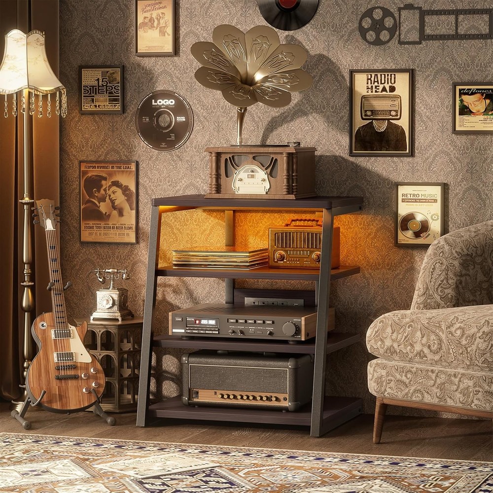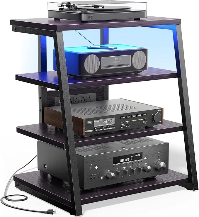 AV Media Stand with Outlets, Media Console with LED Lights, Stereo Racks and Stands with Storage Shelves, Media Audio Tower Cabinet, Black Enoby Item Description About this item [ Embedded Power Strips and LED Strip ] The provided power strip of the media stand is easily assembled. It comprises 4 120v connections and 2 USB connectors. A short LED strip comes attached to the bottom of the top shelf and can be controlled with a supplied remote controller which provides several lighting options. [ Sturdy Structure and Thick Boards ] Structured with high-quality boards and a strong metal frame, this media tower stand will work very well in holding audio equipment, even stable enough to carry a turntable. The footpads of the unit can be individually adjusted which is important for turntable users since the turntable should be level. [ Large and Adjustable Shelves ] The shelves of this media console are so wide and large and can accommodate all your stereo items very well. Two middle adjustable shelves allow you to set them at the suitable heights according to your items' dimensions. [ Easy to Put Together ] This little stereo stand comes with all necessary hardware and all are labeled. A screwdriver and hex tool are also provided. Assembly instructions are pictorial and comprehensive and are easy to understand. [ Compact and Space Saver ] The small audio component rack is compact but has plenty of room for the sound system. This audio rack will help to hold your stereo components well and not mess up at all because of the built-in power strip and velcro tape. You will get a classic and neat room. › See more product details *The shelves of this media console are so wide and large and can accommodate all your stereo items very well. Plenty of room on the shelves for the player, amp and CD player. *Structured with high-quality boards and a strong metal frame, this media tower stand will work very well in holding audio equipment, even stable enough to carry a turntable. *A short LED strip comes attached to the bottom of the top shelf and can be controlled with a supplied remote controller which provides several lighting options. *Two middle adjustable shelves allow you to set them at the suitable heights according to your items' dimensions. *The provided power strip of the media stand is easily assembled. It comprises 4*120V AC outlets and 2*USB ports. *The av stand is compact but has plenty of room for the sound system. It will help to hold your stereo components well and not mess up at all because of the built-in power strip and velcro tape. You will get a classic and neat room. *This little stereo stand comes with all necessary hardware and all are labeled. A screwdriver and hex tool are also provided. Assembly instructions are pictorial and comprehensive and are easy to understand. Payment We accept payment only through PAYPAL Shipping We ship products worldwide through standard express courier service, it will reach within 7 to 10 days to abroad buyers, we ship the product after recieved clear payment and give full information about shipment to the buyer Return We accept product return within 7 to 21 days from delivery date but product should be in original position and not in damaged condition,the return shipping charges will be buyer responsibility