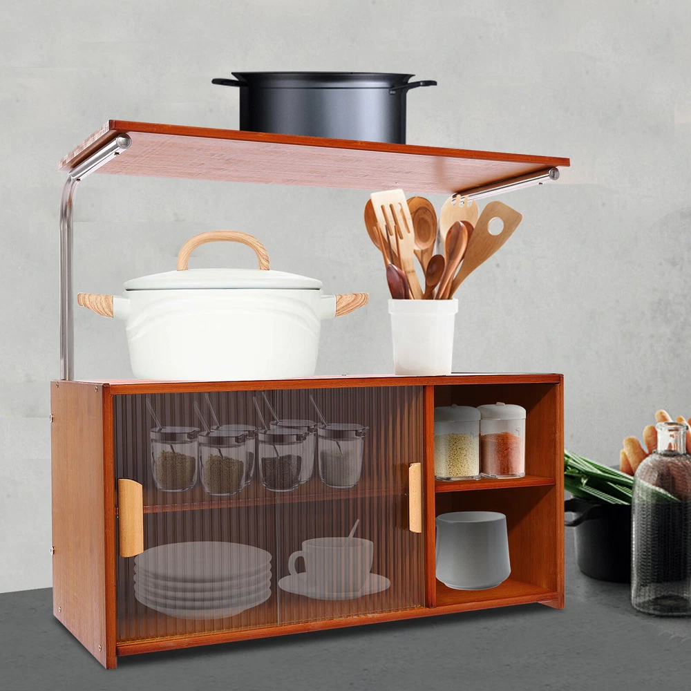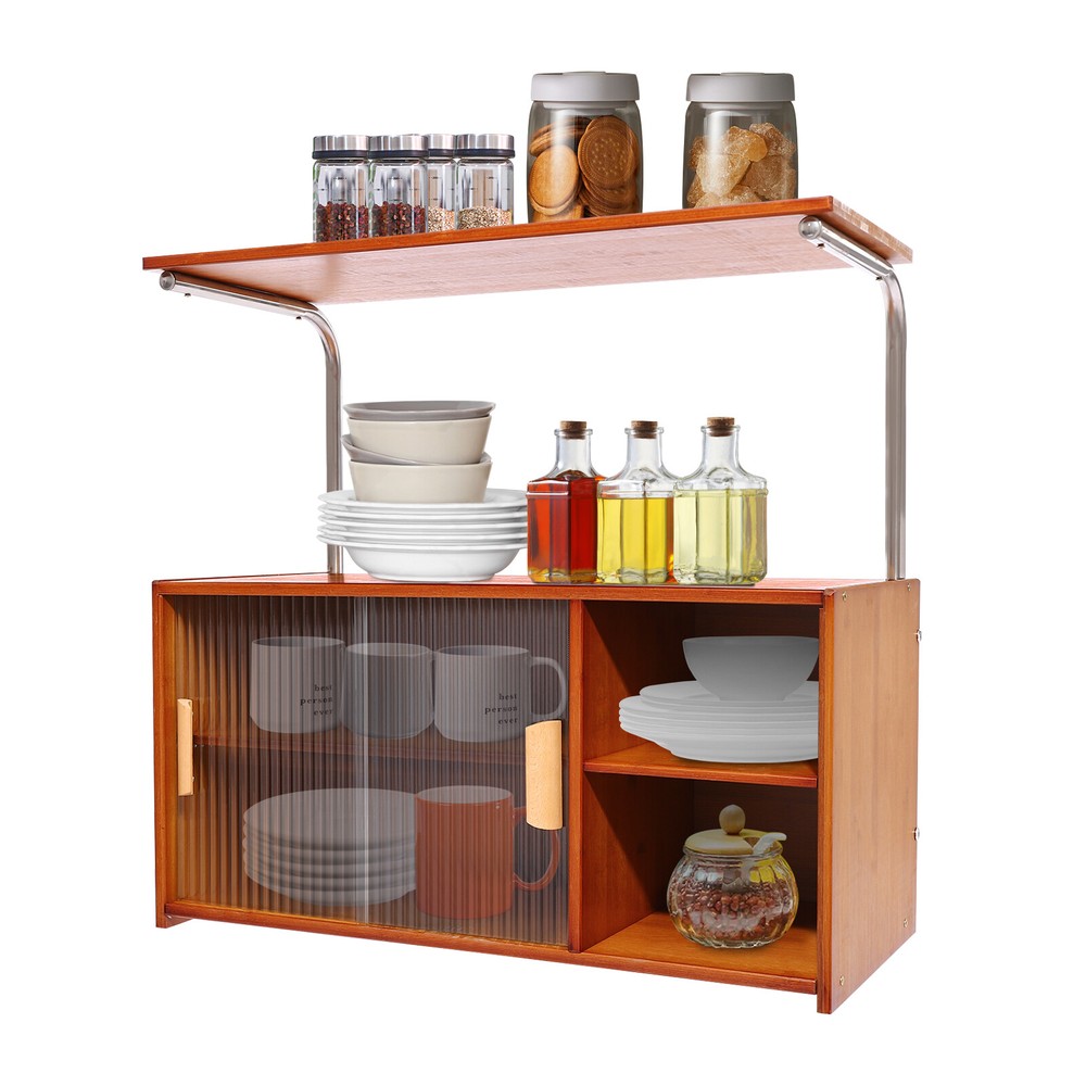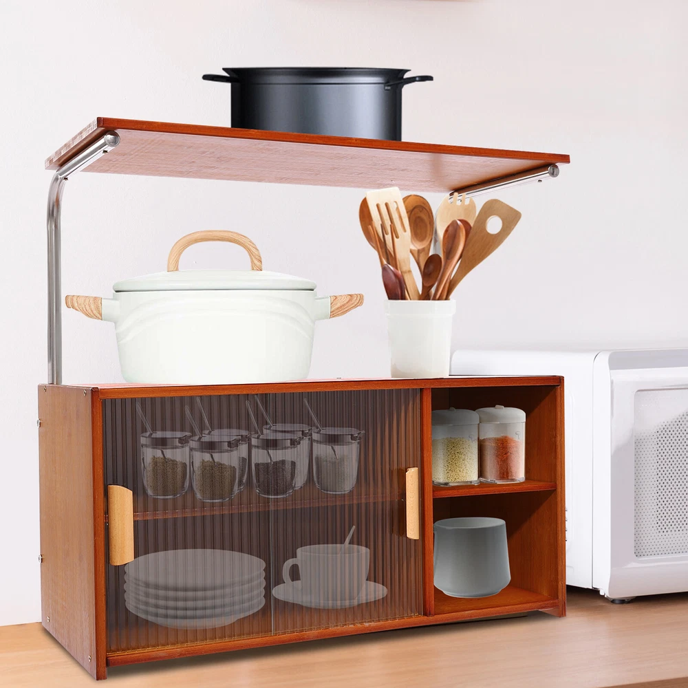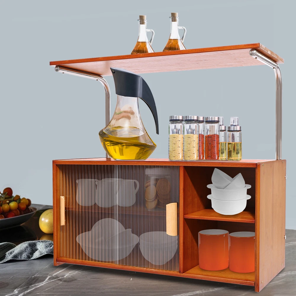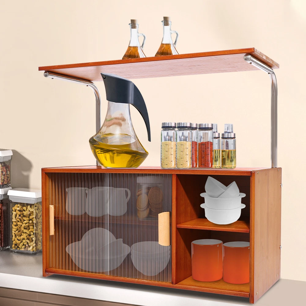 Specifications Material: Bamboo, Glass, MDF, Stainless Steel Process: Painting, Grinding Color: Tea Color Style: Modern Shape: Rectangular Mounting Type: Free Standing, Countertop Assembly Required: Yes Laminate Adjustment Range: Upper and Lower 7cm/2.76in Each Tier Bearing Capacity: About 12.5kg/27.56lbs Tier Spacing: 15cm/5.9in, 14cm/5.5in Distance from Desktop to Top Platform: 27cm/10.6in Top Platform Width: 28cm/11in Product Size: 67*30*62cm/26.4*11.8*24.4in Package Size: 78*33.5*11.5cm/30.71*13.19*4.53in Gross Weight: 11.64kg/25.66lbs Net Weight: 11kg/24.25lbs Package Included 1*Storage Cabinet All Accessories for Assembly Modern Storage Cabinet With Doors Kitchen Bedroom Bamboo Storage Cabinet Shelf Key Features Sturdy and Durable : Bamboo, stainless steel, glass, and MDF together with painting and grinding processes make this product sturdy, safe, impact- resistant , anti-deformation, anti-corrosion , and anti-rust , and ensures a long service life. Considerate Design: The clear door design makes it easy for you to observe the internal items, making it easy to find and store, and also protects against dust and grease, ensuring a good seal. In addition, the internal laminate can be adjusted up or down 2.76 inches to accommodate high wine bottle seasoning bottles . Large Capacity : The dual-tier design with doors can accommodate various cutlery such as pots, spices, bowls, and plates. The table top allows you to place a microwave oven, knife racks, etc. The large platform on the top provides you with extra space to store your kitchen utensils. Enhanced Stability : The thick frame, sturdy screws, and solid construction allow it to hold up to about 27.56 lbs in each tier, making it resistant to bending and wobbling, giving you peace of mind. Space-Saving : The product can be placed on any flat surface, such as a tabletop or floor, making the most of vertical space, saving countertop space, and keeping your kitchen cleaner and tidier. Practical Gift : Thanks to its wide applicability, it can be used as a holiday or housewarming gift for your family and friends, especially for those who love to cook! Elegant Appearance : It adopts a classic tea color scheme and rectangular structure to present a simple but eye-catching outlook, which can match most decorating styles and color themes, suitable for most use scenarios. Simple Installation : The simple structure, pre-drilled holes, and complete accessories allow you to complete installation and start using it in a short period. Effortless Clean : Simple construction and smooth surface allow you to easily wipe away dust and residue with a towel. Details Open Compartments : They make it easy for you to identify and reach items in time. Practical Handles : They promote smooth door pushing and pulling, while the handles also enhance the aesthetics of the product. Support Bars: They provide strong support for the top platform. Smooth Edges : They not only enhance the aesthetics of the product but also improve safety during installation, cleaning, and use. Application It can be widely used in kitchens, homes, and restaurants for storing microwaves, spice jars, cutlery, bowls, plates, chopping boards, spoons, forks, and more. Specifications Material: Bamboo, Glass, MDF, Stainless Steel Process: Painting, Grinding Color: Tea Color Style: Modern Shape: Rectangular Mounting Type: Free Standing, Countertop Assembly Required: Yes Laminate Adjustment Range: Upper and Lower 7cm/2.76in Each Tier Bearing Capacity: About 12.5kg/27.56lbs Tier Spacing: 15cm/5.9in, 14cm/5.5in Distance from Desktop to Top Platform: 27cm/10.6in Top Platform Width: 28cm/11in Product Size: 67*30*62cm/26.4*11.8*24.4in Package Size: 78*33.5*11.5cm/30.71*13.19*4.53in Gross Weight: 11.64kg/25.66lbs Net Weight: 11kg/24.25lbs Package Included 1*Storage Cabinet All Accessories for Assembly Notes Please check the size carefully before ordering. We recommend that it be installed by two people and that other items are not included. Please allow the slight color difference caused by the shooting light and 1-3cm error due to manual measurement, and make sure you do not mind before you order. Payment Delivery details Terms of sales About us Contact us Payment We accept ebay payment 。 Fees such as import duties, taxes are not included in the item price or shipping costs. These charges are the buyer's responsibility. Delivery details Shipping: 2-9 working days to: USA Terms of sales We maintain high standards of excellence and strive for hundred percent customer satisfaction. Feedback is very important to us. We hope that you contact us immediately before you give neutral or negative feedback, so that we can address your concerns. It is impossible to address issues if we do not know about them! About us Your satis faction is our ultimate goal. We work hard to earn your trust and future business. Our certified technicians have tested each item before shipping. The unit comes with 1 year limited warranty on all manufacturing defects. a) If you receive a defective item, you may return it or ask for a discount. Please contact us within 14 days after you receive the package. b) What you returned must be intact and in its original packaging as re? u. Customer is responsible for shipping costs of the returned item. c) We will cover the cost of shipping back t with the shipping rate indicated in the registration page. We will send you a new unit or refund the full payment you paid. Thank you. Contact us Business Hour Business Hour: Monday To Friday: 8:30 AM to 5:00 PM (Beijing China time) Due to time zones, our reply to your questions may not be immediately. But within above working time, we will reply your email within 24 hours. If it's non-workdays, please kindly be patient and wait till Monday. Please contact us with ebay message. Please feel free to contact us if you have any questions. Monday To Friday: 8:30 AM to 5:00 PM (Beijing China time) Due to time zones, our reply to your questions may not