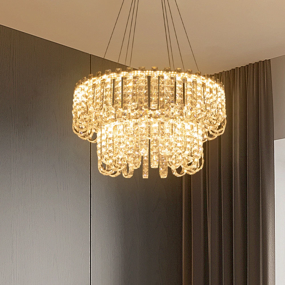 Welcome to hopefuther!!! Description Brighten up the night with a crystal chandelier. The delicate silver frame, intertwined with the bright light of the crystals, is like a beautiful painting that is mesmerizing. Its use of high-quality crystals can reflect light to almost every corner, brightening the whole room. Even in a dark environment, it can bring you endless warmth and romance. Whether at home or in public, it can bring you a wonderful visual and lighting experience. Key Features Selected Material: The product is made of high-quality crystal, stainless steel, and steel wire with the cutting process, making it bright, sturdy, anti-rust, and still beautiful and practical after long-term use. Unique Appearance: The unique crystal lampshade, the elegant silver color, and the rich hierarchical structure give the product a unique modern style. Its charming and romantic style can be matched with most of the furniture, which is a great choice for creating a home atmosphere. Excellent Light Source: The environment-friendly and energy-saving LED light with a high color index can effectively avoid glare and stroboscopic, protect your eyes, restore the most authentic color of objects, light up an area of about 107.64-215.28 ft², and save your costs. Different Light Colors: You can adjust the light colors(warm, white, and neutral) through the remote control(within 9.84-16.4ft) or wall switch(not included) to create different indoor atmospheres and meet the lighting needs for different activities. Adjustable Height: You can adjust the height of the chandelier by adjusting the length of the hanging wire(11.81-59.06 in) for different ceiling heights. Wide Voltage: This product supports a wide voltage range (90-265V) and can adapt to different voltage environments. Simple Installation: The simple structure, complete accessories, and clear installation diagram can help you complete the installation quickly and accurately. Exquisite Gift: With a beautiful appearance and practical function, it is an ideal gift for your friends and relatives on birthdays, anniversaries, festivals, housewarming, and other days. Good Customer Service: We stand behind all our guests and look forward to assisting you with your purchase. It is our pleasure to answer your confusion and questions. The end of the story between us is not "we sell and you buy". Details Solid Base: The 7.87-inch round base increases stress area, and can make the item fixed firm without falling easily. Practical Gloves: They protect your hands and the surface of the fixture during installation. Smooth Edge: The rounded and smooth edges not only add to the aesthetics of the product but also improve the safety of use. Application With a lighting area of 107.64-215.28 ft², it is ideal for kitchens, hallways, living rooms, bedrooms, balconies, bars, aisles, foyers, hotels, restaurants, corridors, cafes, dining rooms, children's rooms, libraries, billiard parlors, and other indoors. Specification Color: Silver Style: Modern Shape: Round Material: Crystal, Stainless Steel, Steel Process: Cutting Assembly Required: Yes Mounting Type: Ceiling Mount Indoor/Outdoor Usage: Indoor Efficiency: E Control Method: Remote Control, Wall Switch(Not Included) Light Color: White, Warm, Neutral Color Temperature: 3000-6500K Light Source: LED Voltage: 90-265V Power: 60W Battery Type: 2*AAA Batteries(Not Included) Remote Control Distance: 3-5m/ 9.84-16.4ft Illuminated Area: 10-20 m²/ 107.64-215.28 ft² Adjustable Height Range: 30-150cm/ 11.81-59.06 in Base Diameter: 20 cm/ 7.87 in Lampshade Diameter: 60 cm/ 23.62 in, 40 cm/ 15.74 in Lampshade Height: 40 cm/ 15.74 in Hanging Wire Length: 1.5m/ 4.92 ft Package Included 1* Crystal Chandelier 1* Remote Control 1* English Installation Diagram 2 Pairs* Gloves All Accessories for Installation Notes 1. The wall switch and remote control batteries are not included in this package. You need to prepare 2 AAA batteries yourself. 2. Please read the installation instructions completely before use. And pay particular attention to the safety instructions included. 3. Please use the lamp within the applicable voltage range and clean it regularly. Please cut off the power supply when you clean the light. Please wipe with a soft cotton cloth and do not use household cleaning agents. 4. Please check the dimensions of the product before ordering to ensure it fits your home. 5. Please make sure the power is cut off before installation. To ensure your safety, we recommend that two people install this lamp together. Please install it by someone with an electrical license if necessary. 6. Please use it in a dry environment. It is not suitable for outdoors and bathrooms. 7. Please allow the slight color difference caused by the shooting light and the 1-3 cm error due to manual measurement, and make sure you do not mind before ordering. Payment Delivery details Terms of sales About us Contact us Payment We accept ebay payment 。 Fees such as import duties, taxes are not included in the item price or shipping costs. These charges are the buyer's responsibility. Delivery details Shipping: 2-9 working days to: USA Terms of sales We maintain high standards of excellence and strive for hundred percent customer satisfaction. Feedback is very important to us. We hope that you contact us immediately before you give neutral or negative feedback, so that we can address your concerns. It is impossible to address issues if we do not know about them! About us Your satis faction is our ultimate goal. We work hard to earn your trust and future business. Our certified technicians have tested each item before shipping. The unit comes with 1 year limited warranty on all manufacturing defects. a) If you receive a defective item, you may return it or ask for a discount. Please contact us within 14 days after you receive the package. b) What you returned must be intact and in its original packaging as re? u. Customer is responsible for shipping costs of the ret