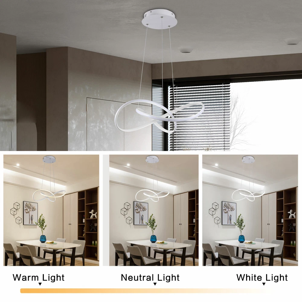 ❤❤❤Welcome❤❤❤ We are committed to providing customers with better and more favorable products!!! If you have any questions, please feel free to contact us!!! Thank you for your support~ Modern Chandelier LED Aluminum Pendant Lamp Round Ceiling Light Hanging 3 Color About this item 【Creativity style】 Modern creative ring chandelier is designed as continuous irregular and interlaced rings. The surface is a combination of elegance and fashion. Modern geometric chandelier is suitable for living room, study, office, dining room, bedroom, etc. 【Size】 Ring lampshade: 19.7 x 19.7 x 6.7 inch (50x50x17cm), Lamp tray: 7.8 x 7.8 x 1.8 inch (20x20x4.5cm), adjustable hanging rope: 0-47.2 inch (0- 120cm). Wattage: 46W. Voltage: 110-260V. COMMAND BY REMOTE CONTROL:Dimmable with Remote Control.Change Light Color Temperature from 3500K to 6000K and Brightness from Low to High ≈【Durable material】 Made of high-quality aluminum and PC, using electroplating technology to make its surface smooth. Corrosion resistant, non-fading, not easy to scratch and increase product life. ≈【LED light source】 Compared with traditional halogen light bulbs, the use of LED chips will be brighter and more energy efficient. LED pendant lights has high color rendering and protects eyes. Service life exceeds 20,000 hours. ≈【Installation】 Adjust the length of the hanging rope according to the height of the ceiling. Connect the wires and fix to the ceiling to complete the installation. Does not take much time. If there are any installation issues, please email us. The stylish contemporary and exquisite shape, suitable for home and commercial lighting decoration. This trefoil shape led pendant light are great for dining room table chandelier,bedroom pendant light,office hotel pendant lighting,restaurant chandelier and more. ►►Important Note: This is Dimmable LED chandelier. Size: Trefoil shape Light body: 19.7 x 19.7 x 6.7 inch (50x50x17cm) Ceiling plate: Dia 7.8 x H 1.8 inch (7.8x7.8x4.5cm) Adjustable sling: 47.2 inch (120cm) ► Reading the instruction before installation will save your installation time. Specification: Material: Aluminum, PC Connection method: Hardwire connection Style: Modern/Contemporary Lumens:110lm/W Payment Delivery details Terms of sales About us Contact us Payment We accept ebay payment 。 Fees such as import duties, taxes are not included in the item price or shipping costs. These charges are the buyer's responsibility. Delivery details Shipping: 2-9 working days to: USA Terms of sales We maintain high standards of excellence and strive for hundred percent customer satisfaction. Feedback is very important to us. We hope that you contact us immediately before you give neutral or negative feedback, so that we can address your concerns. It is impossible to address issues if we do not know about them! About us Your satis faction is our ultimate goal. We work hard to earn your trust and future business. Our certified technicians have tested each item before shipping. The unit comes with 1 year limited warranty on all manufacturing defects. a) If you receive a defective item, you may return it or ask for a discount. Please contact us within 14 days after you receive the package. b) What you returned must be intact and in its original packaging as re? u. Customer is responsible for shipping costs of the returned item. c) We will cover the cost of shipping back t with the shipping rate indicated in the registration page. We will send you a new unit or refund the full payment you paid. Thank you. Contact us Business Hour Business Hour: Monday To Friday: 8:30 AM to 5:00 PM (Beijing China time) Due to time zones, our reply to your questions may not be immediately. But within above working time, we will reply your email within 24 hours. If it's non-workdays, please kindly be patient and wait till Monday. Please contact us with ebay message. Please feel free to contact us if you have any questions. Monday To Friday: 8:30 AM to 5:00 PM (Beijing China time) Due to time zones, our reply to your questions may not be immediately. But within above working time, we will reply your email within 24 hours. If it's non-workdays, please kindly be patient and wait till Monday. Please contact us with ebay message. Please feel free to contact us if you have any questions. 库存SKU HG-HCX-2162 Highlights Compact Design,Unique Appearance,high reliability * Feature * Creative Design,Durable Material,Beautiful Appearance Feature 1 Easy installation,Convenient Use,Easy Operation adjustable hanging rope 0-47.2 inch (0- 120cm) Voltage 110-260V Wattage 46W Lamp tray 7.8 x 7.8 x 1.8 inch (20x20x4.5cm) Light Color Temperature 3500K to 6000K Ring lampshade 19.7 x 19.7 x 6.7 inch (50x50x17cm) Type Chandelier MPN Does Not Apply Brand Unbranded Material Aluminum, PC Light Source LED Connection method Hardwire connection Style Modern/Contemporary Lumens 110lm/W Color White Manufacturer Warranty 2 Years EAN Does not apply ISBN Does not apply UPC does not apply On Nov 11, 2024 at 22:13:58 PST, seller added the following information: