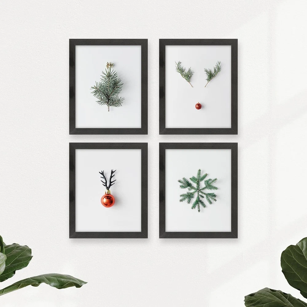 *Specifications* Color: Green, Red, Grey, White Size: 8"w x 10"l Number of Pieces: 4 Piece Material: Paper, Wood Frames Framed: Yes Home Decor Style: Modern, Scandinavian, Minimalist Recommended Room: Bedroom, Bathroom, Living room Theme: Christmas(christmas tree, deer christmas ornaments, reindeer, snowflake) *More Info* Package: This item will be packaged in a paper box with cushioning foam at the corners to provide additional protection against impact during shipping. All prints are copyrighted. All rights reserved. These minimalist style christmas pictures can add a touch of modern decor to your interiors. UNIQUE & THOUGHTFUL GIFT - Original gifts show you cared enough; Affordable gift for a Christmas season! GIVE HOME WARMTH - Decorate living room, bedroom, bathroom to make it a livable enviroment SOLID WOOD FRAME - The wood frame adds the finishing touch to the holiday posters; Printed on art paper SMALL BUT CUTE SIZE - Lovely and light weight to hang up; Never need large space