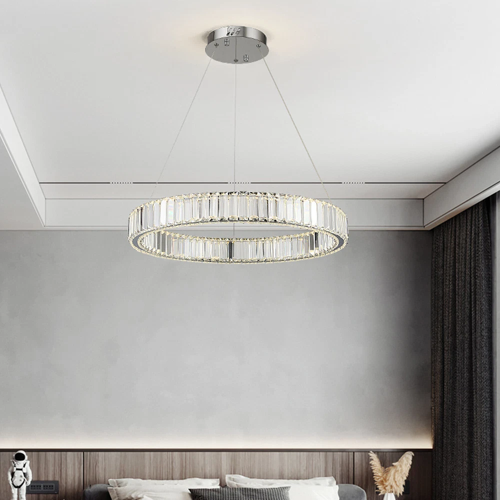 Modern Crystal Chandelier LED Ring Pendant Light Hanging Lamp Fixture Dimmable