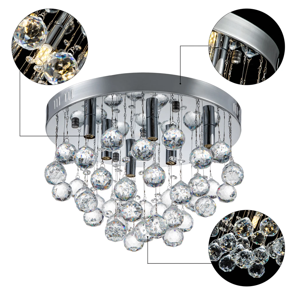 Modern Crystal Raindrop Ceiling Light Chandelier LED Flush Mount Pendant Fixture