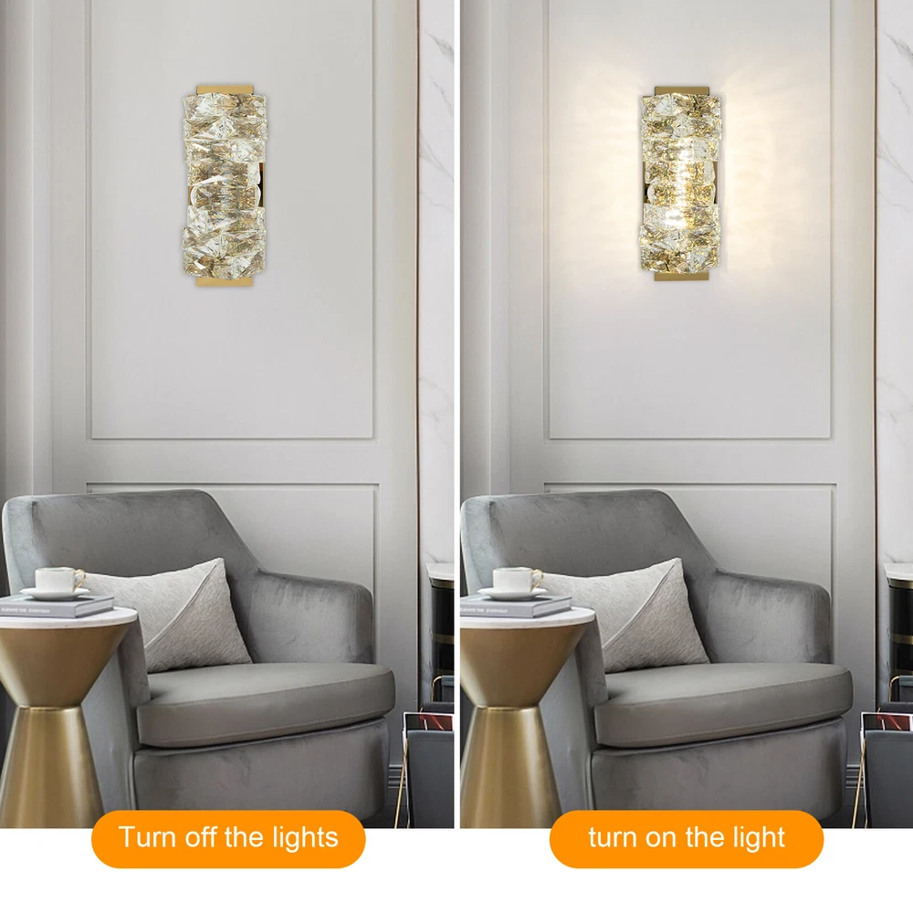 Absolutely in love with this crystal wall sconce! The elegant design adds a touch of modern luxury to any room. The LED lighting is warm and inviting, perfect for creating a cozy atmosphere. High-quality materials ensure durability, and the crystal details catch the light beautifully. It instantly elevates my bedroom and hallway decor—so stylish yet functional! Highly recommend for anyone looking to upgrade their home lighting effortlessly.