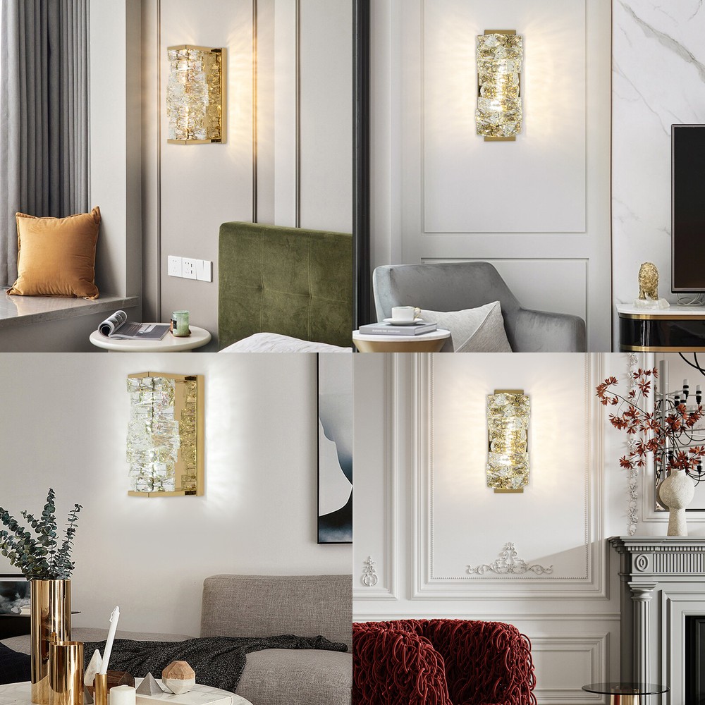 Modern Crystal Wall Sconce Lamp Wall Light Bedroom Living Room Hallway Light Description Description Nowadays, wall lamps are no longer as simple as bare circles. A lamp full of design and an artistic atmosphere is our ideal choice. Its flexible design keeps the walls from monotonicity, and can also enhance the style of the home. Our crystal wall lamp is made of high-quality materials, with a stylish appearance and bright LED light source, bringing you a more comfortable home life. Key Features Build to Last : This product is made of high-quality crystal and stainless steel with a polishing process , which is corrosion resistance , and wear resistance , and can be used for a long time without frequent replacement. Comfortable Bedtime: Turn on this wall lamp at night when you come home from a hard day's work. A bright and soft light can fill your heart with warmth and emotion, making your monotonous life and room more vivid, and enhancing your sense of happiness in life. Excellent Light Source: The environment-friendly and energy-saving LED light with a high color index (90) , variable light colors ( warm, white, neutral ), and color temperature ( 3000-4500-6000K ) can effectively avoid glare and stroboscopic, protect your eyes, restore the most authentic color of objects, and meet your different needs. Eye-catching Appearance: Noble, elegant gold color and highly clear irregular crystals add a touch of sophistication to the fixture. When the light is on, the colorful light reflected from the crystals casts a fascinating glow on the wall, bringing you an extremely beautiful visual enjoyment. High Safety: It provides constant current protection to ensure the long service life of the product. A wide voltage (85-265V) design can effectively ensure safety, so you can use it with confidence. Effortless Cleaning: The smooth surface and simple structure allow you to simply wipe it with a damp cloth. Assembly in a Breeze: The complete installation accessories, a detailed English manual, and a simple structure allow you to install it in a short time. Ideal Gift: Thanks to its exquisite design and great lighting effect, you can give it as a gift to your friends, lovers, and colleagues on Christmas, Thanksgiving, Valentine's Day, family gatherings, or other special occasions. Protective Package: To prevent the product from being damaged during transportation, we packed it with foam to protect your products to the maximum extent possible. Details Smooth Edges: The smooth and burr-free edges enhance the beauty of the product and better care for your skin when installing and cleaning it. Sturdy Base: The thickened base is sturdy and durable to ensure the stability of the lamp. Application Its applicable area is 53.8ft². It is suitable for almost all kinds of places, such as bedrooms, living rooms, kitchens, bedsides, bathrooms, dining rooms, corridors, staircases, studies, lofts, cafes, craft rooms, and bars. Specifications Material: Crystal, Stainless Steel Process: Polishing Color: Gold Style: Modern Shape: Rectangular Assembly Required: Yes Indoor/Outdoor Usage: Indoor Mount Type: Wall Mount Voltage: 85-265V Power: 24W Light Source Type: LED(Included) Light Color: White, Neutral, Warm Color Temperature: 3000-4500-6000K Efficiency: E Luminous Flux: 80LM CRI: 90 Applicable Area: 5m²/53.8ft ² Product Size: 15.5*12*25cm/6.1*4.72*9.8in Package Included 1* Crystal Wall Lamp 1* English Manual All Accessories for Installation Notes Please do not install the lamp in a wet place or use it outdoors. Please do not install the light next to the high-temperature object such as the exhaust pipe to avoid damage. Please cut off the power supply when the lamp is abnormal. Please wear electric insulation gloves (not included) and avoid scratching the surface of the lamp and the electric wire when installing. Please make sure that the power supply has been cut off before installation, and conduct a power test before installation. Please install it by a licensed electrician if necessary. Please use the lamp within the applicable voltage range and clean lamps regularly. Please cut off the power supply when you clean the light. Please wipe with a soft and dry cloth, it is not suitable to clean with cleaning agents and water. Please allow the slight color difference caused by the shooting light and 1-3cm error due to manual measurement, and make sure you do not mind before you order. Payment Delivery details Terms of sales About us Contact us Payment We accept ebay payment 。 Fees such as import duties, taxes are not included in the item price or shipping costs. These charges are the buyer's responsibility. Delivery details Shipping: 2-9 working days to: USA Terms of sales We maintain high standards of excellence and strive for hundred percent customer satisfaction. Feedback is very important to us. We hope that you contact us immediately before you give neutral or negative feedback, so that we can address your concerns. It is impossible to address issues if we do not know about them! About us Your satis faction is our ultimate goal. We work hard to earn your trust and future business. Our certified technicians have tested each item before shipping. The unit comes with 1 year limited warranty on all manufacturing defects. a) If you receive a defective item, you may return it or ask for a discount. Please contact us within 14 days after you receive the package. b) What you returned must be intact and in its original packaging as re? u. Customer is responsible for shipping costs of the returned item. c) We will cover the cost of shipping back t with the shipping rate indicated in the registration page. We will send you a new unit or refund the full payment you paid. Thank you. Contact us Business Hour Business Hour: Monday To Friday: 8:30 AM to 5:00 PM (Beijing China time) Due to time zones, our reply to your questions may not be immediately. But within above working time, we will reply your email within 24 hours. If it'
