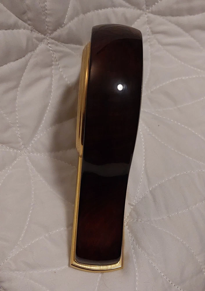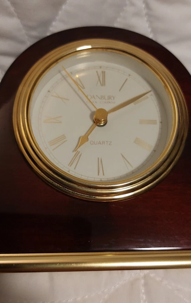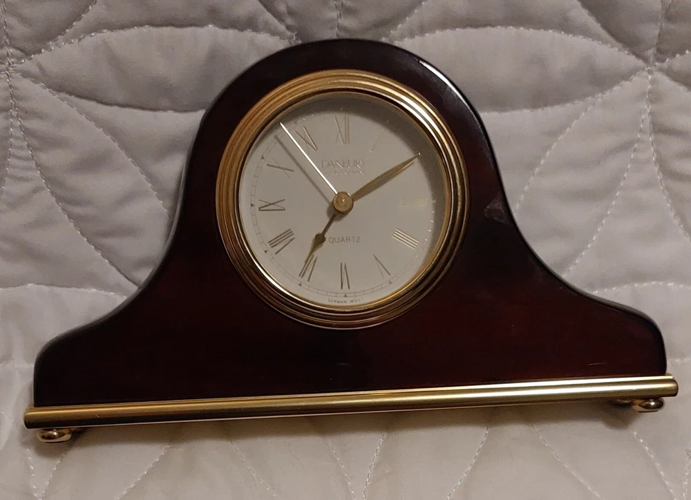 This is a modern desk clock by DANBURY Clock Company, featuring a wood case and German movement. It is designed in a mini mantle style, showcasing a sleek and contemporary look.