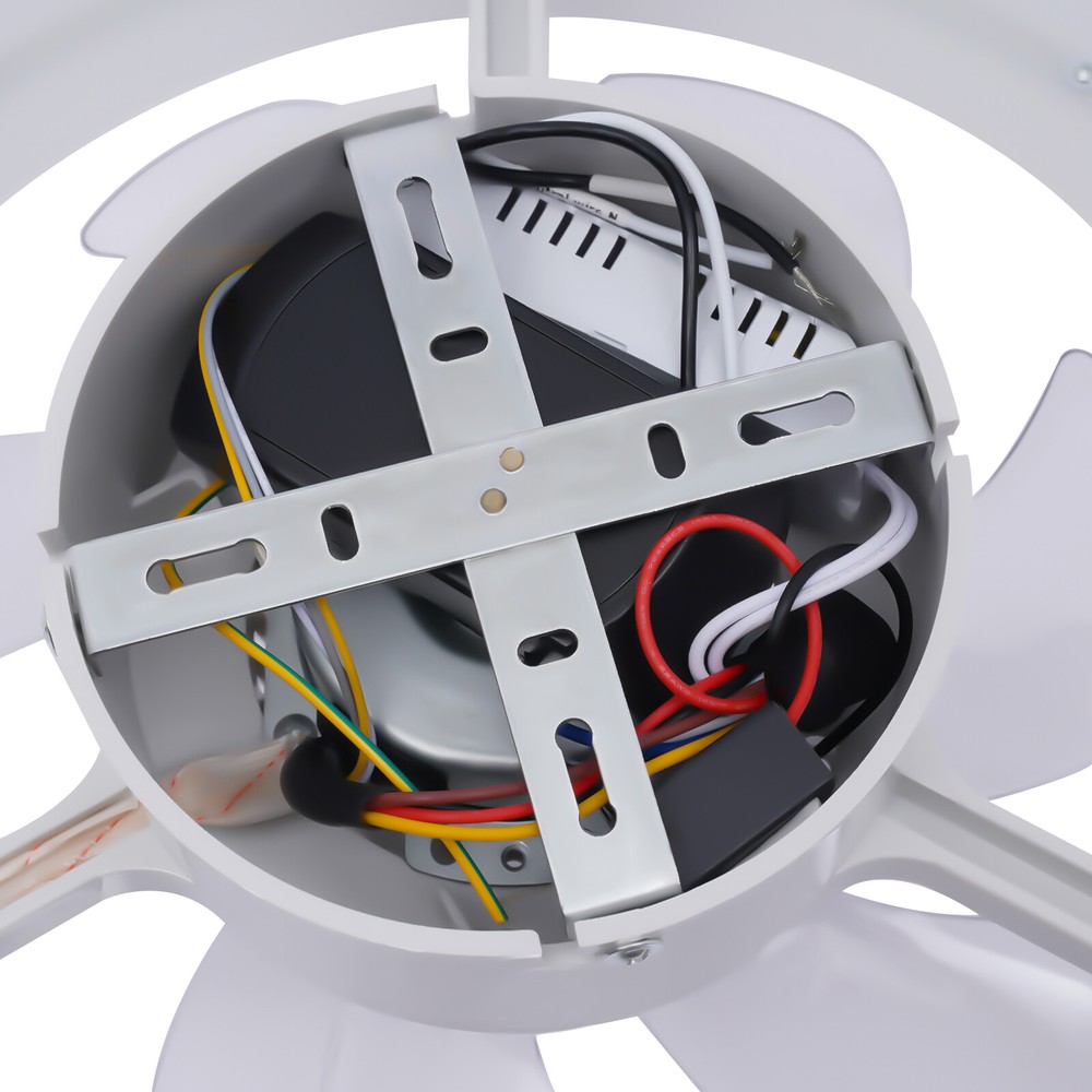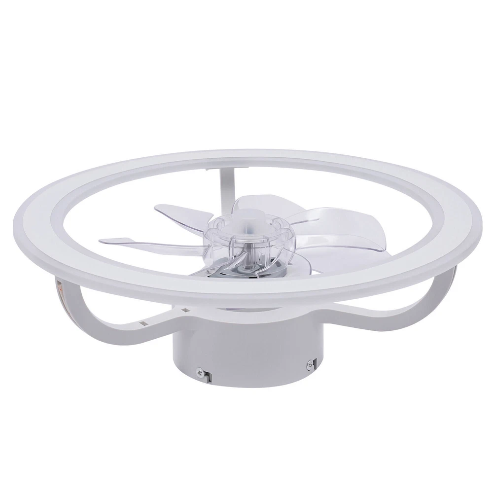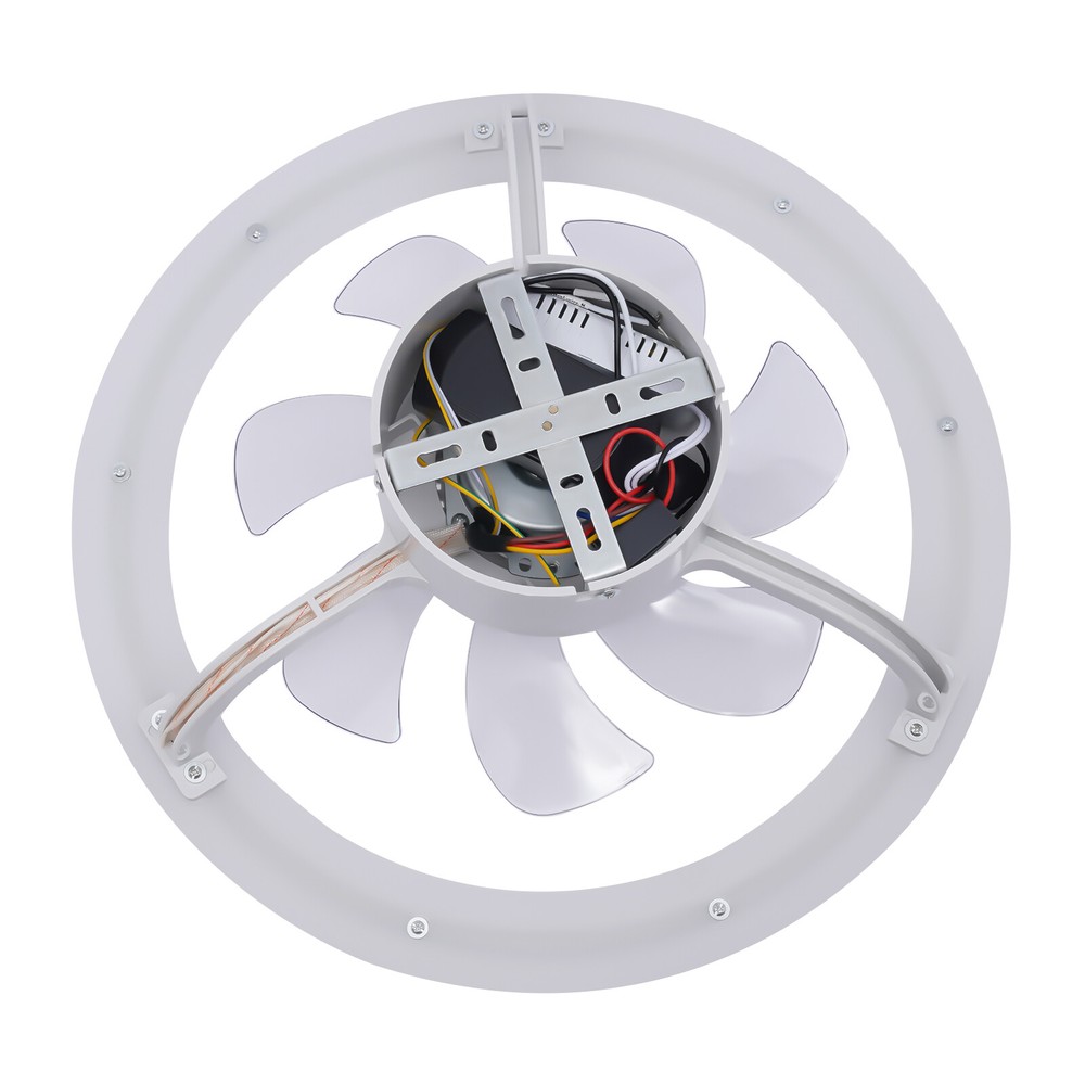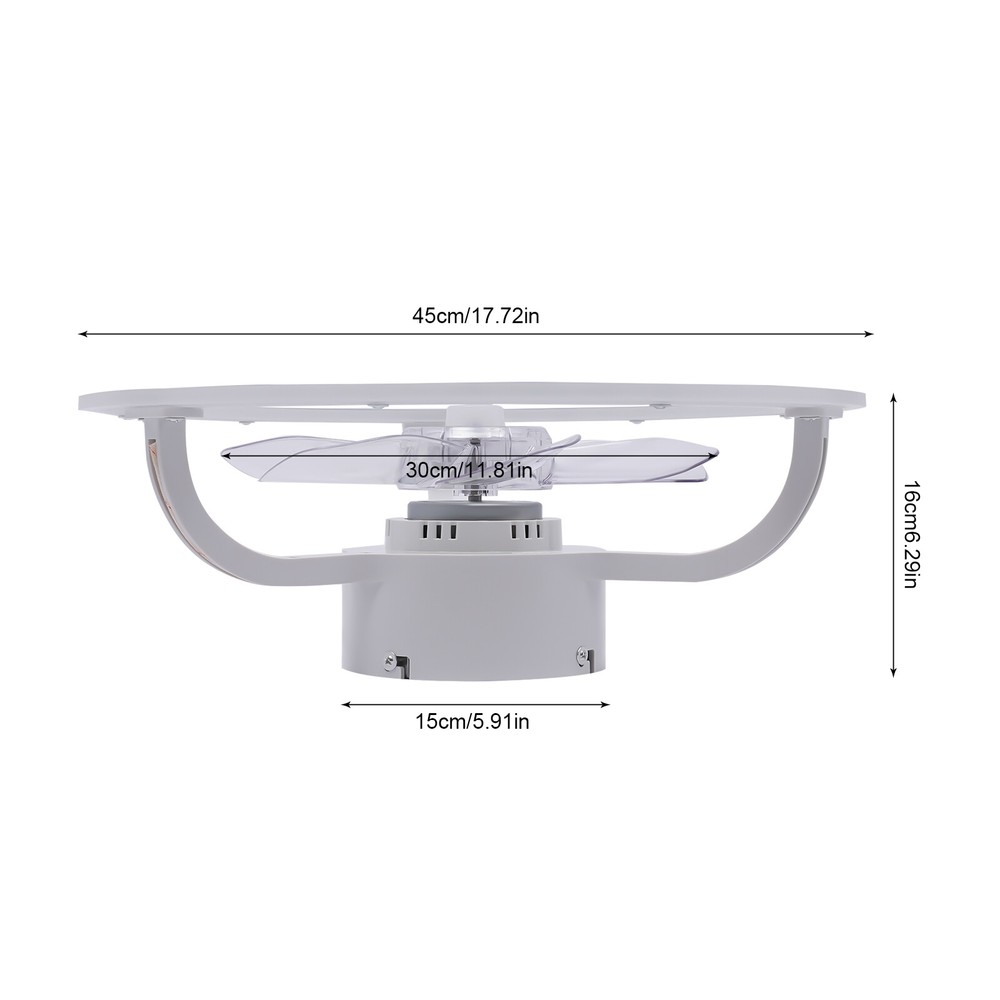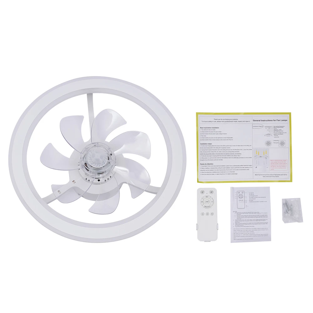Description This ceiling fan light allows you to feel the bright light and enjoy the coolness at the same time. It has six gears of wind speeds with a timing function to meet your daily usage needs, and you can also reverse the direction of the fan in winter. It can be integrated with different decoration styles and is ideal to create an excellent life and sleep environment to accommodate you in all seasons. Key Features Build to Last: This product consists of ABS blades and an iron lamp body and adopts an injection molding, making it attractive, anti-rust, corrosion-resistant, and sturdy. Wide Application: The size of 17.72"D*6.29" H makes it suitable for various ceiling heights while ensuring better lighting and air circulation effects. And it supports a wide voltage(110-165V), whi Modern Halo Ceiling Fan Light Dimmable Invisible Chandelier Fan APP Control Deco Description This ceiling fan light allows you to feel the bright light and enjoy the coolness at the same time. It has six gears of wind speeds with a timing function to meet your daily usage needs, and you can also reverse the direction of the fan in winter. It can be integrated with different decoration styles and is ideal to create an excellent life and sleep environment to accommodate you in all seasons. Key Features Build to Last: This product consists of ABS blades and an iron lamp body and adopts an injection molding, making it attractive, anti-rust, corrosion-resistant, and sturdy. Wide Application: The size of 17.72"D*6.29" H makes it suitable for various ceiling heights while ensuring better lighting and air circulation effects. And it supports a wide voltage(110-165V), which can adapt to different voltage environments. Multiple Functions: Integrating lighting and fans, this product illuminates the space while balancing room temperature. You can also reverse the direction of the fan in winter, blowing hot air from the top into the room and increasing the indoor temperature. Set up at Will: You can customize the ambiance of any room to suit your needs by infinitely adjusting the appropriate brightness and can experience a range of refreshing breezes and cooling sensations with its 6-speed wind speed function. In addition, the 2H timer function and night mode provide a comfortable and peaceful environment for you to sleep without worrying about catching a cold and wasting electricity. Remote Control: Utilizing a remote control, you can easily adjust the light colors, wind speeds, and other functions while lying in bed, eliminating the need to physically manipulate switches and bringing more convenience to your life. Excellent Lighting: Romantic warm light, comfortable neutral light, and bright white light make it easy for you to create different atmospheres with 3500-6000K color temperatures. Moreover, the energy-saving LED light source with 2400-3600lm has high luminous efficiency and long service life, providing you with the desired lighting effect while protecting your eyes with its soft light. Modern Minimalist: The circular design with white color and clear fan blades make this product simple and elegant, complementing various styles of homes. This is a great decoration for your room. Easy Clean-Up : It has a simple structure and smooth surface. When dust accumulates on the surface, you simply wipe it clean with a towel. Ideal Gift: Thanks to its exquisite design and generous appearance, you can choose this ceiling fan light as a gift for housewarming to your friends. Protective Packaging: Anti-collision foam can effectively avoid losses caused by normal vibration and collision during transportation, ensuring the integrity of the products you can receive to a certain extent. Details Sturdy Base: The 5.91" thickened and enlarged base with pre-drilled holes on the base brackets not only ensures stronger load-bearing capacity and stability but also makes it convenient for you to install this product. Heat Dissipation Holes: They can accelerate heat dissipation, thus preventing internal parts of the product from overheating during operation. Application It is ideal for a space of about 86.11-161.46 ft², including living rooms, dining rooms, foyers, cottages, bedrooms, basements, study rooms, farmhouses, kitchens, hallways, cafes, restaurants, bars, and patios. Installation Steps 1. Fix the cross-hanging plate with screws to the junction box (or mark and make holes in the ceiling, and fix the cross-hanging plate to the ceiling with 4 expansion screws). 2. Connect the fanlight to the power cord on the ceiling with wire nuts, firewire (black wire, L)-zero wire (white wire, N)-and ground wire (yellow wire, G), and make a one-to-one corresponding connection. 3. Fix the fan lamp base to the hanging plate that was previously installed on the ceiling in step 1. 4. When powered on, use the remote control (2*AAA batteries need to be additionally purchased) to check whether the light or fan of the device works normally. Specification Color: White Style: Modern Shape: Round Efficiency: E Material: Iron and ABS Assembly Required: Yes Process: Injection Molding Installation Method: Ceiling Mounted Control Method: Remote Control, Wall Control Battery Model: 2 * AAA Batteries(Not Included) Light Color: White Light, Warm Light, Neutral Light Color Temperature: 3500K, 4500K, 6000K Luminous Flux: 2400-3600lm Number of Items: 1 Number of Blades: 5 Wind Speed Level: 6 Timing Duration: 2 h Voltage: 110-265V Power: 24-36W Power Source: LED Remote Control Distance: 5-8m/16.4-26.25ft Lighting Range: 8-15 ㎡/86.11-161.46 ft ² Base Diameter: 15cm/5.91in Fan Blade Diameter: 30cm/11.81in Product Size(D*H): 45*16cm/17.72*6.29in Package Included 1*Ceiling Fan Light 1*Remote Control 1*English Manual 1*English Instruction for Remote Control All Accessories for Installation Notes Please note that a remote control must be directly facing the light, otherwise, the light cannot be connected to the remote control. A brand-new battery shall be inserted. P