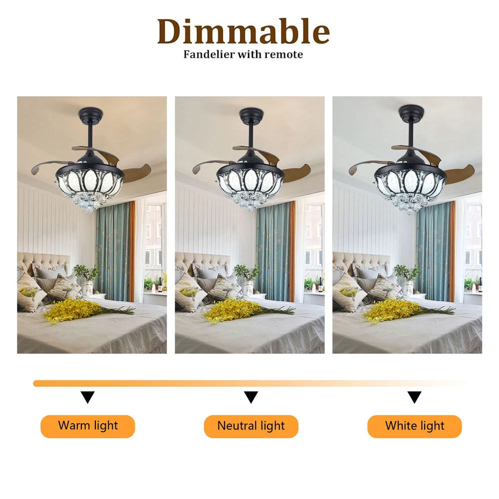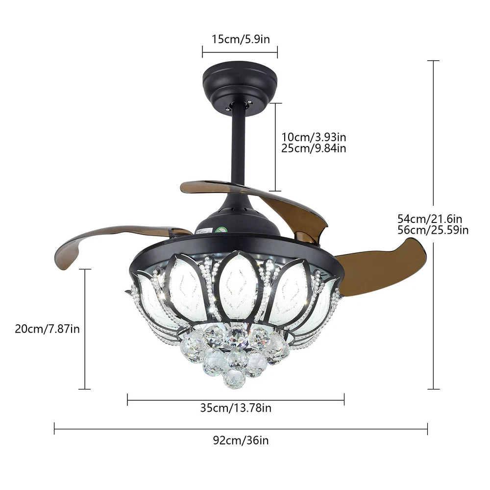 This ceiling fan light is a game-changer! The sleek, invisible design blends beautifully with any decor, while the dimmable LED and remote control make it super convenient. Love how it combines style and function—perfect for keeping cool and setting the mood. Easy to assemble and looks like a high-end chandelier. Highly recommend!
