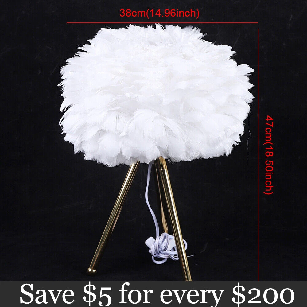 Modern E27 LED Feather Desk Lamp Night Light Luxury Bedroom Bedside Table Lamp Product Parameters: Swan Hair Lampshade: Diameter 38cm (14.96inch) Overall Height: 47cm (18.50inch) Size: 47*38*38cm (18.50*14.96*14.96inch) Product Net Weight: 1kg Product Specifications: Golden Frame and a White Swan Material: High-quality Iron + Swan Hair Light Source: E27 LED 5W (Including Ordinary Bulb, Not Dimmable) Process: One-piece Die-casting, Baking Varnish Switch: Push Button Switch Suggested Area: 5~15m Applicable Space: Living Room, Bedroom, Study Room, Dining Room, Bedside Lamp, Etc. Product Features: 1. Swan Hair Lampshade Hand-made, with Soft Light Effect, Strong and Firm Feather Weaving, Will Not Fall off After Long Time Use 2. Hardware Wrought Iron Lamp Body The Lamp Body Is Treated with Electroplating Process, Full of Texture 3. Simple Feather Table Lamp, Sturdy and Durable, Rendering the Atmosphere Full of Taste Packing List: Feather Bedside Table Lamp (Including Ordinary Bulb, Not Dimmable) Payment Delivery details Terms of sales About us Contact us Payment We accept ebay payment 。 Fees such as import duties, taxes are not included in the item price or shipping costs. These charges are the buyer's responsibility. Delivery details Shipping: 2-9 working days to: USA Terms of sales We maintain high standards of excellence and strive for hundred percent customer satisfaction. Feedback is very important to us. We hope that you contact us immediately before you give neutral or negative feedback, so that we can address your concerns. It is impossible to address issues if we do not know about them! About us Your satis faction is our ultimate goal. We work hard to earn your trust and future business. Our certified technicians have tested each item before shipping. The unit comes with 1 year limited warranty on all manufacturing defects. a) If you receive a defective item, you may return it or ask for a discount. Please contact us within 14 days after you receive the package. b) What you returned must be intact and in its original packaging as re? u. Customer is responsible for shipping costs of the returned item. c) We will cover the cost of shipping back t with the shipping rate indicated in the registration page. We will send you a new unit or refund the full payment you paid. Thank you. Contact us Business Hour Business Hour: Monday To Friday: 8:30 AM to 5:00 PM (Beijing China time) Due to time zones, our reply to your questions may not be immediately. But within above working time, we will reply your email within 24 hours. If it's non-workdays, please kindly be patient and wait till Monday. Please contact us with ebay message. Please feel free to contact us if you have any questions. Monday To Friday: 8:30 AM to 5:00 PM (Beijing China time) Due to time zones, our reply to your questions may not be immediately. But within above working time, we will reply your email within 24 hours. If it's non-workdays, please kindly be patient and wait till Monday. Please contact us with ebay message. Please feel free to contact us if you have any questions. Brand Unbranded Type Feather Bedside Table Lamp Style Art Deco Room Bedroom, Dining Room, Home Office/Study Sensor Type Light Material High-quality Iron + Swan Hair Color White Cord Color White Number of Settings 1 Lighting Technology LED Finish One-piece Die-casting, Baking Varnish Power Source Corded Shade Shape Cotton Balls Theme Art Character Family N/A Features Sturdy and Durable Pattern N/A Character N/A Department Adults Energy Star 4 Stars Control Style Push Button Switch MPN Does not apply EC Range A+++ - D UPC Does not apply