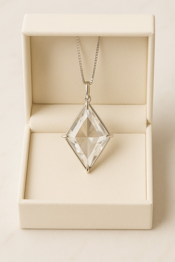 Modern & Powerful: Ascension Star Cut Clear Quartz Crystal Necklace Elevate your energy with our Ascension Star™ Clear Quartz Necklace, a stunning fusion of beauty and purpose. Clear Quartz, known as the Master Healer, brings balance, clarity, and revitalizing energy, helping you connect with your inner divine light. 🔹 Crystal Properties: Amplifies energy and intention Enhances mental clarity and focus Promotes emotional balance and healing Supports spiritual growth and higher consciousness 🔹 Exquisite Craftsmanship: Stone: Genuine Clear Quartz Cut: Ascension Star™—inspired by Marcel Vogel’s faceted designs, enhancing the crystal’s healing and evolutionary properties Size: 16x26mm (approx. 12 carats) This pendant is designed to lift the heart through compassion and guide you toward ascension, aligning your energy with wisdom, love, and purpose. As you wear it, feel the harmony of mind, body, and spirit unfold. ✨ Includes an 18” gold and silver chain in a beautiful box with information about the crystal’s meaning and benefits. Wear the power of Clear Quartz—embrace balance, clarity, and transformation!