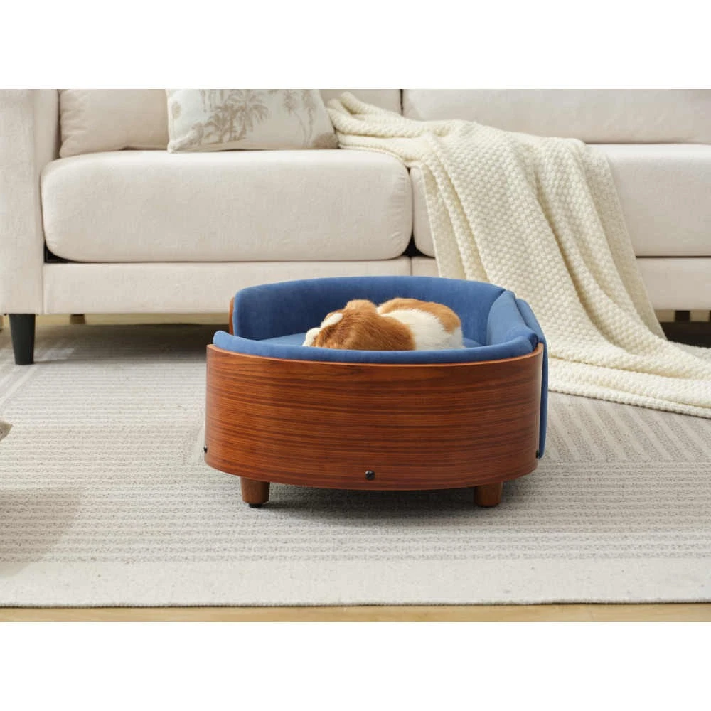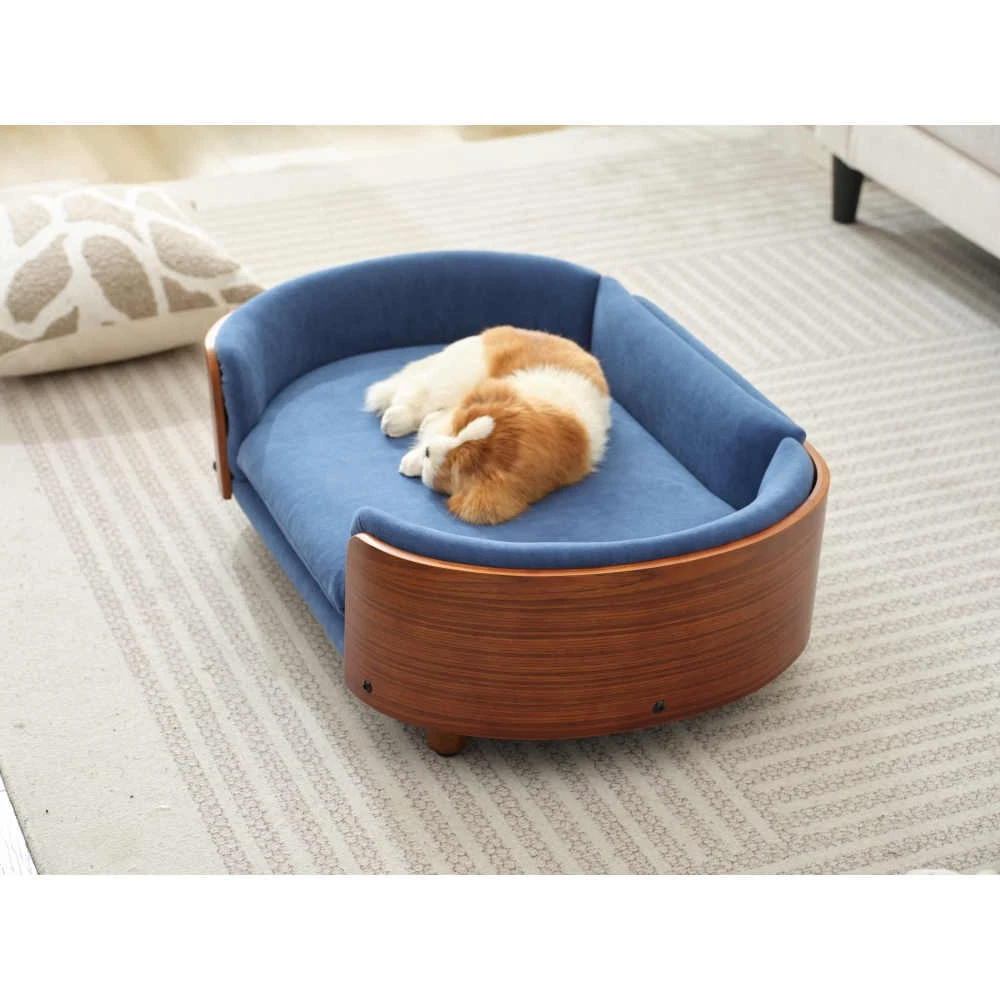 PREMIUM MATERIAL: This dog sofa bed is made from solid natural walnut wood surface and solid natural walnut wood legs. Built to withstand daily use, providing a long-lasting sleeping space for your furry friends NON-SLIP BOTTOM: This dog bed with wood frame equipped with a non-slip base to keep the bed in place, ensuring safety and stability for your pet; crafted from sustainanle materials, making it an environmentally conscious choice for pet owners ORTHOPEDIC SUPPORT: This dog bed couch is ideal for older pets or those with joint issues, offering extra support for a restful sleep STYLISH DESIGN: Modern and elegant design of this small pet bed that complements your home decor while proving a cozy spot for your pet EASY TO CLEAN: Features a removable and machine-washable cover, making maintenance simple and hassle-free FEATURES 1.The bed frame's contemporary Modern-century complements all home interior styles; featuring clean lines and a wood finish, the bed frame is made to look good in any room of the house 2.Removable/washable cushion cover 3.CAT & DOG BED: A must have accent for your home, our Cat & Dog Sofa Bed is a charming piece of Luxury Pet Furniture and a special place for your pet to rest and relax 4.Created with premium soft Stain Resistant Fabric, our Dog Beds for Small Dogs and Medium Size Dogs are perfectly completed with carved wood legs to offer a timeless style 5.EASY ASSAMBLE: The bed frame comes with pre-drilled partitions that make assembly a breeze; no special tools needed,Only legs need assamble