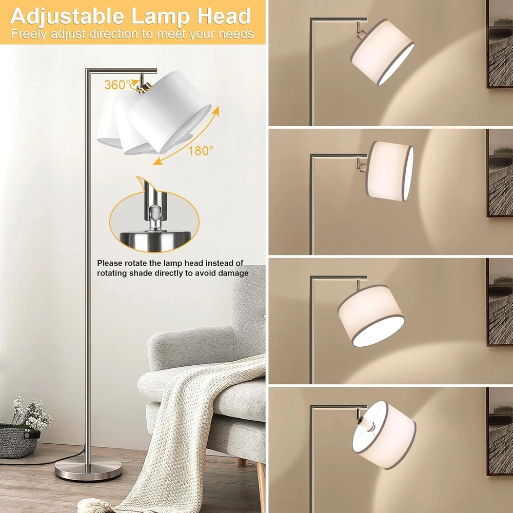 Modern Floor Lamp for Bedroom, Dimmable Silver Floor Lamps for Living Room with