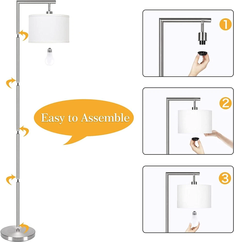 Store New Arrivals Add to Favorite View Feedback Contact Modern Floor Lamp for Bedroom, Dimmable Silver Floor Lamps for Living Room with Adjustable Shade, Tall Standing Lamp Nickel Finish Reading Light for Office Dorm Nursery, 9W LED Bulb Included Description Item model number 13046 Light Source Type LED Style Modern, Minimalist, Classic, Antique, Art Decor Number of Items 1 Power Source Corded Electric Number of Light Sources 1 Country of Origin China Batteries Included? No Lighting Method Adjustable Mounting Type Pole Mount Maximum Compatible Wattage 100 Watts Number of Pieces 1 Room Type Office, Living Room, Bedroom, Study Room, Dining Room Lamp Type Floor Lamp Bulb Shape Size B10 Efficiency High Efficiency Product Dimensions 11"D x 12"W x 67"H Material Metal Installation Type Freestanding Finish Type Brushed Specific Uses For Product Indoor use only Is Waterproof False Indoor/Outdoor Usage Indoor Brightness 1200 Lumen Control Method Touch Water Resistance Level Waterproof Batteries Required? No Item Weight 11 Pounds Connectivity Technology USB Connectivity Protocol Homeplug Special Features Pedal Dimmer Switch, 0-100% dimmable, LED bulb included Special Feature Pedal Dimmer Switch, 0-100% dimmable, LED bulb included Shade Height 35 Inches Part Number 13046 Shade Color White Color Temperature 3000 Kelvin Color Silver Wattage 9 watts Is Cordless? No Base Material Metal Bulb Base E26 Medium Shape Curved Voltage 120 Volts (AC) Recommended Uses For Product Indoor use only Shade Material Silk Finish types Brushed Included Components Bulb included, lamp base, lamp pole, lamp shade Base Diameter 11 Inches Switch Type Dimmer [Fully Dimmable & Pedal Dimmer Switch] -- Our LED floor lamp can be customized brightness gradually from 0%-100% according to your needs, gives you focused lighting for painting, reading or working. A switch on the cord allows you to easily control the floor lamp, sparing your hands to do something else and saving you the trouble of bending down to turn off the light. [Flexible Hanging Lampshade] -- This modern floor lamp comes with a 360° adjustable head, which can be rotated to any angles as you desired, effectively providing a wide range of illumination to your space. Perfect for any corner like near desk, sofa, side table,etc. Note: Please rotate the lamp head instead of rotating shade directly to avoid damage. [Modern Floor Lamp for Any Decor] -- Adopted with a slub imitation silk cloth lampshade and metal silver finish, this simply and elegant design makes the reading stand light fit easily in majority of interior styles no matter modern, traditional or minimalist. It is an excellent choice to add a eye-catching look for your bedroom, living room, or study room. [Soft White Bulb for Romantic Space] -- The package contains a 9W 3000K led bulb, you could easily install the dimmable floor light without finding the right size bulb to match it. The bulb brightness is equivalent to a 80W incandescent bulb, which not only saves up to 90% energy, but also offers a flicker-free and stable light, protecting your family’s eyesight. [Sturdy Metal Base & Easy to Assemble] -- Made of well-weighted metal pole and base, this montage tall floor lamp is stable enough to hold in anywhere and safe to kids and pets not being wobbled by accident. No tools required, just take a few minutes to following the instructions and video on the product page, you can enjoy the tall pole lamp immediately. Product Description 1 0-100% Stepless Dimmable 2 360°+180° Rotatable Shade 3 Weighted Stable Base 4 LED Bulb Included 5 Easy Installation Eye-protection Lampshade Softened by a classic fabric lampshade that composed of textured material, this lamp will produce comfortable glow and relieve the strain of eyes. Pedal Dimming Switch Apply with dimmable pedal switchon the power cord, the floor lamp is convenient for you to control the brightness from 0 to 100% with your foot. Stable Metal Base This modern standing lamp is composed of well-weighted metal base and pole, which has an excellent stability to prevent tipping over on daily use. Excellent Gift Choice With classic outlook, the floor lamp with led bulb can brighten up a room and create a cozy ambience. Decent choice as gift for your family or friend. Does this floor lamp come with a light bulb? Yes, a 9W 3000K LED bulb is included, saving your time in finding the right size bulb. What kind of bulbs can I use if I want to change the included one? Incandescent light bulbs less than 100W are greatly recommended. Not all Led bulbs are fully compatible with the dimmer system of the lamp, so it may cause to flicker or lose dimming function with other Led bulbs. Is the lamp shade adjustable? Yes, the lampshade is 360°horizontally and 180°vertically adjustable. Please try to rotate the metal lamp head connected to the pole instead of the lampshade to avoid failure of rotation. How tall is this lamp? The height of this lamp is 67 inch. Can a different lamp shade be used with this lamp? Yes, the shade can be easily replaced following installation instructions. The size of original lampshade is 12"D x 8"H. And maximum diameter of the lampshade should be under 19.69”, otherwise it might not fit. Silver Floor Lamp Boncoo Floor Lamp Series 67 inch Height 76 inch White Silk Cloth Shade Type Cage-Shaped Metal Silver Color Oil-Rubbed Bronze 0-100%Fully Dimmable Bulb Included Pedal Dimmer Switch Control Type Pedal ON/OFF Switch 360°+180° Adjustable Angle 360° Horizontally 67 inch Height 67 inch White Silk Cloth Shade Type White Silk Cloth Silver Color Brown 0-100%Fully Dimmable Bulb Included Pedal Dimmer Switch Control Type Pedal Dimmer Switch 360°+180° Adjustable Angle 360°+180° 67 inch Height 66 inch White Silk Cloth Shade Type Beige Silk Cloth Silver Color Gold 0-100%Fully Dimmable Bulb Included Pedal Dimmer Switch Control Type Pedal Dimmer Switch 360°+180° Adjustable Angle 360°+180° 67 inch Height 67 inch White Silk Cloth Shade Type White S