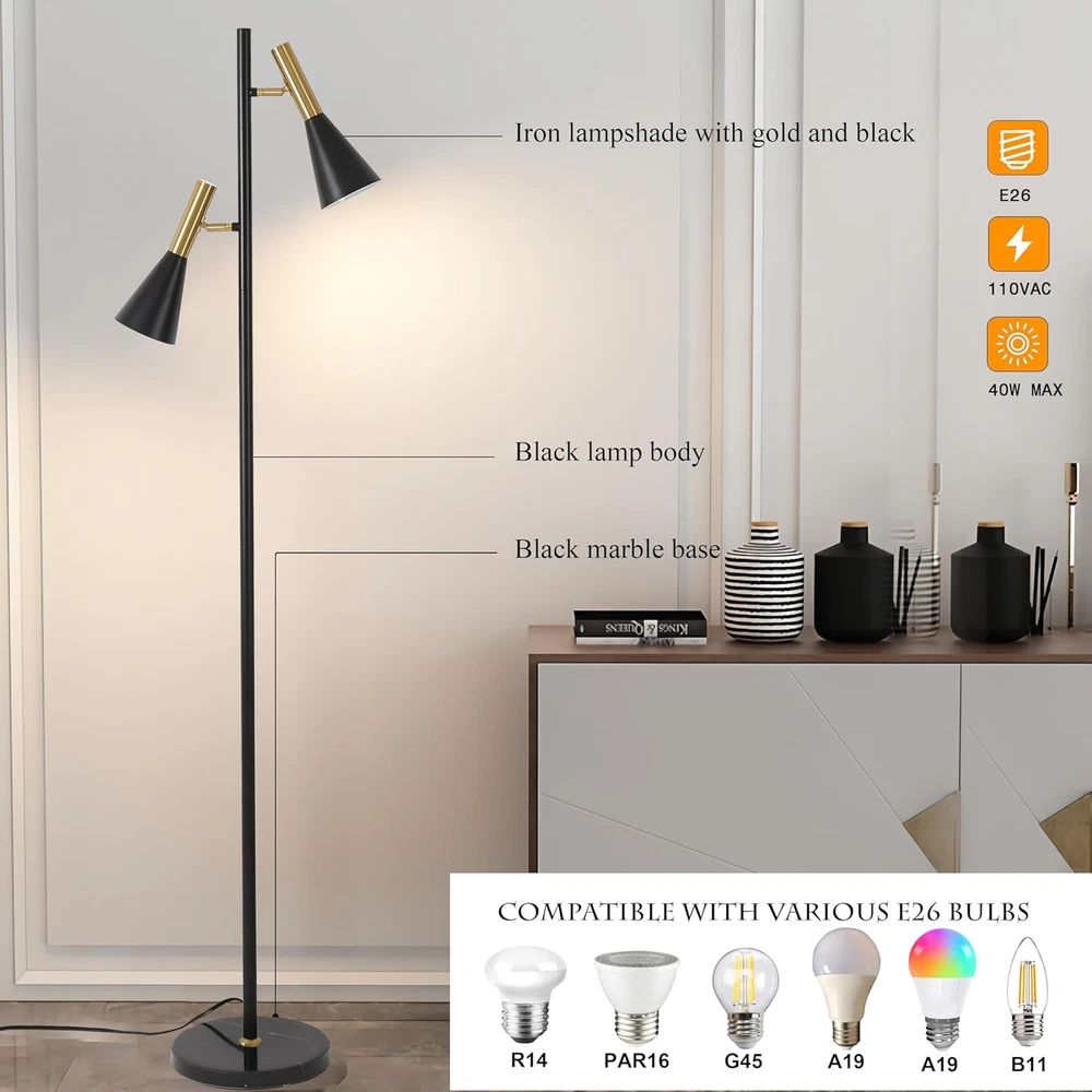 Store New Arrivals Add to Favorite View Feedback Contact Modern Floor Lamp with 2 Adjustable Head Tall Pole Uplight for Living Room, Bedroom, Office,Gold and Black Corner Light for Reading (Black and Gold) Description Item model number F-220212-01 Light Source Type LED Style Modern Number of Items 1 Power Source AC Number of Light Sources 2 Country of Origin China Batteries Included? No Lighting Method Adjustable Maximum Compatible Wattage 40 Watts Number of Pieces 1 Room Type Living Room, Bedroom, Dining Room, Study and Office. Lamp Type Floor Lamp Bulb Shape Size A19 Product Dimensions 9.8"D x 10.6"W x 60.6"H Material Metal Installation Type Freestanding Controller Type Foot Control Finish Type Coated Specific Uses For Product Indoor use only Indoor/Outdoor Usage Indoor Bulb Base E26 Control Method Touch Water Resistance Level Not Water Resistant Batteries Required? No Item Weight 12 Pounds Connectivity Technology USB Connectivity Protocol Homeplug Special Features Corded Special Feature Corded Part Number F-220212-01 Shade Color Black and Gold Mounting Type Pole Mount Color Black and Gold Wattage 4 watts Is Cordless? No Base Material Marble Is Waterproof False Shape Round Voltage 110 Volts (AC) Recommended Uses For Product Reading Shade Material Metal Finish types Coated Included Components Shade included Brand Asmymh Switch Type Push Button 【Perfect Design】This modern floor lamp has 2 metal lamp heads of the tall floor lamp for bedroom can be rotated by 350°and adjusted by 90° up and down. The metal lampshade matched with gold and black is matched with black lamp pole and black marble, which makes it more frequent and beautiful.The floor lamp features with 2 Independent lampshade. you can place the light next to your couch, point the metal heads to each seat on the sectional and have many people reading at once. 【Modern Style】This stylish metal floor lamp is designed with smooth lines, A perfect addition to your home with any décor, could match modern, urban, classic, traditional decoration. It takes up little space, perfect for your bedroom, living room, study, hallway, dining areas and office to meet your needs. 【LED Bulbs Included】The floor lamp for bedroom, livingroom comes with two E26 LED Dimming bulbs, saving you time and cost in finding compatible bulbs.The led floor lamp can save up to 90% on your electric bill in comparison to halogen or incandescent bulbs. You can also choose different wattage E26 Dimming bulbs for the living room lamps according to your need (Max.40W).The tree floor lamp Dimensions:63" high overall, Base is 9.8" wide at the bottom Each shade is 9.8 " high x 3.9 " wide; 【Switch and base】The standing tall pole lamp is controlled by a footswitch, easy to turn on/off, and also gives the modern floor lamp a clean outlook; The base is designed with a weighted marble so it will not easily tip,because base is made by original marble,the color of the marble may have some difference due to different lots. 【Easy to Assemble】With detailed assembly instruction, it is easy to set up your floor lamp within several minutes. The lampshades are easy to clean, dust on the surface can be easily removed by wiping with a damp cloth. If you have any questions after receiving the product, please the first time, we will strive to provide you with satisfactory service. Product Description Modern Floor Lamp This floor lamp a no nonsense lamp, you can turn the heads in the direction that best suits your light needs. Package Includes 1× Floor Lamps (2-Heads) 1× User Manual Includes 2 LED bulbs. Floor lamps for living room clearance Great for either reading or accent light. This is just what was needed for a small corner reading nook. you can rotate the lights up and down to deliver the light where it is needed, easy to assemble. Style:Modern style floor lamp Switch:Foot Switch Power source: Corded Voltage: 110V Height: 63 inch Marble Base: 9.8inch Material: Marble, Metal Floor lamps for living room This eye-catching metal floor lamp features a unique 2 light design, a black and gold finish .Add a touch of industrial style to your decor - whether it's set behind the couch, sitting next to your bed, stationed in the office, or tucked in your favorite reading nook.Lamp is 63" tall and has the shades measuring 3.9" x9.8" wide.The E26 socket uses 60-watt maximum E26 bulbs( included). Natural marble Marble base is nice and heavy and haven’t had any issues with tilting or wobbling. Metal lampshade The metal lampshade with gold and black is more beautiful, and can be rotated up and down by about 180 and up and down by about 270. American standard footswitch and plug American footswitch and plug are safe and durable. ABOUT US We offer the best prices around on high quality products. Our E-store includes media such as books, movies, music and games while offering electronics, toys, sporting apparel, clothing, tools, general home, garden items and more. SHIPPING We are always working hard to ensure your package arrives as soon as possible. Please understand that some factors like weather, high postal traffic, and the performance of shipping companies are outside of our control. We offer free shipping to the lower 48 states and ship within 2 business days of payment, usually sooner. We do not accept P.O. Boxes. Please provide a physical address. For shipping outside of the continental USA, we only use eBay's Global Shipping Program.The item is shipped to KY and then sent to the rest of the world. International customers are responsible for all duties and taxes. Continue to check out in order to calculate costs for shipping the item to your country. Messages regarding eBay's Global Shipping Program MUST be directed at eBay EXCLUSIVELY. RETURNS We offer a 30-Day Return Policy on items which you are not completely satisfied with. You have the option for a full-refund or an exchange of the item. No returns are available on items shipped outside of the USA. PAYMENT We accep