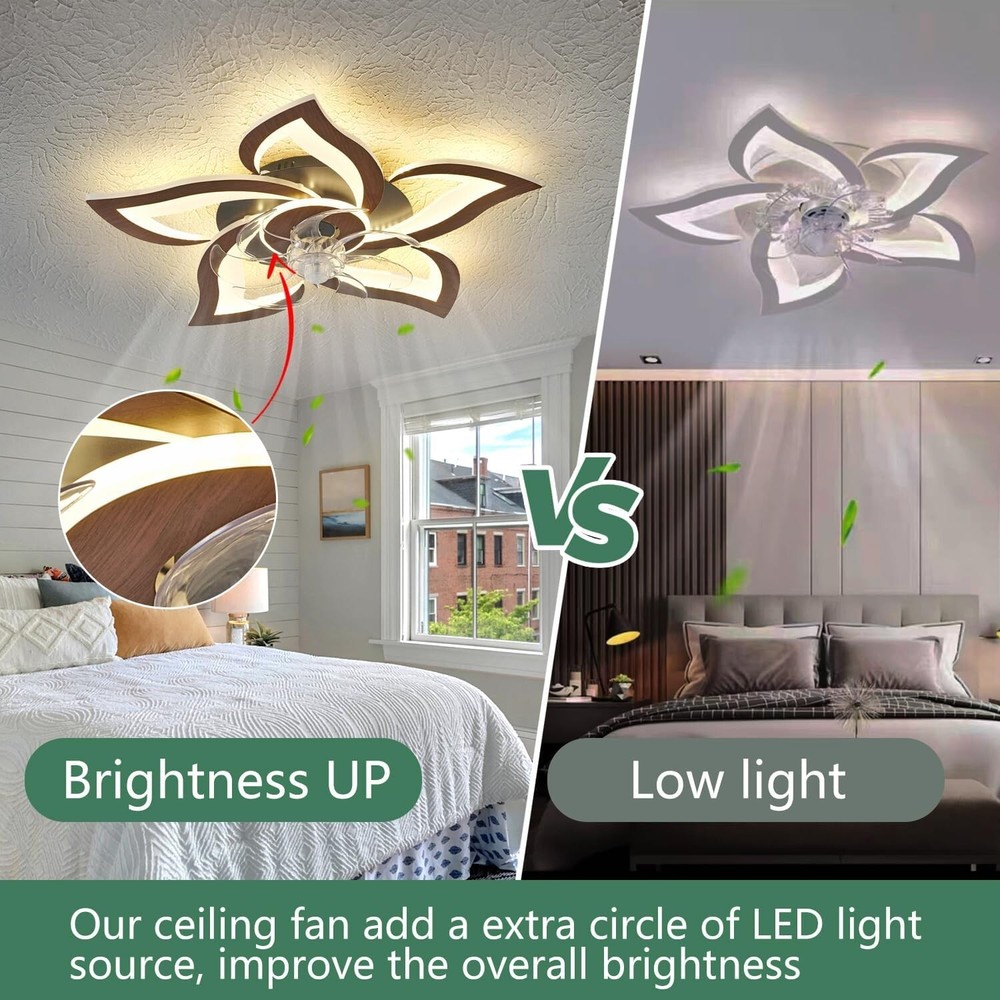 Modern Ceiling Fan with Lights, Flush Mount Ceiling Fan with Remote, Low Profile Ceiling Fan with 3 Light Color 6 Speeds, bladeless ceiling fans for Kitchen Bedroom Malnutcolor 【2-in-1 Ceiling Fan with Light】—The low profile ceiling light and modern geometric ceiling fans can work independently, providing comfortable lighting for your family, while bringing cool wind. 【Reversible Ceiling Fan with Lights】—This geometric ceiling fan light can rotate in both forward and reverse directions, It releases a large amount of cold air in summer mode, and turns on reverse mode in winter to keep the room warm and make you feel more comfortable in any space. Suitable for rooms ranging from 150 to 250 ft², such as living rooms, bedrooms, dining rooms, nurseries, or children's rooms. 【Remote Control & APP】—This flush mount ceiling fan with light has 6 different wind speeds dand a 1/2 hour timing setting, as well as stepless dimming function, all of which can be controlled by the remote control/APP. 【Three Color Dimming Fan with Light】—Modern designed LED slim ceiling fan lights. You do not need to purchase additional bulbs. At the same time, it has 3000K warm light, 4500K medium white, 6000k cold white, and 3-level brightness to meet different lighting needs. 【With Light Memory Function】—This small ceiling fan with light has a light memory function. If the light is turned on for more than 10 seconds each time, the next time the light is turned on, the brightness and color temperature of the light from the last time it was turned off can be maintained. 【Satisfied After-sales Service】— We provide 1 of after-sales service. If you have any after-sales issues with the intelligent ceiling fan with lights, you can send an to consult us 24 hours a day, and we will definitely solve them for you. innovation in fan lamp. Own factory, patents, great components, and expertise in design create energy-efficient and stylish fan lights, suitable your house.