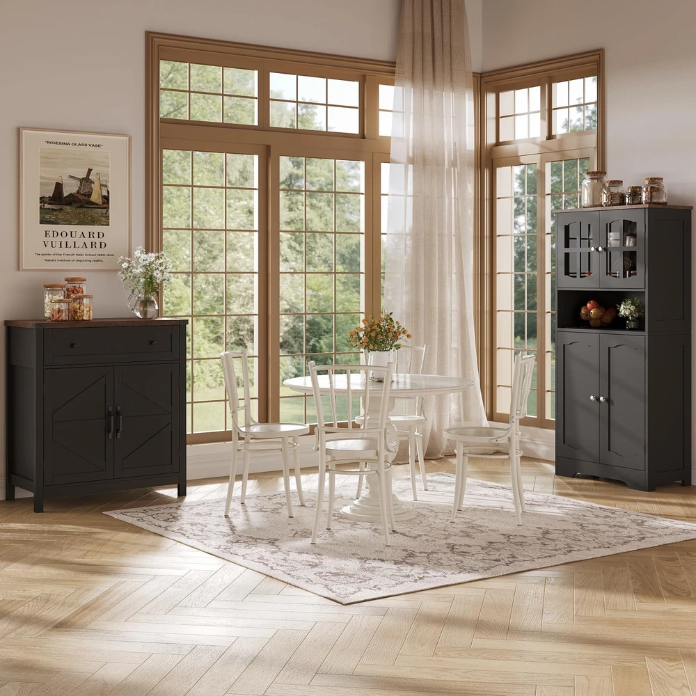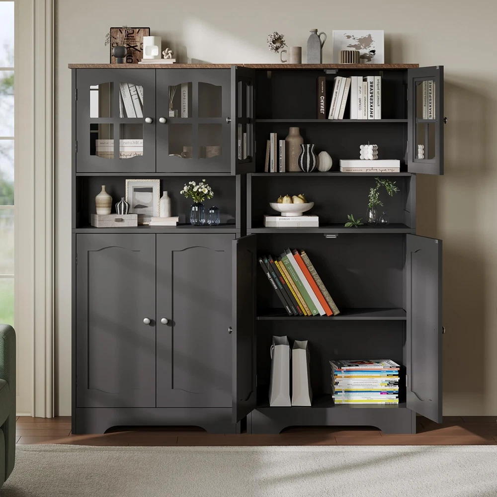 This storage cabinet is a game-changer! The sleek black design with cross-patterned doors adds modern elegance to any room. I love how spacious it is with four compartments—perfect for organizing bathroom essentials, kitchen supplies, or office items. The sturdy build and metal handles make it both stylish and functional. It's surprisingly easy to assemble and looks way more expensive than it is. Fits perfectly in small spaces while offering tons of storage. Highly recommend for anyone needing stylish organization!