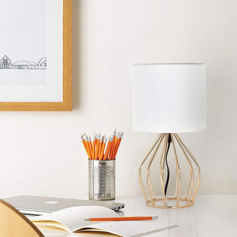 IDEAL LAMP SIZE FOR ANY DESK: Lamp dimension - 13.8 * 7.1 * 4.7 inches, it’s a small gold lamp with compact and generous design, that is ideal to fit any size table, desk, occupy small spaces. It’s perfect in living room, bedroom, girls room, den, college dorm, family, etc. (Please be clear about the size when you browse) High-Quality : The bedside lamp is constructed of high-quality metal frame base and white fabric shade that provide a modern stylish feeling, which is also enduring, durable and aesthetic. The high quality of the bedroom lamp allows it to be long last and stylish, beautiful accessory for one’s room! The gold table lamp is perfect décor for a beautiful modern house that adds a touch of beauty to any room. Also, it will be a best choice for you to give a gift for your friends, lover, family! Simple & Minimalist Design : The nightsantd lamp looks modern but also retro with gold chrome metal basket cage style base and fabric lamp shade, never out of fashion. Its modern black chrome metal basket cage style and warm comfortable light creates the romantic and elegant atmosphere, which is unique decoration wherever you put it in. Safety & Easy To Use : The cord and plug of the small lamp are UL listed which is no any security risks. An ON/OFF button on the power cord is convenient to use. It’s a lighter weight lamp, easy to move to any place where you have lighting needs. Easy to assemble. Very nice minimalist light for the right price! Satisfactory Service : Replacement and Return within 30 days, HAITRAL is always committed to offering premium quality and best service. Any problems, please feel free to directly, we will reply you within 24 hours. Product Description Click "HAITRAL" to enter brand flagship store,SEE MORE table lamps for indoor Detail of the Gold Table Lamp Fabric Lamp Shade The small gold lamp with white fabric shade softens the light, creating a warm, beautiful and comfortable feeling for any room. Bulb Requirement Bulb Not Included. The modern bedside lamp required an E26 regular bulb, Max 60 watt. Switch on Cable An ON-OFF switch on the cord is near the lamp base, just about 7.8 inches (20 cm), easy to use. (Non-touch Switch) Gold Metal Base The hollowed-out diamond-shaped base was combined with spray paint and high temperature furnace fixation technology, which is enduring, durable and aesthetic. HAITRAL Modern Table Lamp A Nice Gifts to Your Friends Its unique and beautiful design will elevate the aesthetics of any room and display an elegant and beautiful warmth atmosphere to a room. It’s a great desk lamp office, reading desk lamp, kids room lamp, girls room lamp, living room lamp, kitchen lamp, essentially anywhere that is needed for added brightness. About the Bulbs we suggest you using LED Bulb: 4W-6W Energy Saving Bulb: 8W-11W Incandescent Bulb: 15W-25W(60W Max) Please Notice Since the white wire is not resistant to dirt, the transparent wire will turn yellow after long-term use, so the wire we designed for this lamp is black color, please understand. Specification Shade Color: White Frame Color: Gold(French gold, not pure gold) Cable Color: Black Bulb Base: E26 (Max 60W) Material: Fabric/Metal Switch Type: Button Switch The Length of Power Cord: about 67 inches Package Included: 1 x Gold Table Lamp (Without Bulb) Size of the Lamp Lamp dimension - 13.8 x 7.1 x 4.7 inches, the gold lamp is designed as small lamp with lampshade to protect your eyes, please pay attention to the size of lamp before buying! (Please be clear about the size when you browse) As a Modern Bedside Lamp The nightstand lamp is made by metal and fabric lamp shade, which will creative a soft and warm light in night. And nice end table lamp will creative warm light without bothering other people.An ON-OFF switch on the cord is near the lamp base, just about 7.8 inches (20 cm), it easy to use it as a bedside lamp. Warm & Soft Lighting For Any Room The simple and elegant style lamp, will be a nice home decor for any room, like kid room, bedroom, living room,reading room and dorm.It is enough small to save your space,and will be a nice choice to be a gift for your family and friends. Kindly Tips: