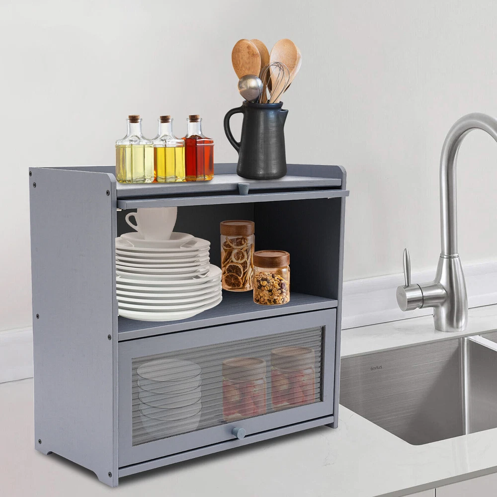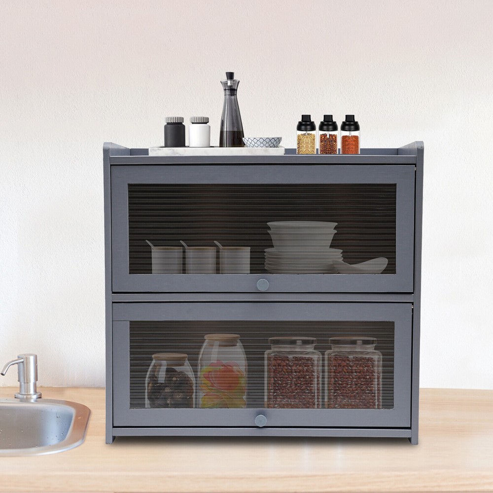 Modern Two-tier Storage Cabinet, Countertop Storage Cabinet, Gray Cabinet New **Description of ryxfebruary** Description Are you still struggling with insufficient storage space? The helper is here. With a size of 20.5 * 9.8 * 19.7 inches, this storage cabinet featuring a bearing capacity of 99.21 lbs provides enough storage space for you. The beautiful appearance makes it the finishing touch of a dull room. Key Features Durable and Sturdy: Premium natural bamboo cabinet body, composite backboard, and acrylic cabinet door, and an exquisite spray painting process make the product environmentally friendly, tough, and solid, not easy to deform, ensuring a long service life. Large Storage Space: Two-tier design(20.5*9.8*7.9inch) classification design and reasonable use of vertical storage space facilitate effective storage of desktop items, making the space more tidy. The open top floor(20.5*9.8inch) is not limited by floor height and can also be used to place items, especially some higher ones. Strong Load-bearing Capacity: Solid structure and high-quality material endow each tier with a strong load-bearing capacity of approximately 33.07 lbs, allowing the product to accommodate many heavier items, such as various seasonings, without worrying about collapse. Fully Sealed: The composite back panel and two cabinet doors keep the product in a fully sealed state without opening, with a good dustproof effect and keeping the stored items clean. Easy to Access : The hovering cabinet door and powerful door stopper make the product very easy to open and close, and the large opening design and the clear door allow you to easily access items. Convenient Movement: The hollow handle at the bottom of the product provides a stable grip point during movement, and its compact size(20.5*9.8*19.7in) is also very convenient for handling. Stable Structure: The four stable cabinet legs and screw-reinforced cabinet body provide strong stability for the product, making it less prone to shaking. Easy to Install: Pre-drilled accessory holes and simple product structure reduce installation difficulty for you. You only need to follow the installation steps step by step to complete the installation. Details Details Elevated Fence: The raised fence at the top makes items less likely to fall and provides a higher level of security. Exquisite Handles : Exquisite handles enhance the aesthetics of the product and make it easier to open cabinet doors. Smooth Edges: The rounded edges are smooth and flat, making it safer to use. Application This product can be stored in many areas such as kitchens, bedrooms, and studies that require storage space for condiments, plates, bowls, aromatherapy, cosmetics, jewelry, books, and other items. Specification Material: Bamboo, Acrylic, Composite Board Color: Gray Surface Treatment: Painting Style: Modern Shape: Rectangle Mount Type: Deck Mounted Assembly Required: Yes Number of Items: 1 Number of Tiers: 2 Bearing Capacity of Each Tier: About 15kg/33.07lbs Each Compartment Size: 52*25*20cm/20.5*9.8*7.9in Product Size: 52*25*50cm/20.5*9.8*19.7in Package Included 1*Storage Cabinet 2* Door Stoppers 1* Allen Key 1* Glove All Accessories of Installation Notes Please note that bamboo and wood products come from natural materials and inevitably exhibit different textures, knots, halos, cracks, and spots, which will not affect their aesthetics and use. Please do not use corrosive cleaning agents or hard objects for cleaning. It is recommended to use a soft cloth for wiping. Please do not expose the product to sunlight for a long time to avoid cracking. Please strictly follow the installation steps for installation, and other items are not included. Please allow the slight color difference caused by the shooting light and the 1-3 cm error due to manual measurement, and make sure you do not mind before ordering. Payment Delivery details Terms of sales About us Contact us Payment We accept ebay payment 。 Fees such as import duties, taxes are not included in the item price or shipping costs. These charges are the buyer's responsibility. Delivery details Shipping: 2-9 working days to: USA Terms of sales We maintain high standards of excellence and strive for hundred percent customer satisfaction. Feedback is very important to us. We hope that you contact us immediately before you give neutral or negative feedback, so that we can address your concerns. It is impossible to address issues if we do not know about them! About us Your satis faction is our ultimate goal. We work hard to earn your trust and future business. Our certified technicians have tested each item before shipping. The unit comes with 1 year limited warranty on all manufacturing defects. a) If you receive a defective item, you may return it or ask for a discount. Please contact us within 14 days after you receive the package. b) What you returned must be intact and in its original packaging as re? u. Customer is responsible for shipping costs of the returned item. c) We will cover the cost of shipping back t with the shipping rate indicated in the registration page. We will send you a new unit or refund the full payment you paid. Thank you. Contact us Business Hour Business Hour: Monday To Friday: 8:30 AM to 5:00 PM (Beijing China time) Due to time zones, our reply to your questions may not be immediately. But within above working time, we will reply your email within 24 hours. If it's non-workdays, please kindly be patient and wait till Monday. Please contact us with ebay message. Please feel free to contact us if you have any questions. Monday To Friday: 8:30 AM to 5:00 PM (Beijing China time) Due to time zones, our reply to your questions may not be immediately. But within above working time, we will reply your email within 24 hours. If it's non-workdays, please kindly be patient and wait till Monday. Please contact us with ebay message. Please feel free to contact us if you have any questions. Feature Compact Design,Unique Appearan