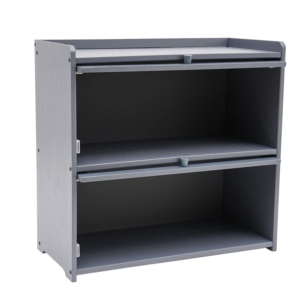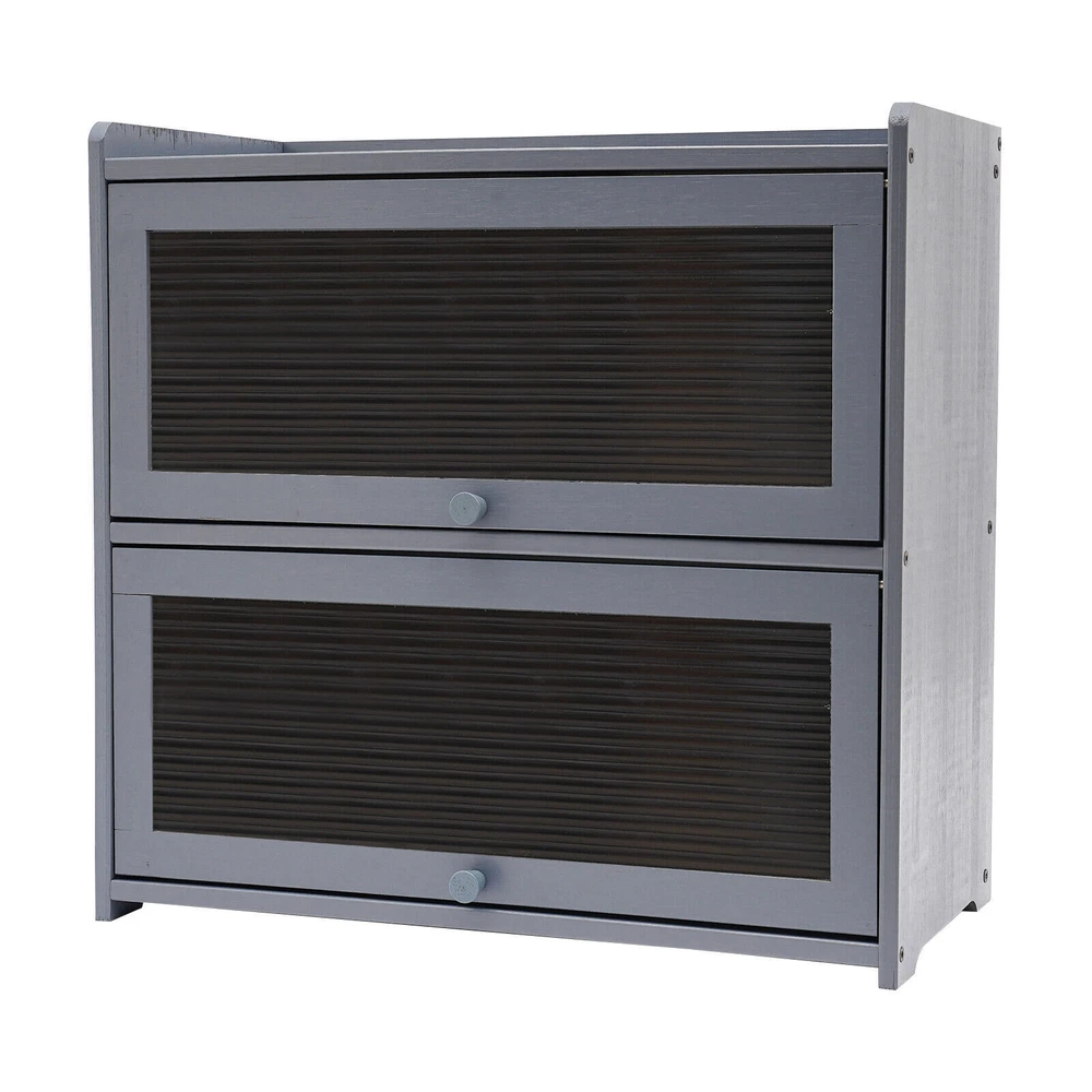 This two-tier storage cabinet is a game-changer for small spaces! The sleek gray design fits perfectly on countertops, adding a modern touch while keeping things organized. Solid bamboo construction feels sturdy, and the generous weight capacity means it can handle heavy items without wobbling. Love how it maximizes vertical storage—perfect for kitchen essentials, office supplies, or bathroom clutter. Easy to assemble and surprisingly spacious for its compact size. A stylish and practical upgrade!