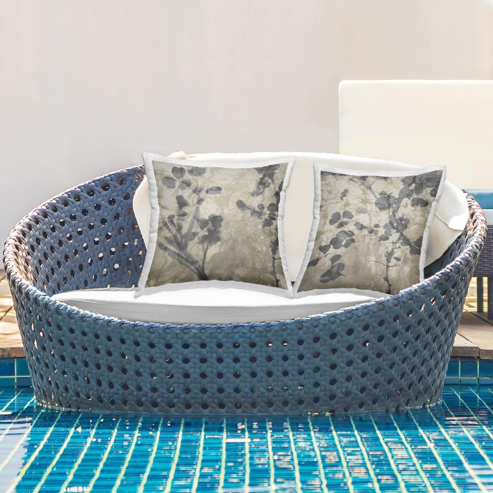 Dimensions: 2 Pillows, each 18 x 18 Inches Decorative outdoor pillows are a great and easy way to decorate your outdoor living space, adding both a decorative accent and comfort. Pillows arrive with insert already zipped inside and ready to fluff. Casing and filling insert are both made of quick-dry soft polyester material. The printing process makes the ink part of the fabric for greater outdoor durability. To wash remove filling insert from casing using invisible zipper. Clean pillow case separately, machine wash on delicate with cold water and mild detergent. For best quality hang dry. Pillow insert is spot clean only. Artwork Relates To: Botanical, Modern, Abstract Design by Danielle Carson