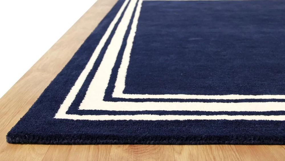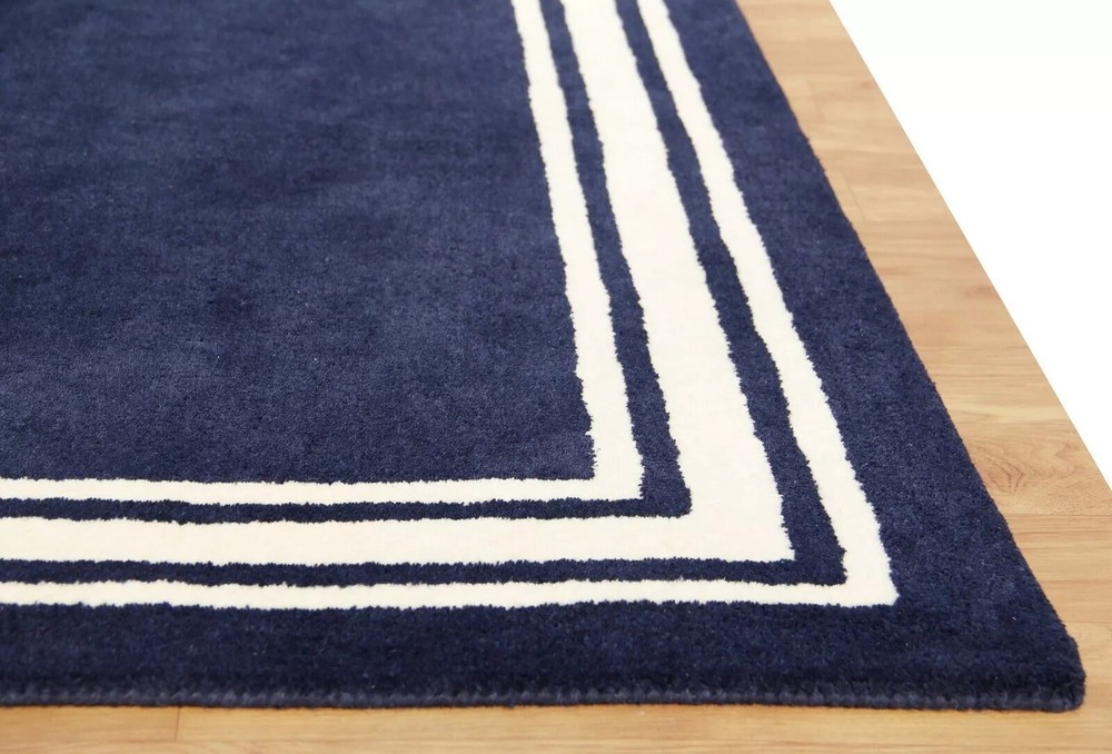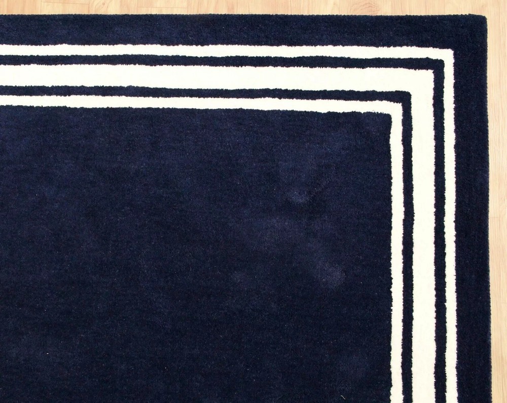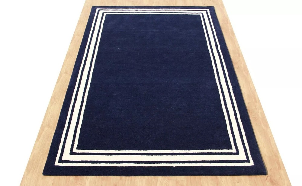 Border Harper Navy Blue Modern Hand-Tufted 100% Wool Soft Area Rug Carpet Product Details-: • Product Type: Hand-Tufted Rug • Craftsmanship: Handmade using a special tufting gun • Material: High-Quality Wool and Cotton • Features: Soft, Durable, Elegant, Unique • Suitable For: Living Room, Bedroom, Office, Decorative Use • Ideal As: Area Rug, Handmade Gift, Meditation Rug Key Information-: • Hand-Tufting Process: Yarn loops are pushed through a pre-woven backing, with the pile trimmed to the desired length for a softer feel. • Color Disclaimer: Images show the most accurate color, but variations may occur due to screen differences. Patterns and colors may vary by size. Feedback Policy-: 1. Please leave feedback based on your transaction experience. 2. For any issues, contact us before leaving negative/neutral feedback. We aim to resolve all problems. Terms and Conditions-: 1. All products are thoroughly checked before shipping. 2. For defective items, contact us immediately for a prompt solution. 3. Import charges/fees are the buyer's responsibility. 4. Ensure your address and contact details are accurate when placing an order. 5. Feel free to reach out for bulk or custom orders. Shipping Details-: 1. Orders are shipped promptly after payment clearance. 2. Delivery usually takes 10-20 business days. 3. Free shipping worldwide. Thank You for Visiting! Feel free to contact us with any questions or custom requests.