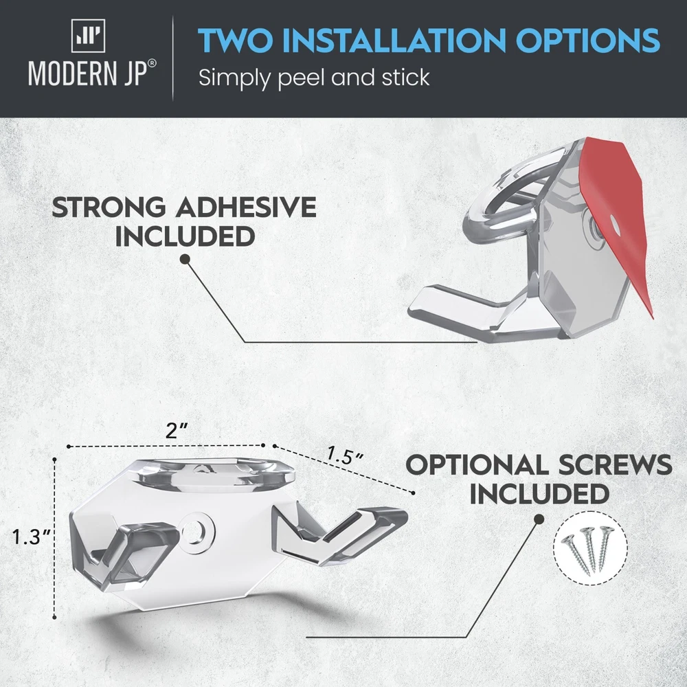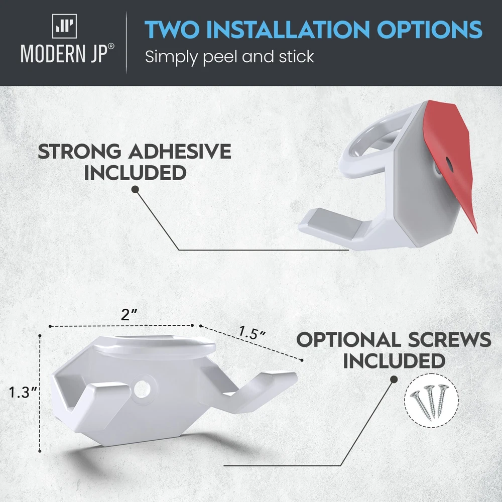 NOTE : We do not ship to HI, AK, or PR due to our free shipping offer. ✔️ DUAL HANGING METHOD - Display the front of your hat with our patent pending hat display wall mount. Our hat hooks for baseball caps can hang your hat facing forward by its button or facing downward by its strap. For fitted hats, hang your hat by its button as there is no strap to hang on the hook. ✔️ TWO INSTALLATION OPTIONS - Our hat hangers for wall can be installed with included adhesive OR included screws. CAUTION: Due to strong adhesive, please place the hook on a surface that does not tear. Do not use on wallpaper and rough surfaces. Use and remove carefully on drywall and painted walls. ✔️ MINIMALIST, LOW-PROFILE DESIGN - Our hat holder is designed to showcase your hats, not the hook. When your hats are hanging, our hat wall hooks are mostly hidden from view unlike other hat racks for baseball caps. ✔️ ROOM DECOR - Arrange the wall hat hooks however you'd like to create a stylish hat display. Check out the photos in our customer reviews for baseball cap display inspiration! Unclutter your room within minutes with our easy-to-install hat rack for wall. ✔️ MONEY-BACK GUARANTEE - We stand by our products and customer service. Please contact us directly and we'll work with you until you are completely satisfied. We offer a money-back guarantee on every purchase. What type of hats can I hang? • Our hat hook holds any hat with a button or strap such as baseball caps, snapbacks, and fitted hats. How do I use the product? • Install with adhesive or screws. • Ensure the hook is the right side up – check the included card for reference. • For the adhesive, wipe off any dust on the wall for a clean surface. Stick the hook on the wall and press firmly for 30 seconds. • For best results, let the hook sit on the wall for 24 hours prior to use. • Which surfaces are suitable for the adhesive? We use a strong adhesive to ensure your hooks stay mounted over time. • Please use on surfaces that do not tear. Do not use on wallpaper and rough surfaces. • Suitable surfaces include finished wood, tile, plastic, metal, glass, and marble. • Use carefully on drywall and painted walls. How do I remove the hook? • It's important to peel very slowly. It should take at least 1 min to peel off the hook. • We recommend first heating the hook/adhesive with a hairdryer. • Then use a sharp object to poke the adhesive while peeling slowly from the top. • It may take a few cycles of heating and peeling to fully remove the hook safely. • The adhesive is not designed or intended to be reused. It will lose its strength on subsequent use. Does it work well with fitted hats? • Yes, it works with fitted hats. Please use the button to hang the hat facing forward as there is no strap to hang on the hook. Will it damage my wall? • Since we use a strong adhesive to ensure your hooks stay mounted over time, there is some risk of damage to the wall depending on the surface. Do not use on wallpaper and use carefully on drywall and painted walls. Other suitable surfaces include finished wood, tile, acrylic, metal, glass, and marble. Please see our removal instructions above. Is the hook reusable? • Made with durability in mind, our hat display hooks will be reusable in your next move with the included screws. The included adhesive is not designed or intended to be reused as it will lose strength on subsequent use. What are the product specifications? • Material: ABS plastic • Adhesive and screws included • Adhesive max hold: 3 lbs • Product dimensions: 2 x 1.3 x 1.5 in