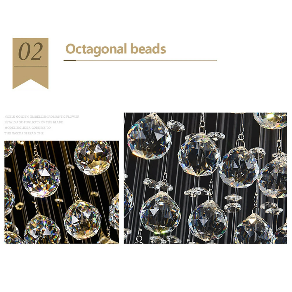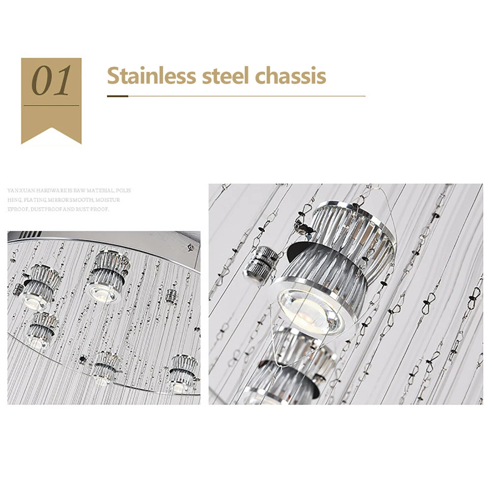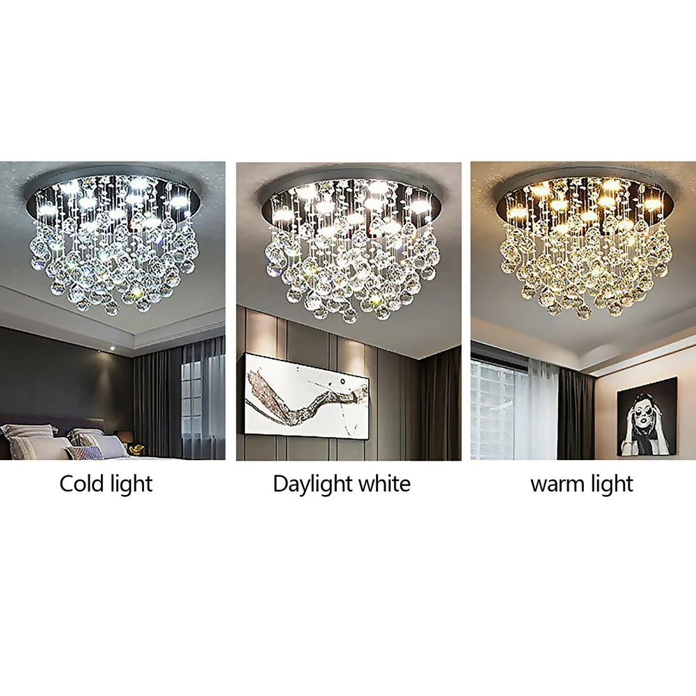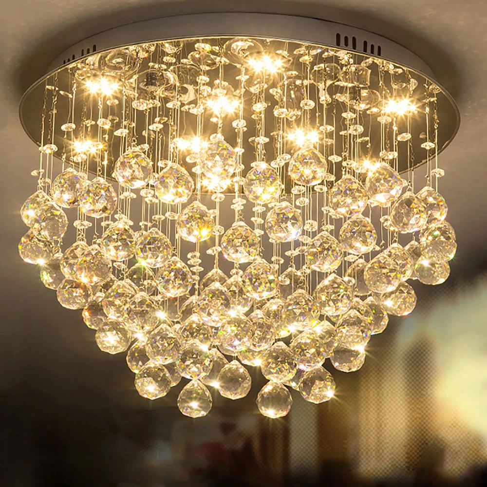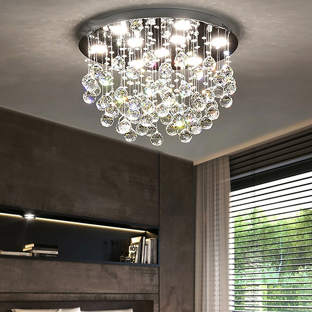 Modern K9 Crystal Chandelier Round Raindrop Ceiling Light Pendant Fixtures LED