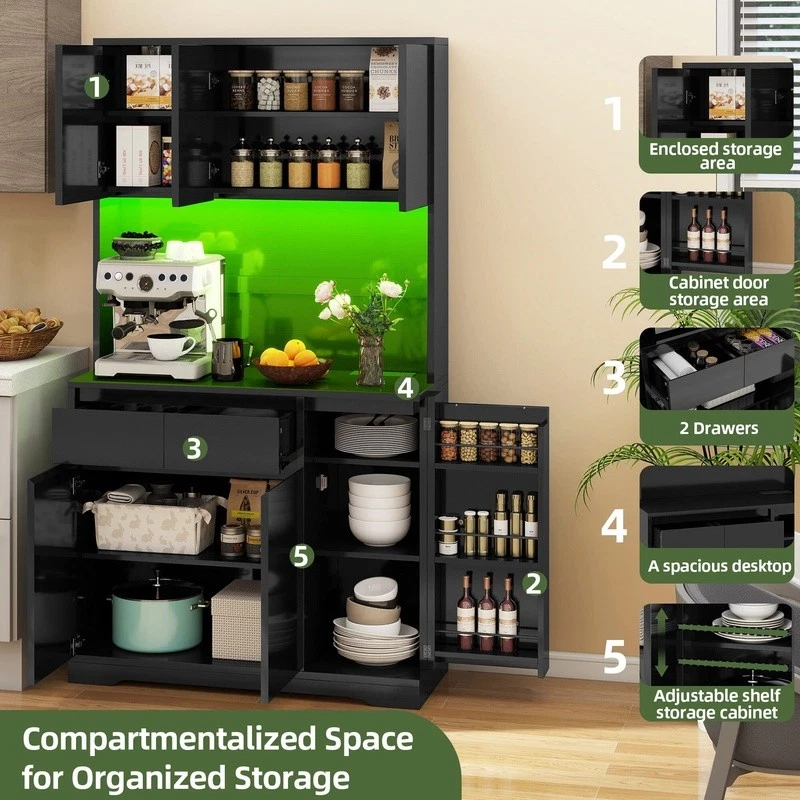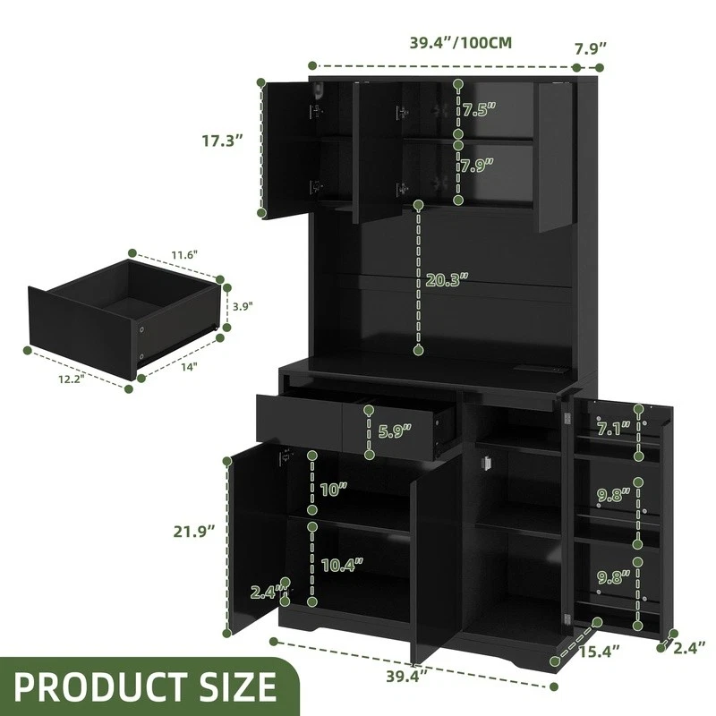 You may also like Storage Cabinet W/ Adjustable Shelf Drawer Countertop Bathroom Kitchen Garage US 187.42 USD 197.28 USD Free shipping 5% off Wall Mounted 36 Inch Upper Storage Cabinet Garage Office Workshop Heavy Duty New 170.79 USD 179.78 USD Free shipping 5% off Wood Storage Cabinet Accent Cabinet W/ Doors Adjustable Shelf Indoor Organizer 161.37 USD 169.86 USD Free shipping 5% off Freestanding Storage Cabinet W/ Doors & Drawer Adjustable Shelves Organizer Home 104.25 USD 109.74 USD Free shipping 5% off 60 Inch 2 Door Storage Cabinet Adjustable Shelves Freestanding Organizer Home US 104.84 USD 110.36 USD Free shipping 5% off Freestanding Kitchen Pantry Cabinet Adjustable Shelves Easy Assembly Storage New 153.12 USD 161.18 USD Free shipping 5% off Agni Buffet Hutch Kitchen Cabinet Storage Display Shelf Wooden Furniture New 149.18 USD 157.03 USD Free shipping 5% off 4-Door Kitchen Pantry Adjustable Shelves Storage Cabinet Freestanding Organizer 139.23 USD 146.56 USD Free shipping 5% off 2-Tier Under Cabinet Storage Tower Pullout Drawer Organizer W/ Hanging Bin Clips 27.37 USD 28.81 USD Free shipping 5% off 3 Drawer Lockable Office Cabinet Storage Walnut Black Melamine Furniture New 62.93 USD 66.24 USD Free shipping 5% off Tall Kitchen Cabinet W/ Open Shelves Microwave Space Storage Drawer Organizer US 150.91 USD Free shipping Narrow Storage Cabinet Adjustable Shelves Media Organizer DVD CD Books Display 92.65 USD 97.53 USD Free shipping 5% off Discover the pinnacle of kitchen organization with our kitchen pantry cabinet, a storage solution that merges functionality with contemporary design. This storage cabinet features four roomy cabinets, a single drawer, and a large countertop, ideal for storing all your kitchen essentials. Constructed from durable MDF, it offers enduring strength for your daily culinary tasks. Stay powered up with the convenience of 2 AC power outlets and 2 USB ports, and customize your ambiance with adjustable LED lighting controlled via Bluetooth, enabling smooth transitions between colors and modes to fit any atmosphere. Assembly is made easy with detailed instructions and clearly labeled parts, ensuring a quick and trouble-free installation. Revitalize your kitchen with our pantry storage cabinet, where practicality, sophistication, and user-friendliness intersect flawlessly. Ample Storage: The pantry storage cabinet provides a wealth of storage with 4 sizable cabinets, a single drawer, and an expansive countertop, ideal for keeping your kitchen organized and essentials within reach Sturdy Build: Made from robust MDF, this kitchen cabinet is engineered for durability and long-lasting use, offering a dependable storage solution that stands the test of time Charge Convenience: This kitchen pantry cabinet is outfitted with two AC power outlets and two USB ports, offering a convenient charging station for your devices, eliminating the need for extra cords Flexible LED Lighting: The pantry cabinet comes with Bluetooth-controlled LED lights, enabling you to adjust colors and modes to create the ideal atmosphere for various kitchen tasks and events Simplified Assembly: Assembly is straightforward with this cabinet, thanks to easy-to-follow instructions and parts that are clearly labeled, ensuring a quick and efficient setup without stress You may also like Stainless Steel 6 Cup Coffee Percolator Automatic Brew Warm Tea Hot Beverage New 46.03 USD 48.45 USD Free shipping 5% off Heavy Duty Deluxe Fabric Padded Portable Folding Chair New Everyday Party 38.65 USD 40.68 USD Free shipping 5% off Mower Hyper Tough 20" Blade Replacement New OEM Part MNA152701 & MNA152516 22.94 USD 24.15 USD Free shipping 5% off Twin XL Duvet Cover Set 2 Piece W/ Standard Sham Microfiber Soft Striped Bedding 49.0 USD 51.58 USD Free shipping 5% off Heavy Duty Canvas Duffel Bag Zippered W/ Web Handles Travel Camping Hunting New 33.25 USD 42.55 USD Free shipping 22% off 3 Holder Copper Metal Tree Decorative Candle Lantern Set Indoor Accent Decor New 47.77 USD 50.28 USD Free shipping 5% off Memory Foam Fun Pillow 2 Pack Cool Touch Cover Hypoallergenic Sleep Support New 39.61 USD 41.69 USD Free shipping 5% off Copy Paper 92 Bright 20lb 8.5x11 Letter Size 4000 Sheets Office School Craft New 48.98 USD 51.56 USD Free shipping 5% off Green Abstract Area Rug Soft Polyester Medium Pile Fringed Indoor Décor New 36.74 USD 38.67 USD Free shipping 5% off Rustic Table Lamp Glass Shade E26 Base Touch Sensor Indoor Lighting Decor New 41.11 USD 43.27 USD Free shipping 5% off Faux Grass Outdoor Rug Durable Stain Resistant Pet Friendly Easy Clean New 42.85 USD 45.11 USD Free shipping 5% off 20-Piece Gold Stainless Steel Flatware Set 4 Dishwasher Safe Elegant Dining New 36.74 USD 38.67 USD Free shipping 5% off
