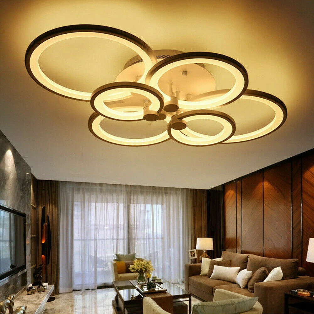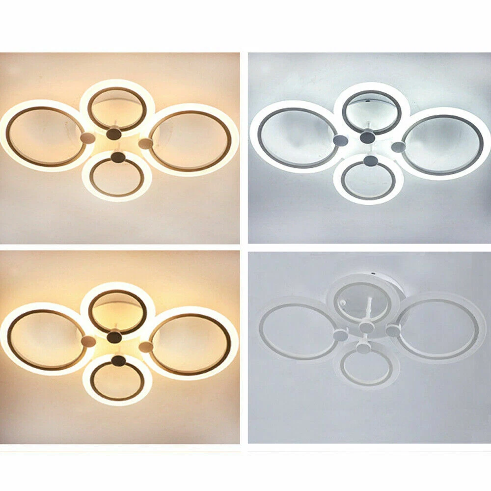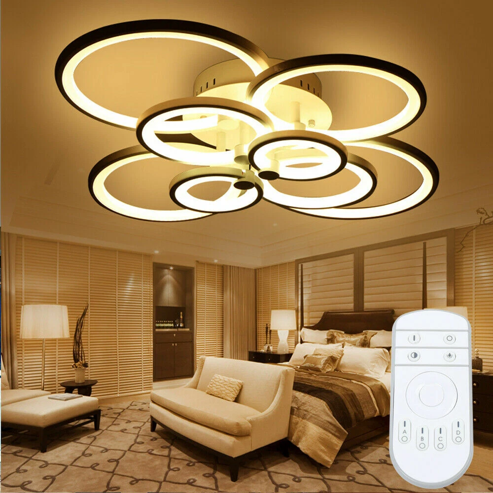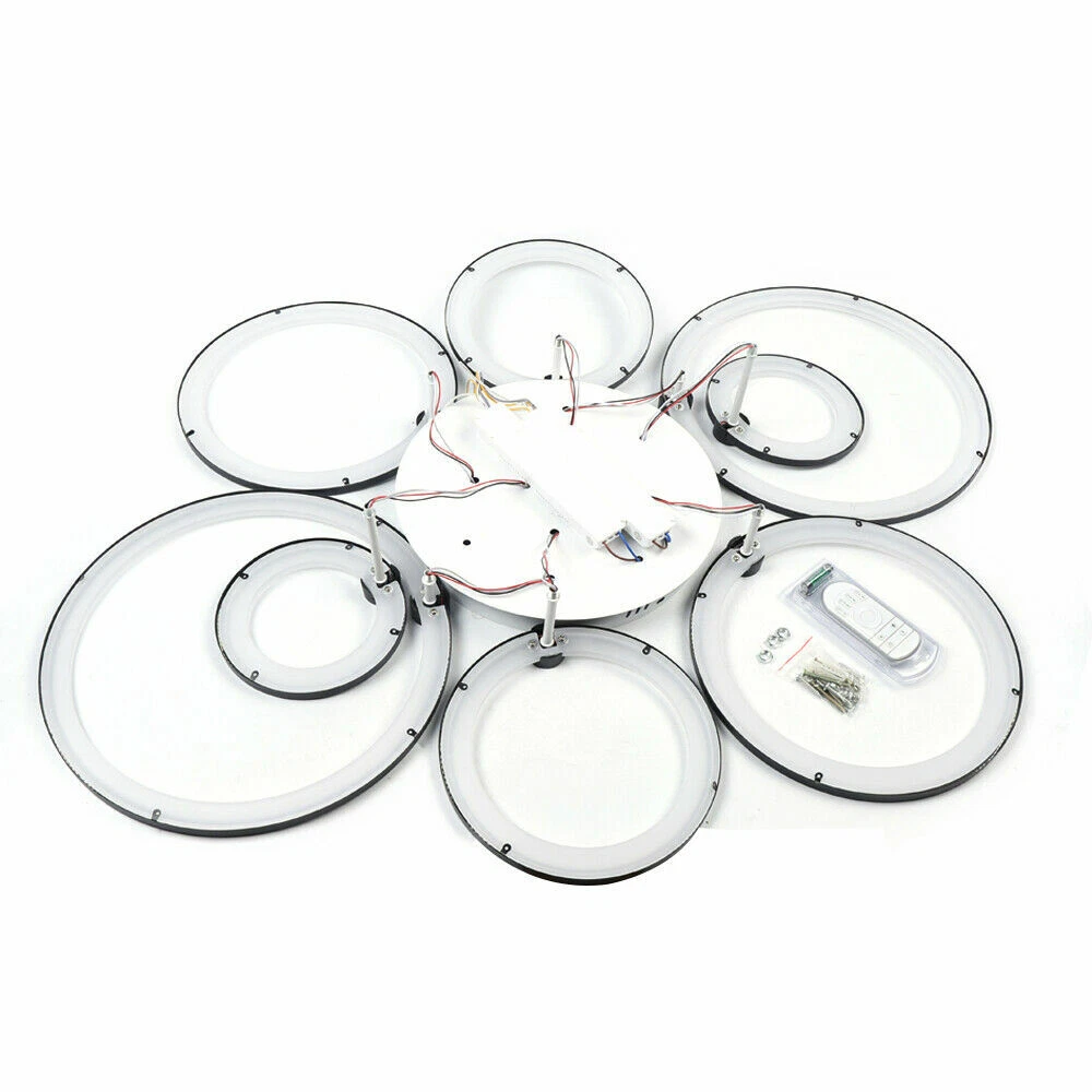 Modern LED Ceiling Light Fixtures Flush Mounted Acrylic Rings Chandelier Lamps s Tips: All the lights are connected, do not modify the line when you install it. The remote control needs to be used in the code, press and hold the vertical line above A until the light flashes, that is, the code is successful, you can remotely control SPECIFICATION: Material: Iron base and Acrylic lampshade Power: 45w ,72w, 140w Pattern: 4/6/8 Heads Voltage: AC 110v, 50Hz Body Color: black Light Source: 2835 LED SMD Light mode: stepless dimming Light color: White light, Warm light, Neutral light Average service life: 30000(h) Remote Controller: 2x AAA Batteries (not included) Suitable area: about 8-15㎡/15~25㎡ /25~30㎡ Luminous flux: 6750lm,10800lm ,15000lm 4 Heads Size: 647mm*450mm*105mm 6 Heads Size: 830*610*125mm 8 Heads Size: 1049*842*145mm FEATURES: Brand New and high quality. Perfect for balcony, bar, cafe, clothing store, aisle, etc. Nice pattern to create soft light, bring you a good brightness. Made of acrylic material, steady, do not fade and fine workmanship. PACKAGE INCLUDED: 1 Pcs Ceiling Light 1 Pcs Remote controller (battery Not included) 1 Set Screws accessories Payment Delivery details Terms of sales About us Contact us Payment We accept ebay payment 。 Fees such as import duties, taxes are not included in the item price or shipping costs. These charges are the buyer's responsibility. Delivery details Shipping: 2-9 working days to: USA Terms of sales We maintain high standards of excellence and strive for hundred percent customer satisfaction. Feedback is very important to us. We hope that you contact us immediately before you give neutral or negative feedback, so that we can address your concerns. It is impossible to address issues if we do not know about them! About us Your satis faction is our ultimate goal. We work hard to earn your trust and future business. Our certified technicians have tested each item before shipping. The unit comes with 1 year limited warranty on all manufacturing defects. a) If you receive a defective item, you may return it or ask for a discount. Please contact us within 14 days after you receive the package. b) What you returned must be intact and in its original packaging as re? u. Customer is responsible for shipping costs of the returned item. c) We will cover the cost of shipping back t with the shipping rate indicated in the registration page. We will send you a new unit or refund the full payment you paid. Thank you. Contact us Business Hour Business Hour: Monday To Friday: 8:30 AM to 5:00 PM (Beijing China time) Due to time zones, our reply to your questions may not be immediately. But within above working time, we will reply your email within 24 hours. If it's non-workdays, please kindly be patient and wait till Monday. Please contact us with ebay message. Please feel free to contact us if you have any questions. Monday To Friday: 8:30 AM to 5:00 PM (Beijing China time) Due to time zones, our reply to your questions may not be immediately. But within above working time, we will reply your email within 24 hours. If it's non-workdays, please kindly be patient and wait till Monday. Please contact us with ebay message. Please feel free to contact us if you have any questions. 1Features Wide Application,Novel Appearance,100%Brand New,High Quality 2*Features Stable performance,Safe to Use 1.Feature High-quality Characteristic Convenient Use,Easy Operation,Easy installation Features Durable Warranty. 3 Years *Feature* Creative Design,Durable Material,Beautiful Highlights Compact Design,Unique Appearance,high reliability Country/Region of Manufacture Unknown Manufacturer Does not apply Number of Settings 1 Control Style Remote Light Color White Power Source Wall Plug-In MPN Does Not Apply Light Source 2835 LED SMD Department Adults Lumens N/A shipping notice Can not ship to Puerto Rico,Alaska/Hawaii Sensor Type Light Bundle Description: No Note: Do not send to Brazil Voltage AC 110v, 50hz/60hz Amperage N/A Style Modern LED String/Strip Type N/A Transportation does not include: canarias Room Bedroom, Dining Room, Home Office/Study, Laundry/Utility Room, Living Room, Playroom Finish N/A Item location: CA /NJ /Austell Remote Controller 2x AAA Batteries (not included) Lighting Technology LED Light mod stepless dimming Material Iron base and Acrylic lampshade Installation Area Indoor Brand Unbranded Type Chandelier shipping notice: Can not ship to Puerto Rico,Alaska/Hawaii IP Rating N/A Average service life 30000(h) Shade Shape Round Power Consumption N/A EAN Does not apply